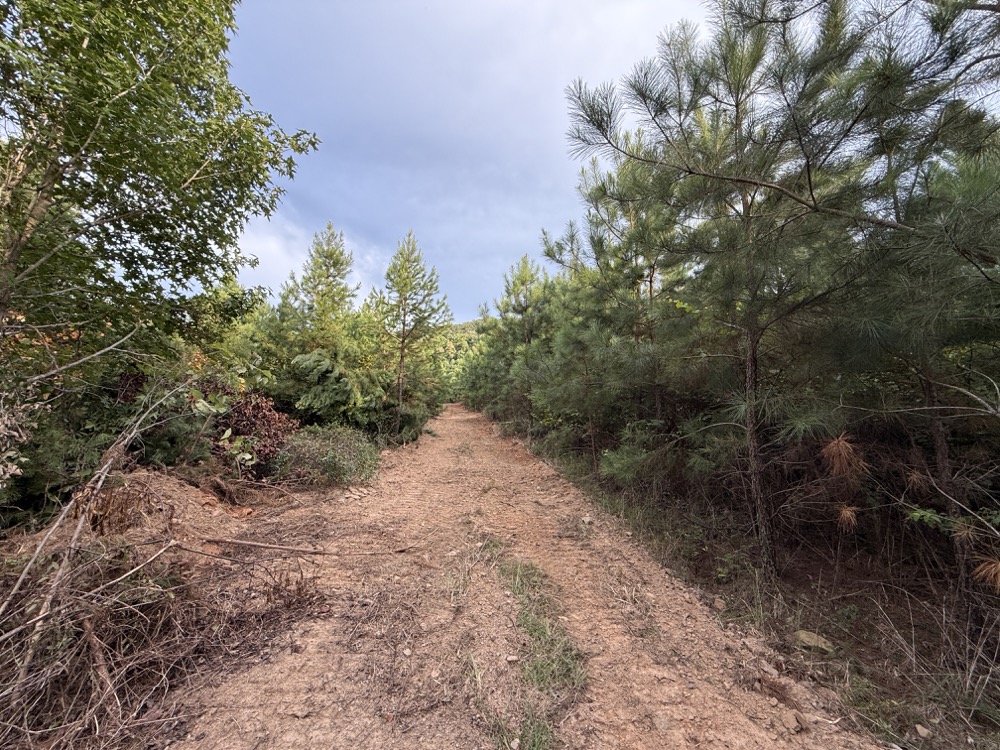 This 181± acre tract in Cherokee County, Alabama, offers diverse terrain and multiple recreational opportunities. Located along the Alabama-Georgia state line, the property is accessed via a deeded easement from County Road 80, offering reliable entry into a private and secluded setting. The land features a well-maintained internal road and trail system that rolls through varying topography and provides access to key areas of the property. The majority of the acreage is planted in pines that are approximately 5 to 6 years old, offering both habitat and future timber potential. Several pockets of mature hardwoods provide ecological diversity and attract wildlife throughout the year. In addition to the timber stands, the property includes multiple small food plots strategically positioned along the internal roads. Mountain streams run through portions of the property, including a spring that flows across a rocky-bottomed branch in the primary drainage area. These water features enhance the landscape while supporting wildlife and contributing to the overall recreational value of the property. Long-range, panoramic views looking north toward Lookout Mountain offer scenic backdrops from elevated areas. The surrounding area is known for healthy populations of white-tailed deer and eastern wild turkey, offering consistent hunting potential. The cover types, terrain, and water sources create a diverse and productive habitat for game species. Whether you are interested in hunting, weekend recreation, or establishing a long-term family retreat, this tract offers the attributes to support those goals. The location also allows for a wide range of outdoor activities. Trails and open areas are suitable for hiking, UTV riding, and camping. Nearby public resources such as Weiss Lake and the Chattooga River provide access to fishing and boating, expanding the property’s recreational value beyond its boundaries. Conveniently located within driving distance of several urban centers, this tract sits roughly 90 miles from north metro Atlanta and about 60 miles from Chattanooga, Tennessee. It also lies near the towns of Centre, AL (approximately 20 miles) and Menlo, GA (approximately 10 miles), providing access to local amenities while maintaining a rural and secluded feel. This property offers a blend of young timber, mature hardwoods, natural water sources, and recreational access, all located in a desirable area of northeast Alabama.