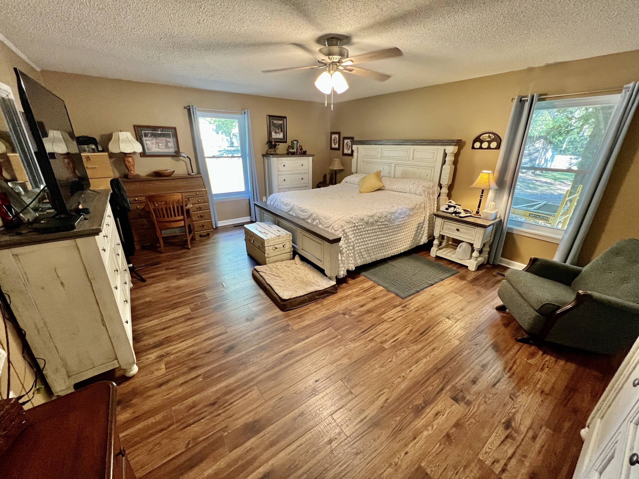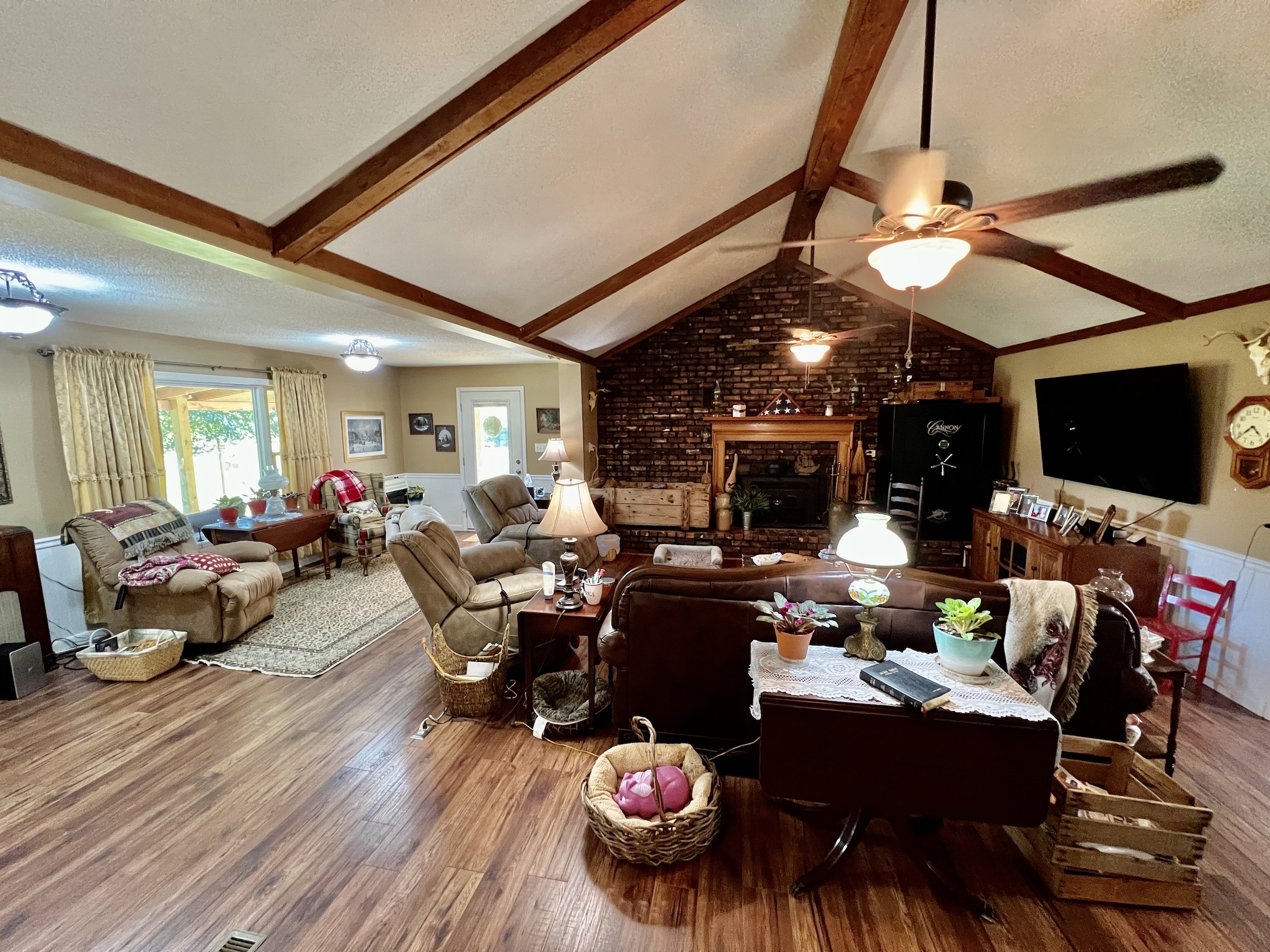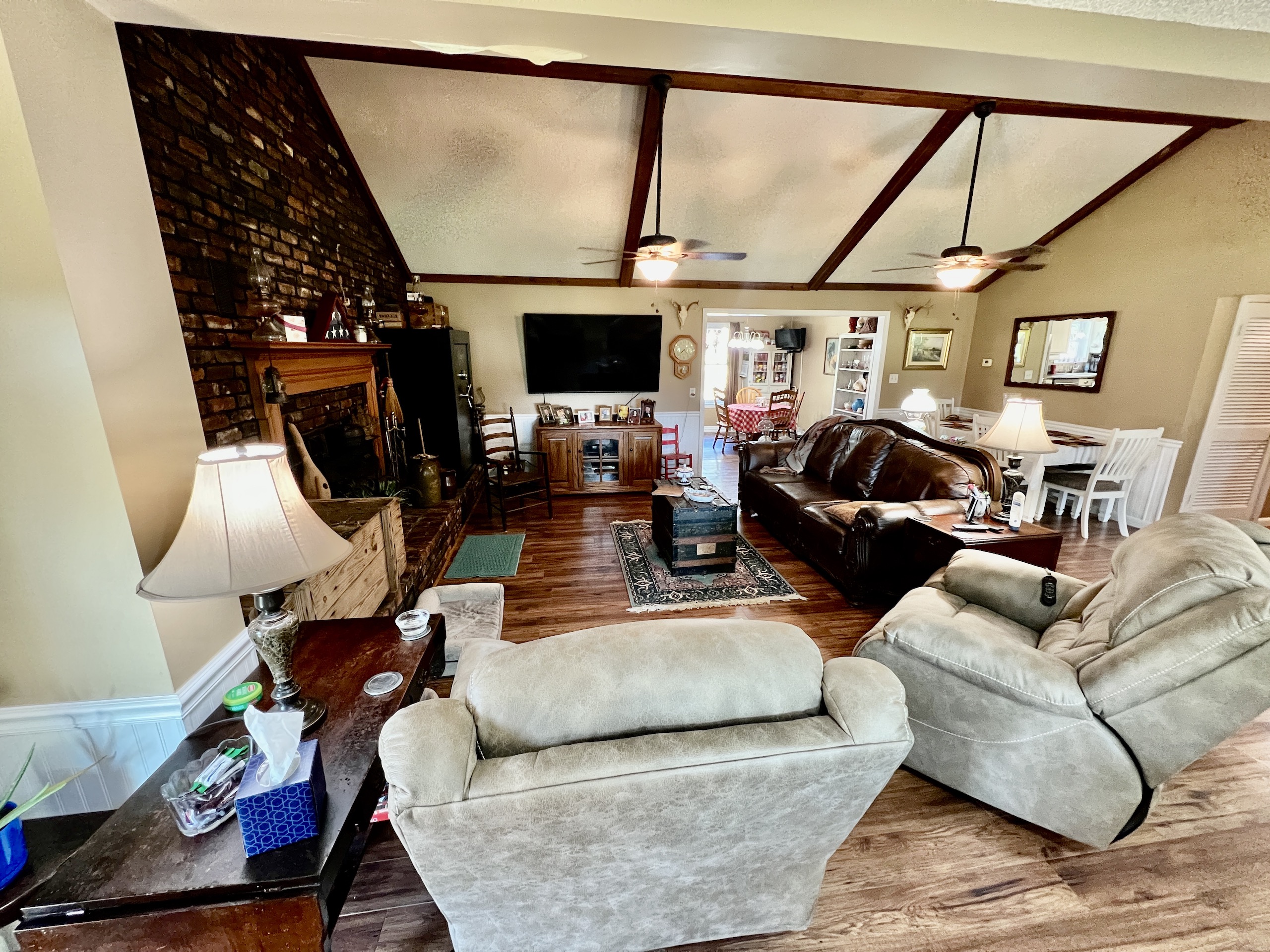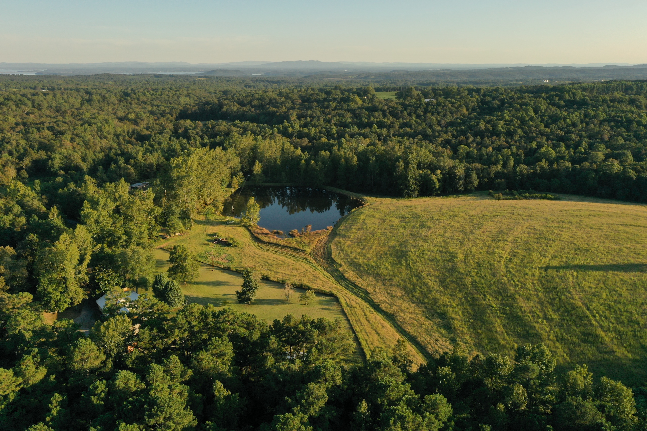 A property that has ALL the features comes along on rare occasions, but this is one of them. The entrance takes you in on a private road, with cedar trees lining the driveway, and open meadows on both sides, often filled with deer. At the end of the road, your view opens up into a large hay field. The house is tucked into the corner of the pasture overlooking a pond and the open pasture. The house is approximately 1850 s.f. with 3 bedrooms and 2 bathrooms. The kitchen is well equipped with quality cabinets and a center island. The living space is large and open with high ceilings and an inviting place to relax. Looking out the large clear glass windows you can see an outside world that is full of natural beauty. From the wide back porch it is very common to see deer feeding under an apple tree in the back yard as well as turkeys and other wildlife crossing the pasture to the west. The pond is just south of the house and within sight. It is well stocked with bream, bass and some catfish. A great place to walk down and catch some fish to filet for supper. The land itself is outstanding with numerous trails allowing you to travel all throughout the beautiful mature hardwood forest. These trails take you by a flowing mountain stream in many locations. This stream has big rocks and makes for a peaceful place for a walk as you can see and hear the babbling brook, and ripple of the water in numerous areas around the property. I could not imagine a better place to take a hike, ride a UTV or horse on a cool fall afternoon. There is even one place where the current owner has kept a cup out by a spring on the property and can give it a dip in the spring and get a drink of water, while out on the trails. The land consists of about a 16 +/- AC of open area up near the house where the pond is located. It would be great for a pasture for cattle, horses or hay production. On the back 40, there is a 6 +/- AC open field, which would be great for another hayfield. It is also outstanding for deer and turkey hunting, this field has cover all around it and the deer on this place are impressive. A large shooting house is in place and it's not uncommon to see 10-15 or more deer on a sit. There are small food plots throughout the hardwoods ideal for bow hunting. The terrain is flat to gently rolling with no steep areas. Located in the community of Tucker’s Chapel on top of the Lookout Mountain plateau this property is in a rural setting yet close to Fort Payne, Little River Canyon National Preserve and Weiss Lake. If you have been looking for these elements in your ideal property please give listing agent Ben Richardson a call and to discuss more details and set up a private showing.