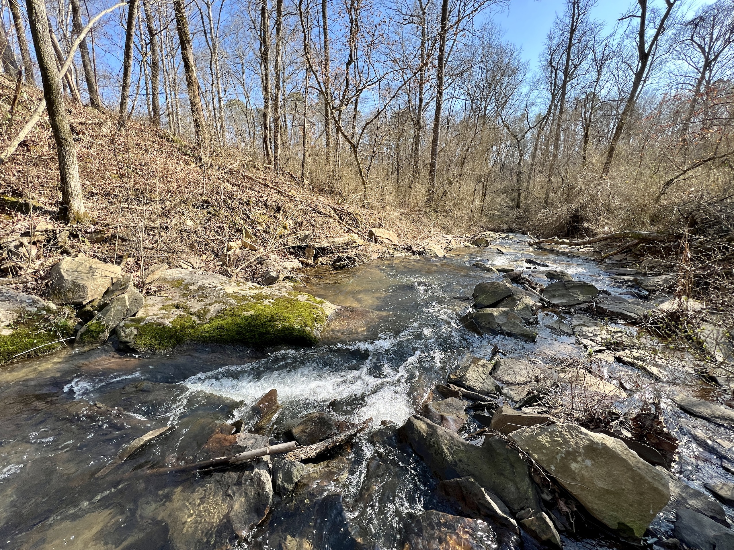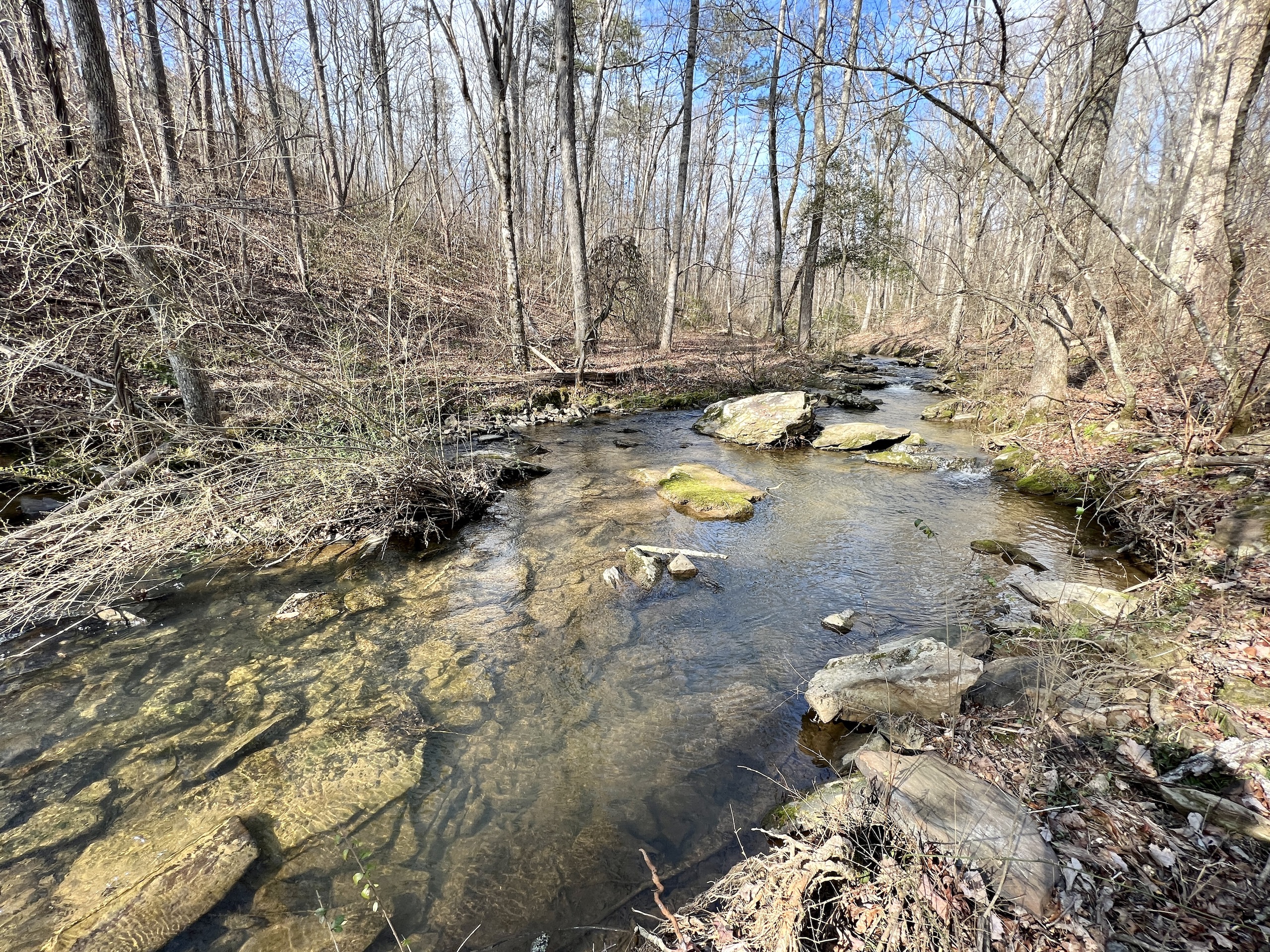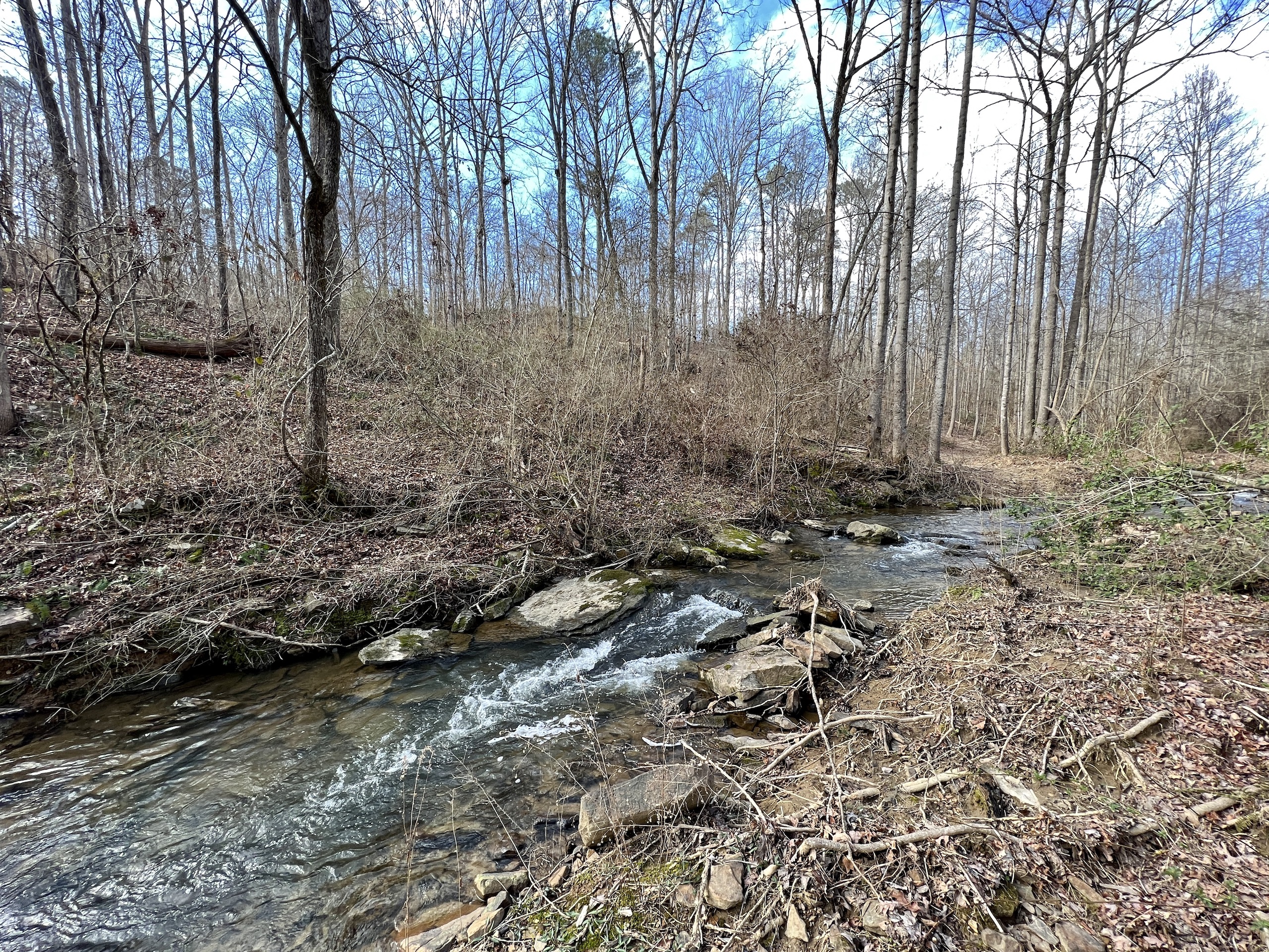 If you have been looking for a property with a spectacular flowing creek, some open land and mature timber, you will want to consider this tract. Located along a gravel county road, this tract has a 20+/-AC field up front, currently in row crop production with highly productive soil. On the backside of the field, a trail network takes you throughout the mature timber, which meanders around the gently rolling terrain. They lead down to Town Creek, a major creek in the area that can be floated with a canoe and is also excellent fishing. The sound of the water rolling over the rocks is very peaceful, and over 3000 feet of creek bank is on this property. You also have over 1000’ of a rocky bottom stream known as Big Branch that cascades across the property, flowing into Town Creek. UTV/walking trails gain you access all up and down the creek and stream. The timber is mostly mature , and covered in mainly hardwood species. Large white oaks are along the gentle slopes above the creek. The hunting in the area is good , and there are pockets of thick cover in the timber to create diverse habitat for wildlife. I saw several big rubs and a lot of deer tracks on the trails while walking the property. If you have been looking for that rural location, out in the countryside , where you could start your own farmstead, that has abundant water, then you should reach out to me, the listing agent , Ben Richardson to discuss more details. I have a good feeling you will love the serenity and natural beauty of this piece of land.
