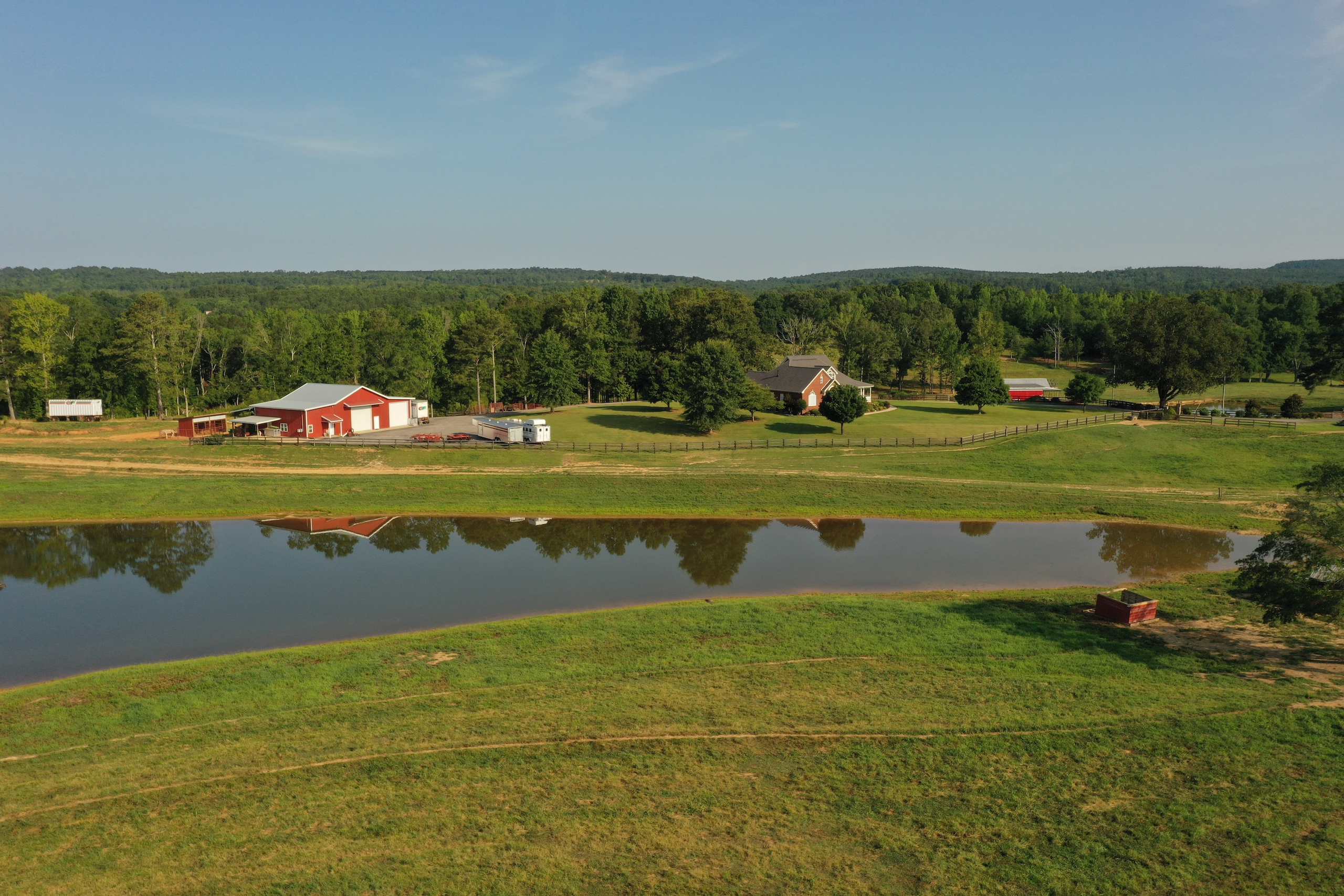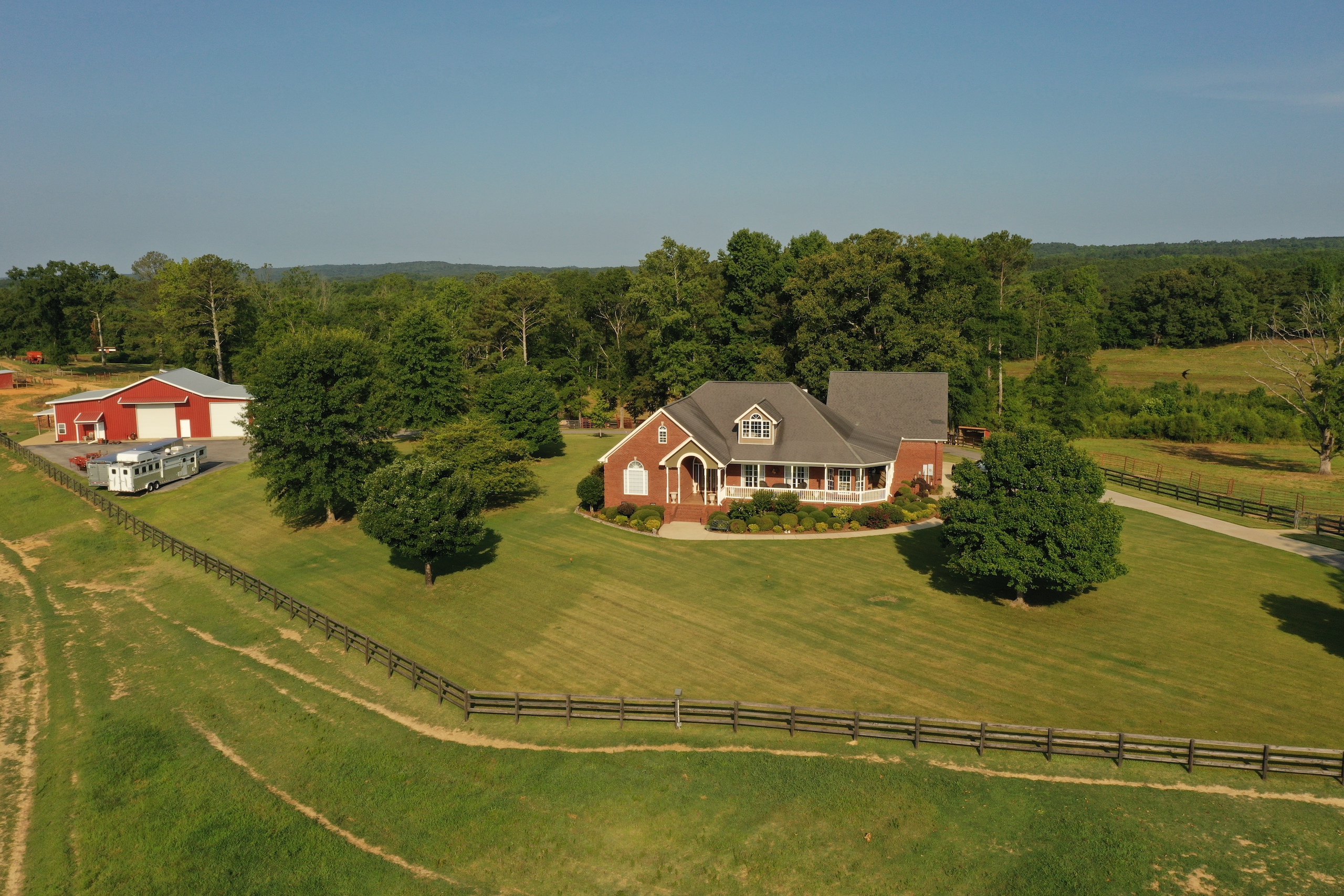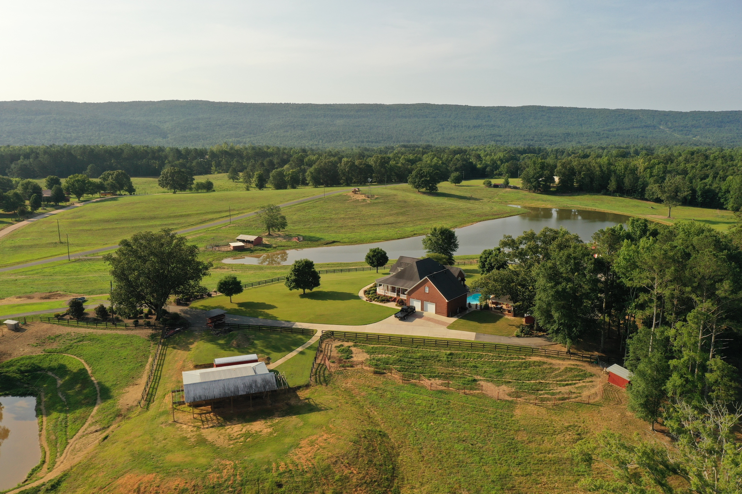 Incredible views and productive pastures are what you will find. The views from the front porch provide a panoramic view of the mountains in the distance and look out over more than 60 acres of open land. The pastures have six strands of electric fencing and are cross fenced. The current owner raises draft horses, mules and a few hogs. The 3.5-acre pond is well stocked with fish and makes for a beautiful place to watch a sunrise reflect over the slick glass water. There are approximately 40 acres of timber on the backside that is excellent for hunting or an area for a walking trail, riding UTV, or riding horses. A flowing stream winds through the 40 and the timber is mixed with mature hardwoods, pockets of thickets, and a couple of food plot areas. The yard of the home is surrounded by a well-constructed wooden fence and behind an automated metal gate. The lawn is Bermuda grass and is exceptionally well kept, along with many blooming trees and shrubs. You will love this farm, and it feels inviting when you start up the driveway and roll through rock columns. If you are looking for an income-producing farm or a place to retire and raise some cattle, ride horses, hunt and host a big family outing out in the country, then this excellent piece of land could be your next home. It isn't easy to describe the feeling you get while on this property, so I invite you to look at the pictures. Then if you are intrigued, give me, Ben Richardson, a call for your private showing.