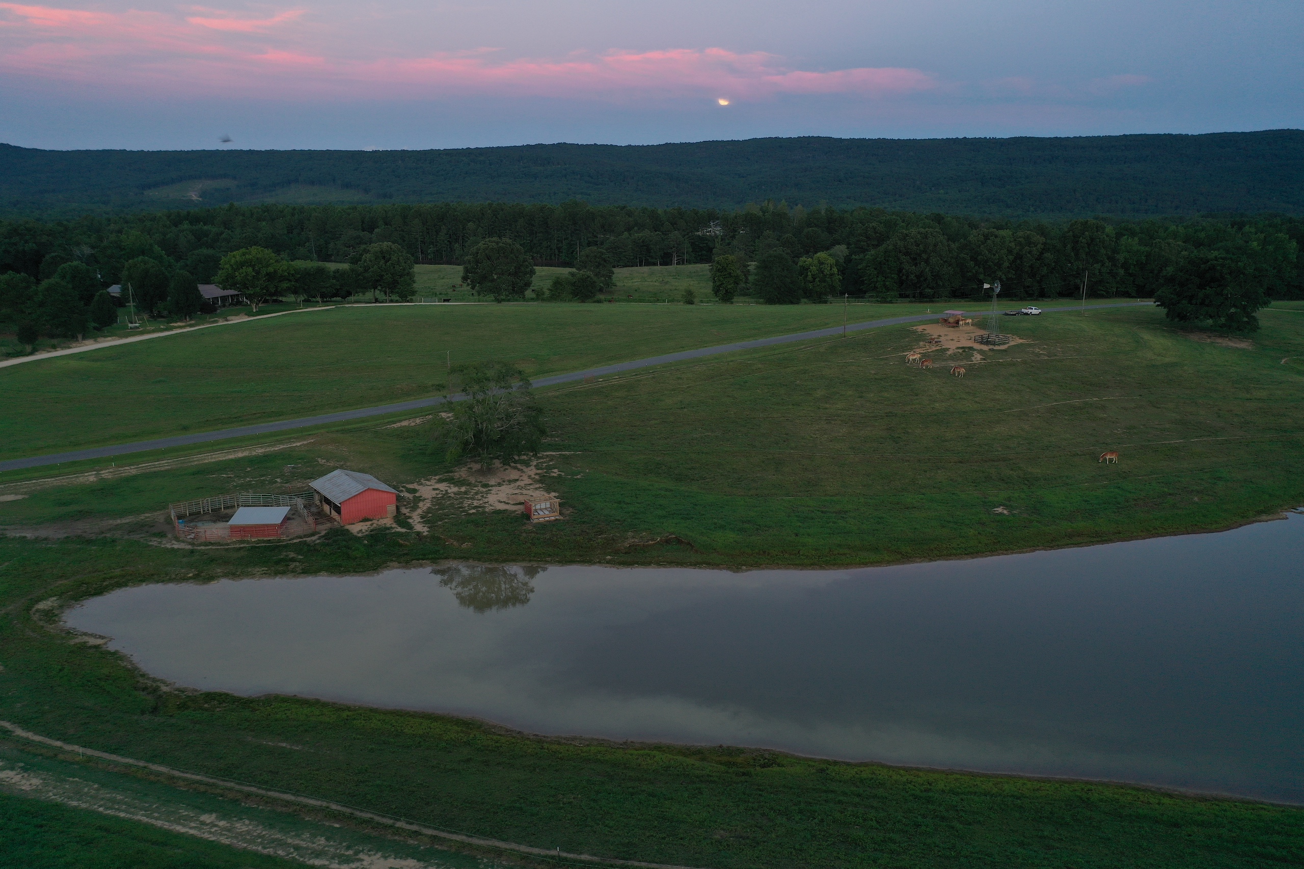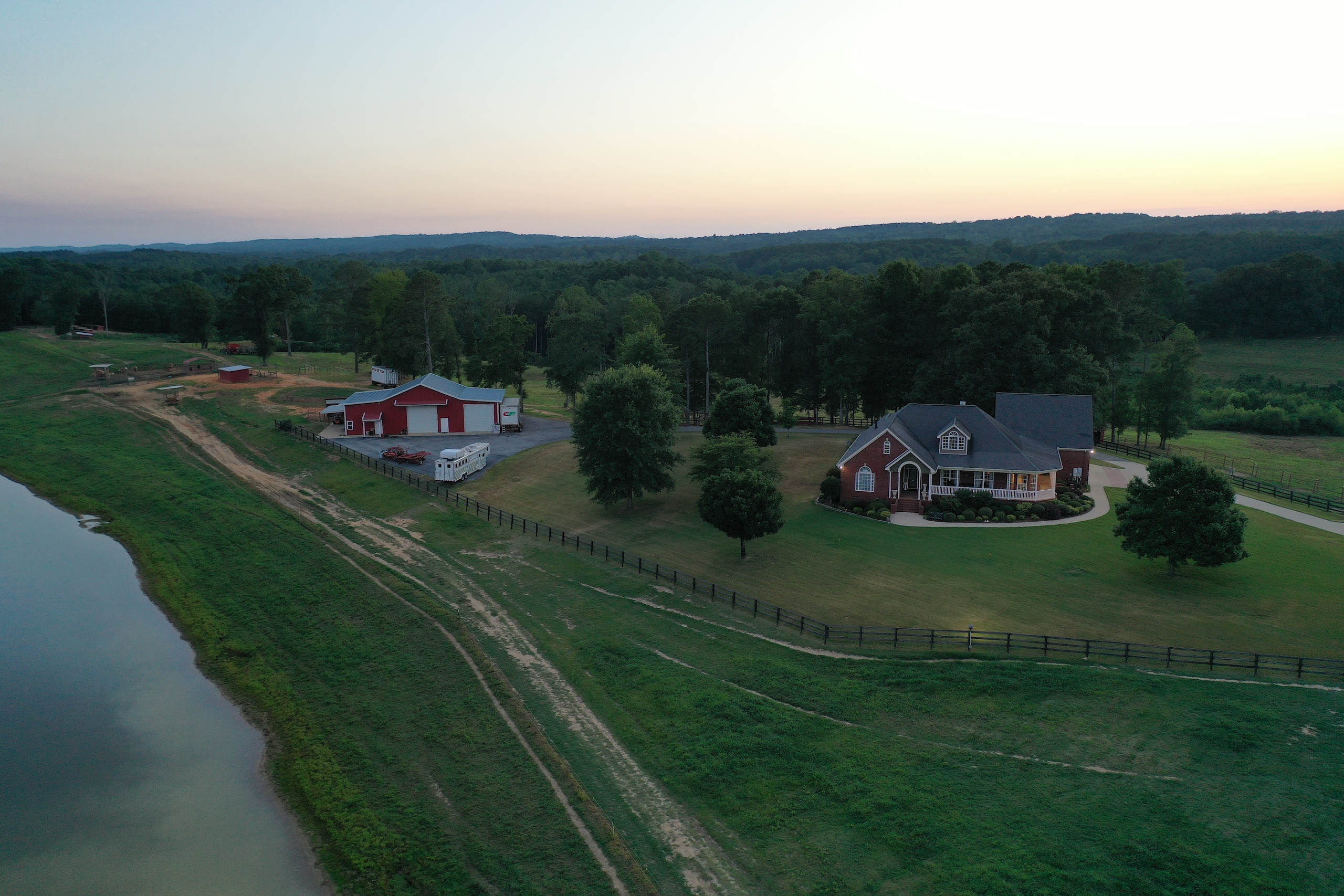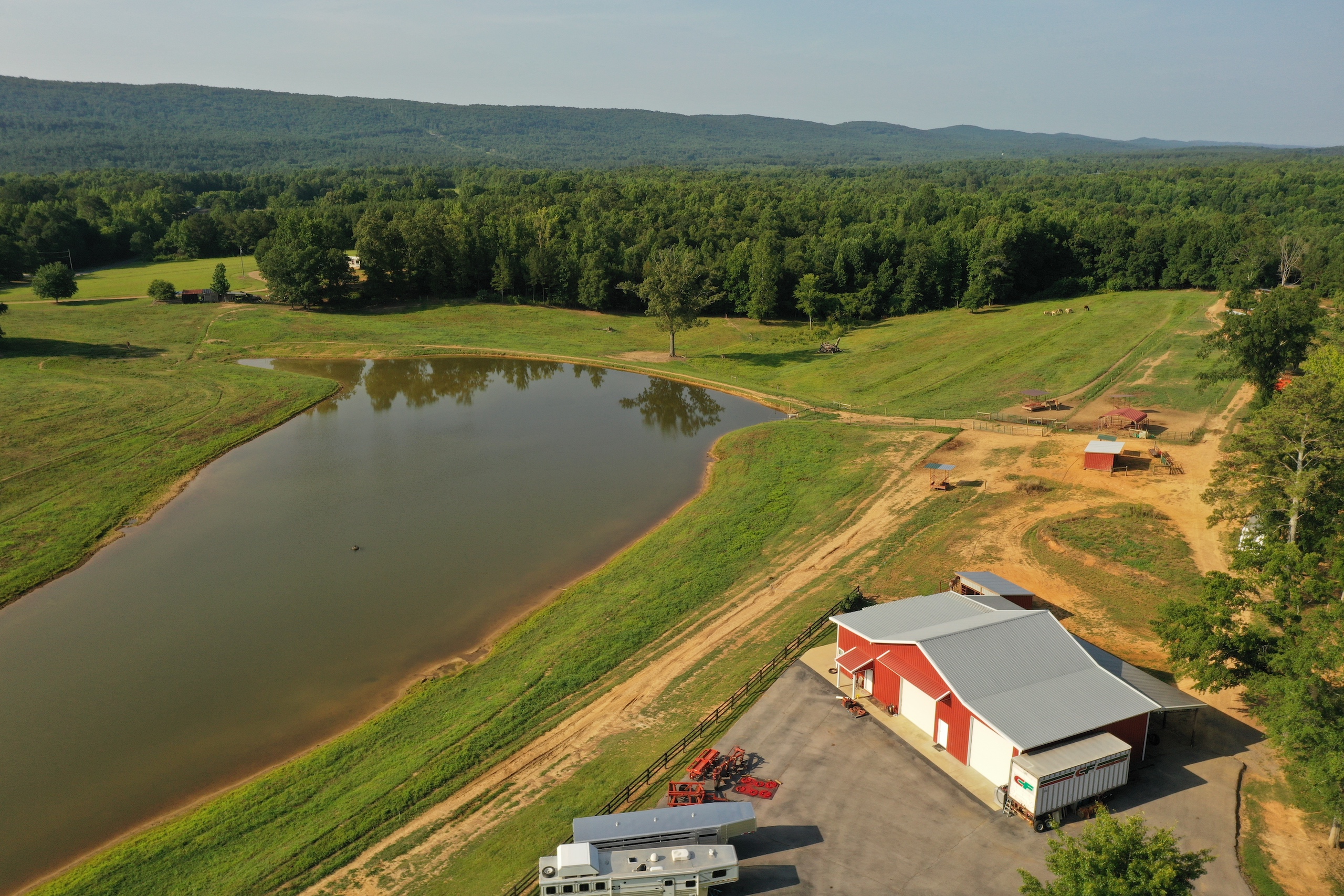 Incredible views and productive pastures are what you will find. The views from the front porch provide a panoramic view of the mountains in the distance and look out over more than 60 acres of open land. The pastures have six strands of electric fencing and are cross fenced. The current owner raises draft horses, mules and a few hogs. The 3.5-acre pond is well stocked with fish and makes for a beautiful place to watch a sunrise reflect over the slick glass water. There are approximately 40 acres of timber on the backside that is excellent for hunting or an area for a walking trail, riding UTV, or riding horses. A flowing stream winds through the 40 and the timber is mixed with mature hardwoods, pockets of thickets, and a couple of food plot areas. The yard of the home is surrounded by a well-constructed wooden fence and behind an automated metal gate. The lawn is Bermuda grass and is exceptionally well kept, along with many blooming trees and shrubs. You will love this farm, and it feels inviting when you start up the driveway and roll through rock columns. If you are looking for an income-producing farm or a place to retire and raise some cattle, ride horses, hunt and host a big family outing out in the country, then this excellent piece of land could be your next home. It isn't easy to describe the feeling you get while on this property, so I invite you to look at the pictures. Then if you are intrigued, give me, Ben Richardson, a call for your private showing.