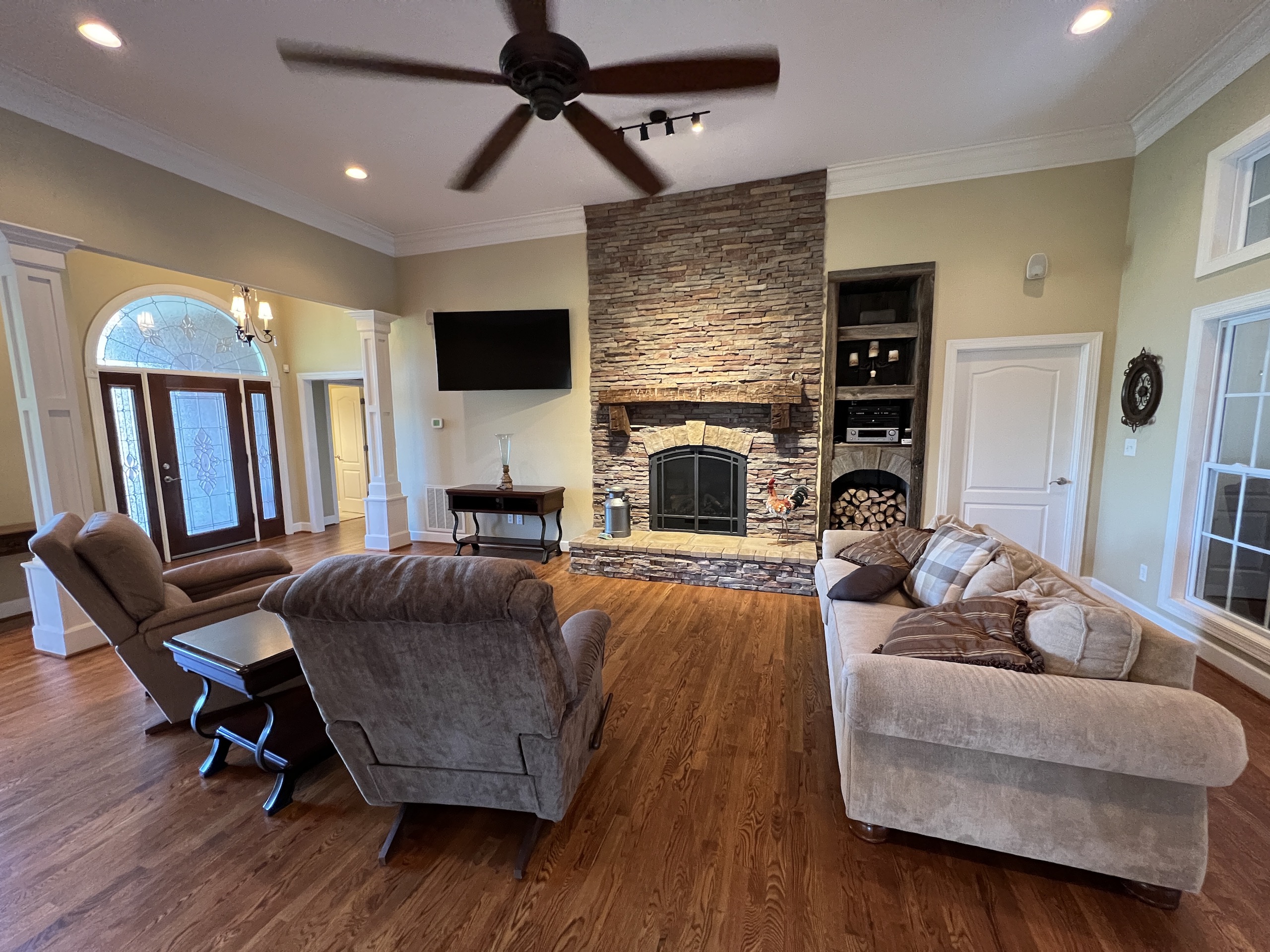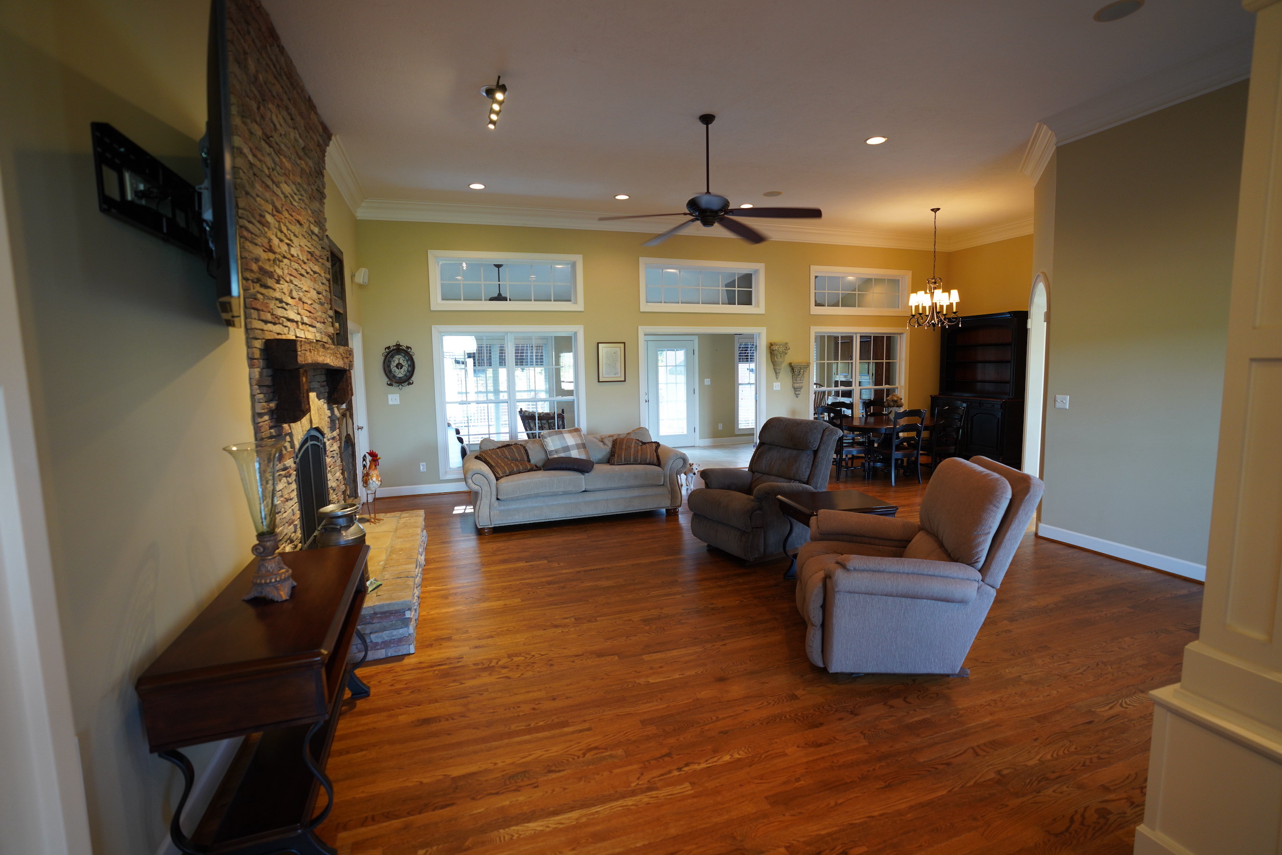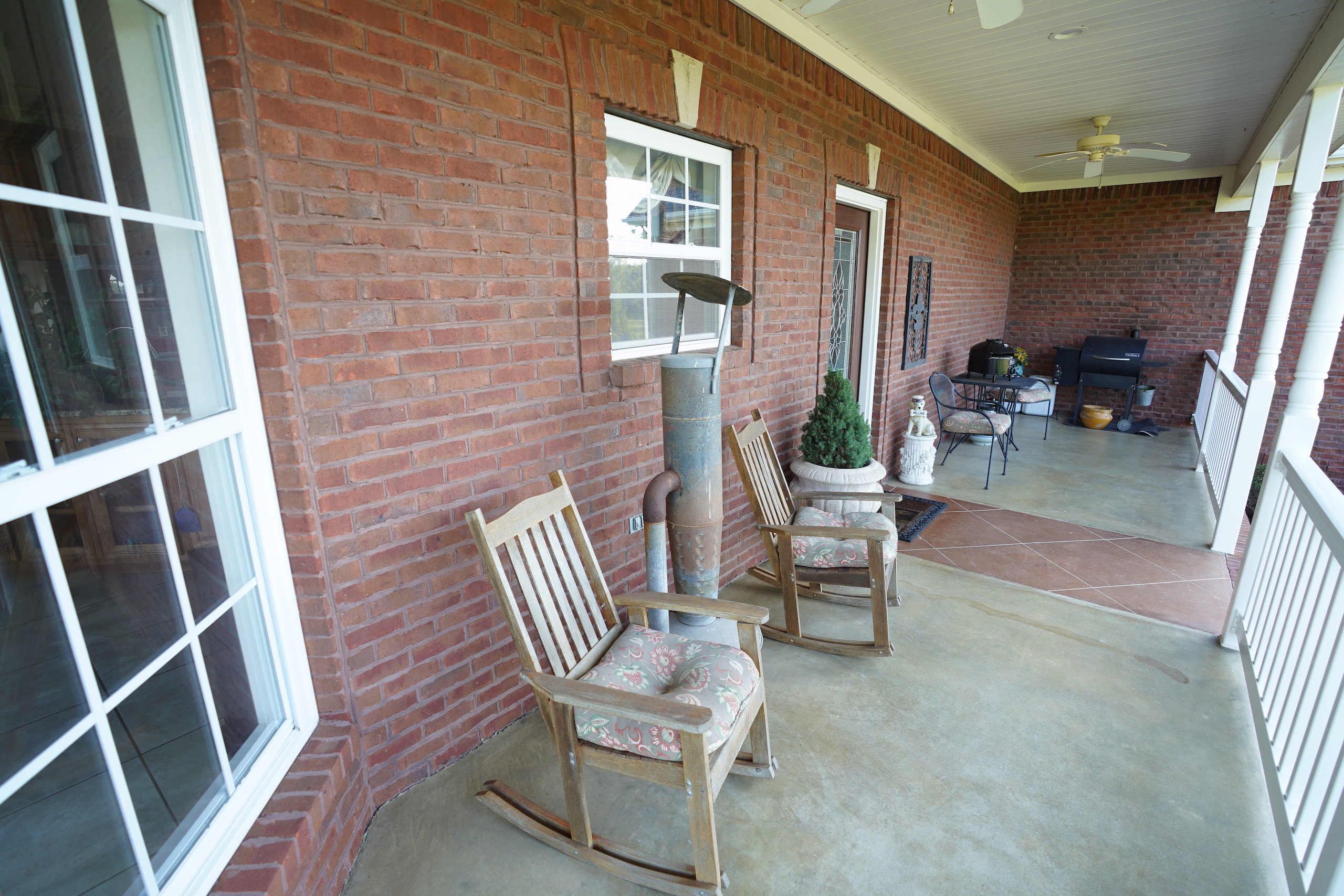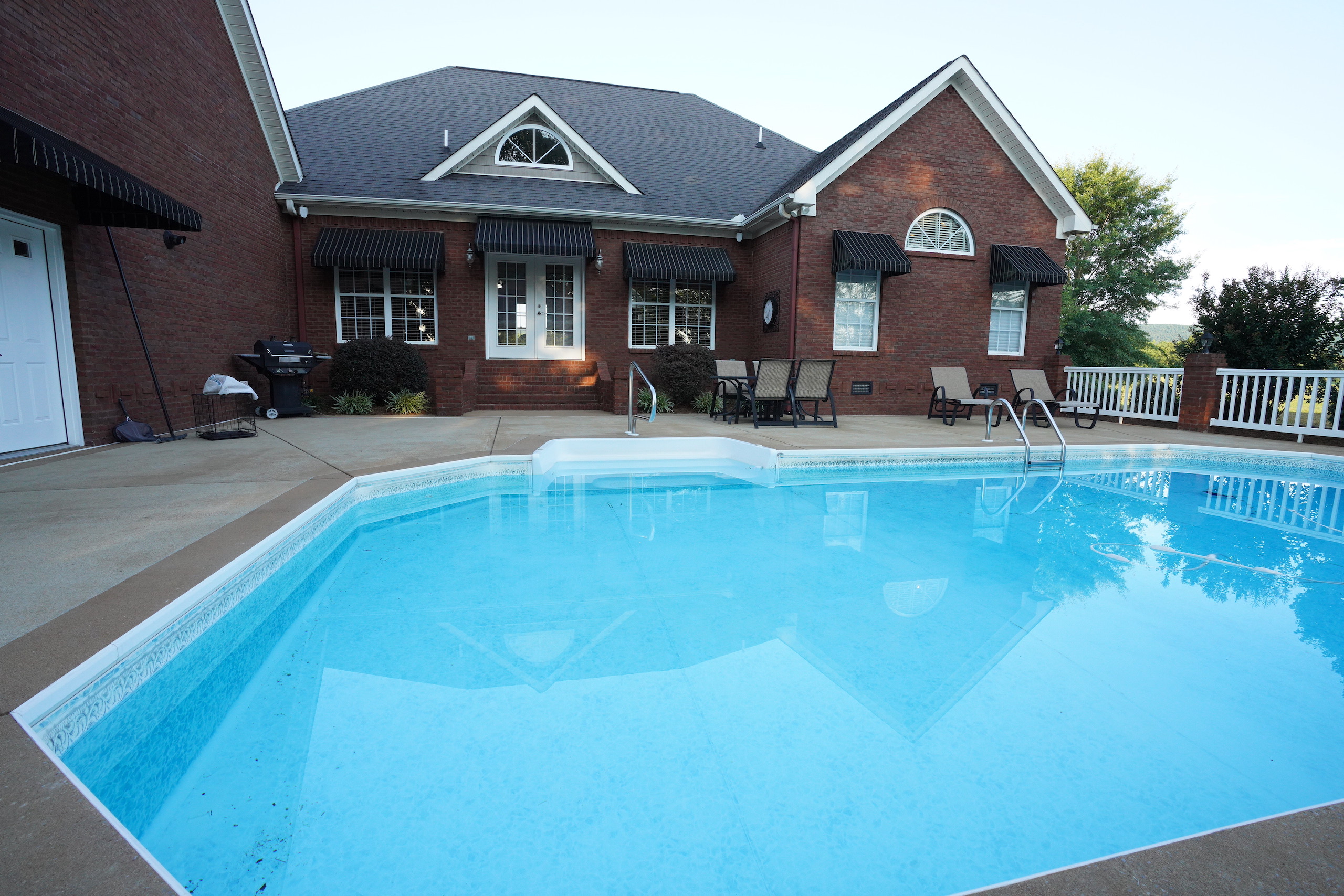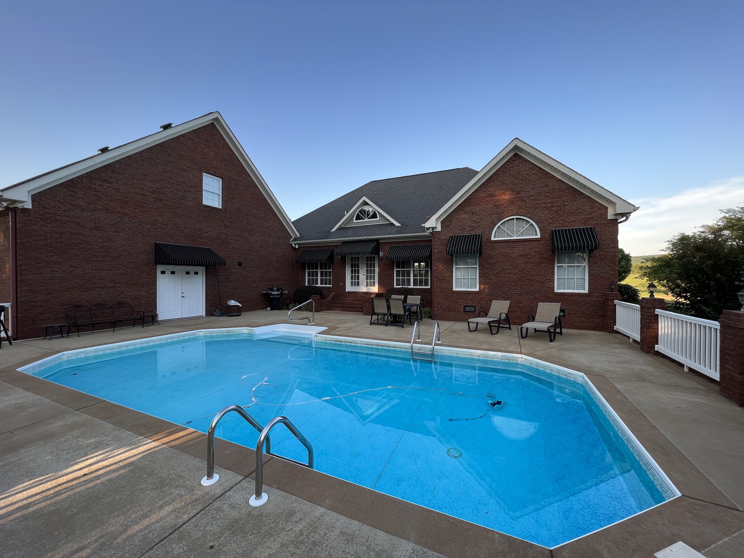 The main brick home is approximately 3100 s.f., has 3 bedrooms and 3 bathrooms. A large open living room/dining room flows into the kitchen, with a center island and a breakfast nook overlooking the pasture and pond. Excellent craftsmanship is evident in all aspects of the house; a few examples are the custom trim, high ceilings, hardwood floors, porcelain tile and marble bathrooms. The rock fireplace is the centerpiece of the living room, giving it a warm, comfortable feel. The two-car garage is spacious and above the garage is a large entertainment room that could also be used as an additional bedroom. A sunroom overlooks the pool area, which makes it an excellent place to entertain! A large covered patio adjacent to the pool is set up for relaxing cookouts any time of the year.