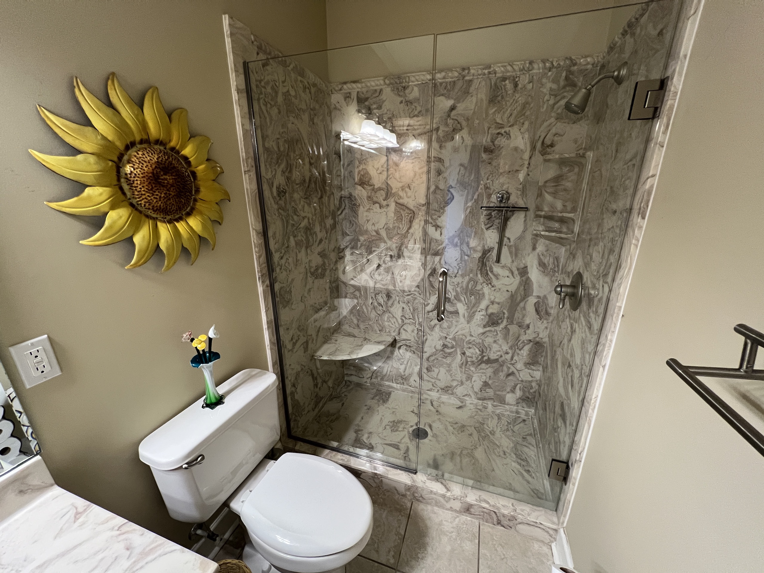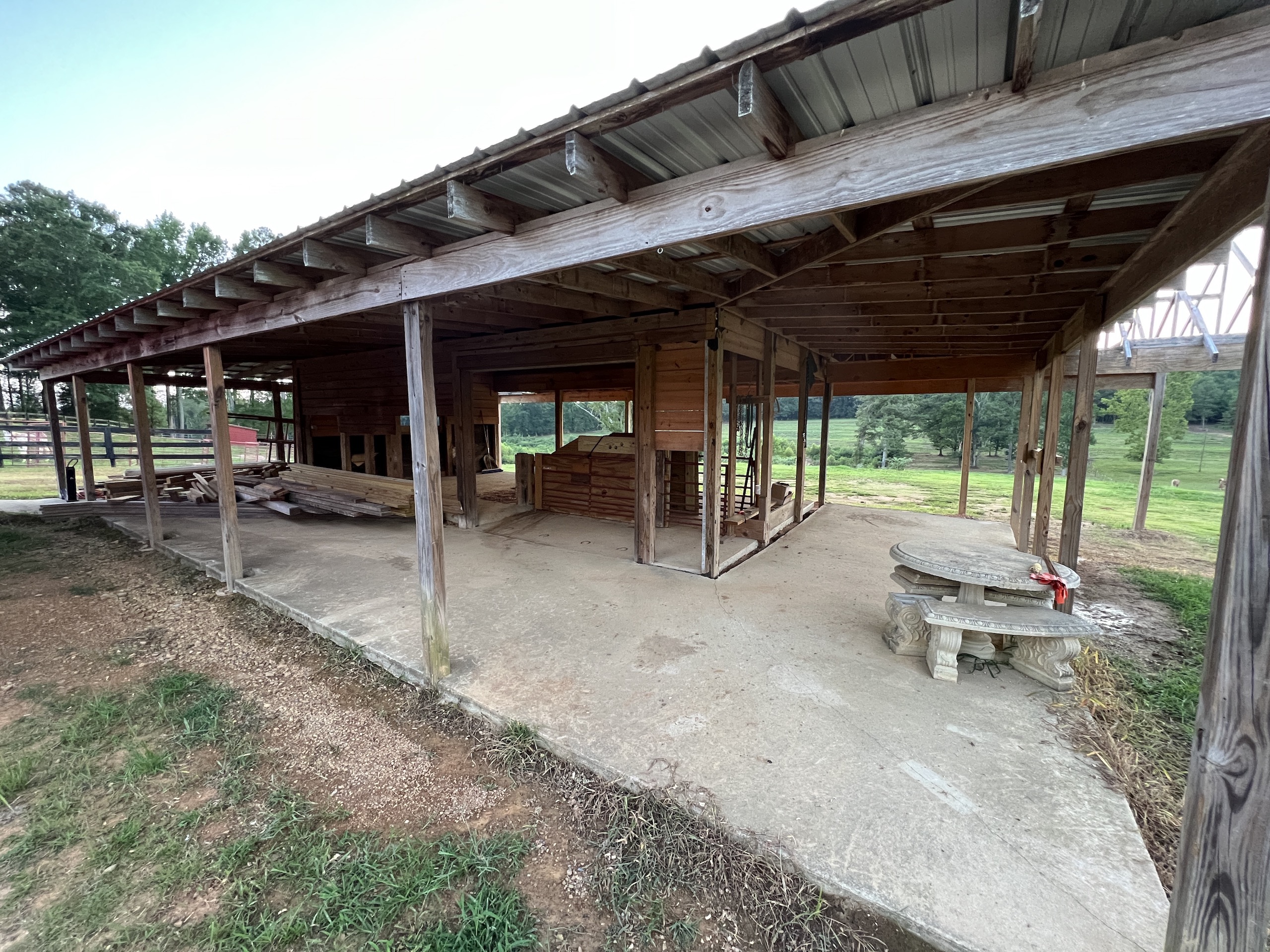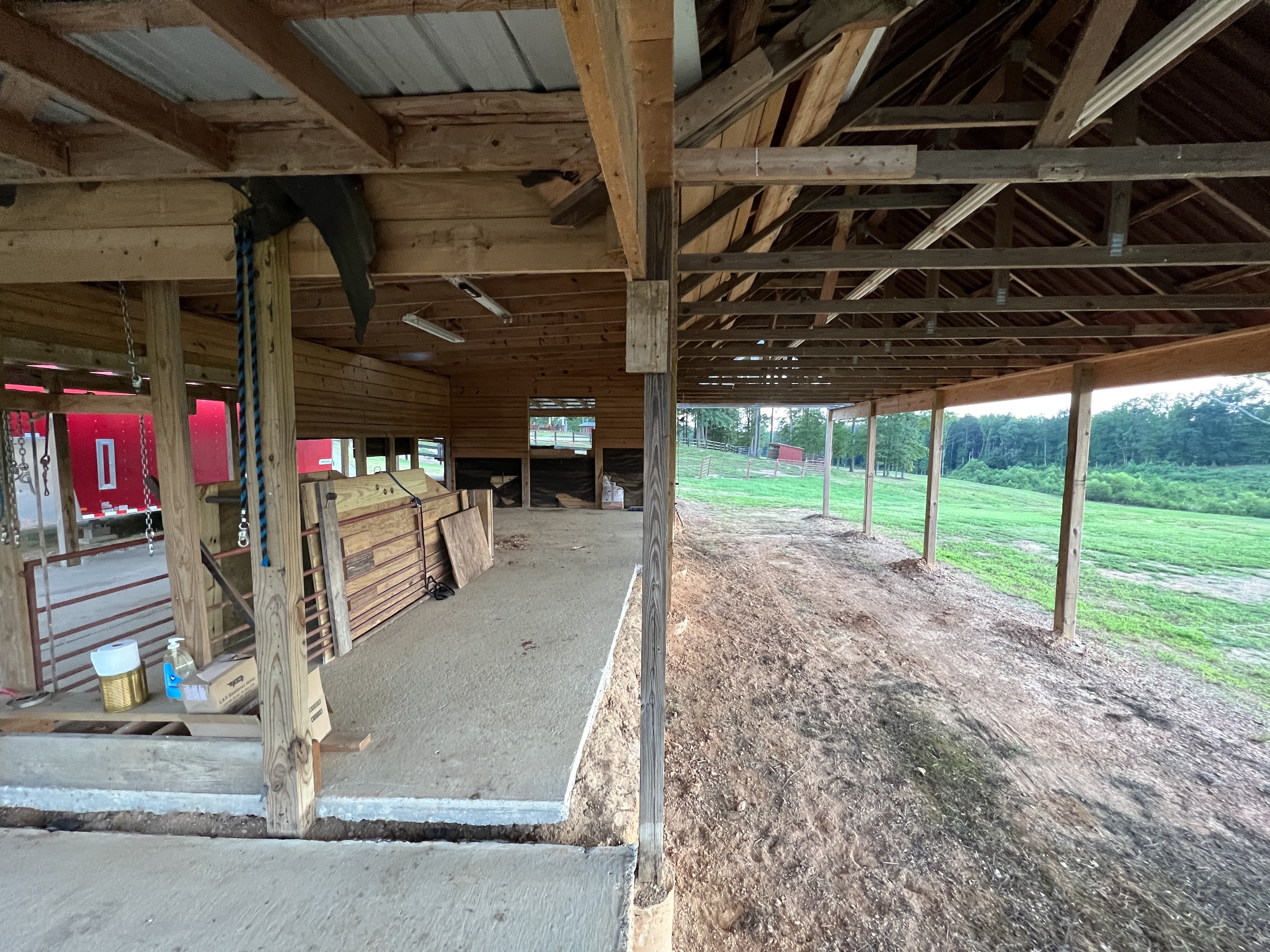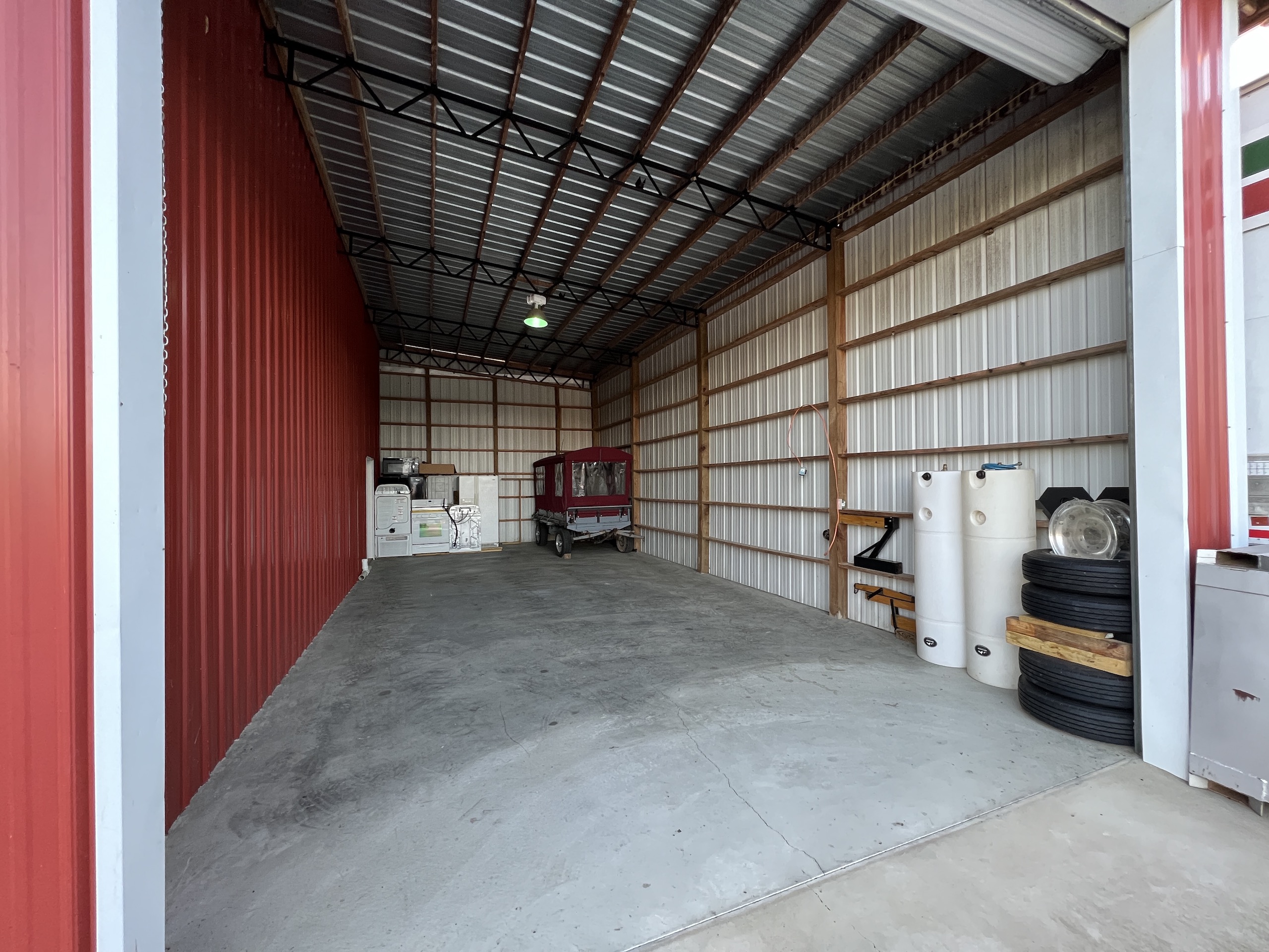 Sitting just behind the main house is a large red barn. On one side is an apartment, which is approximately 720 s.f., with 1 bedroom, 1 bathroom, kitchen/living room area, and utility room and is handicap accessible in all aspects. Tile and granite countertops are just a few custom items, and the porch overlooks the pond across the pasture. This would make an ideal space for guests, a farm employee, a family member's living space, or rental income. The big red shop has 2 enclosed bays, and one is 36' x 40', 18' x 40' with 14' roll-up doors and concrete floors. The barn is spacious and would make an excellent woodworking shop, auto shop, or storage.