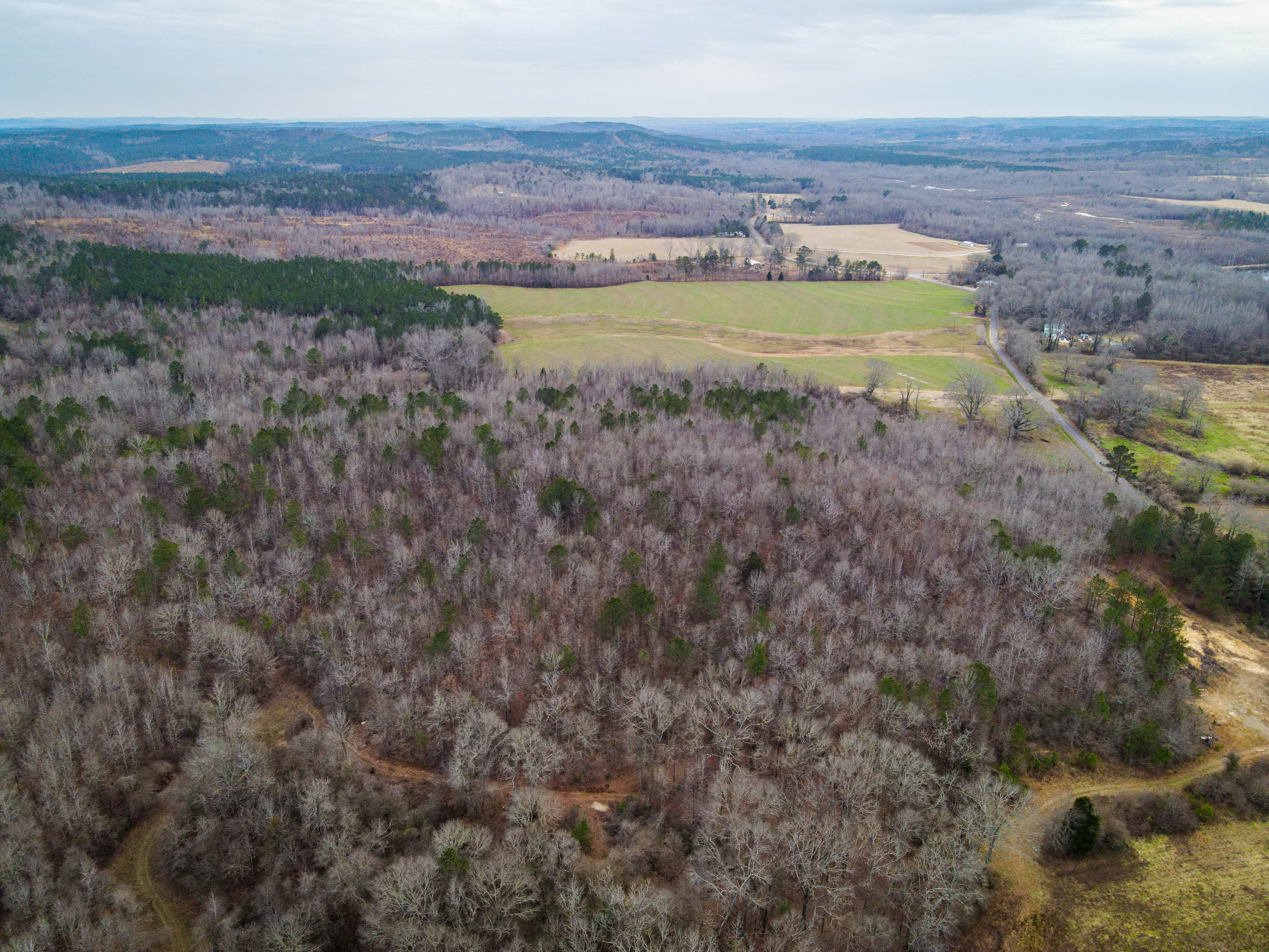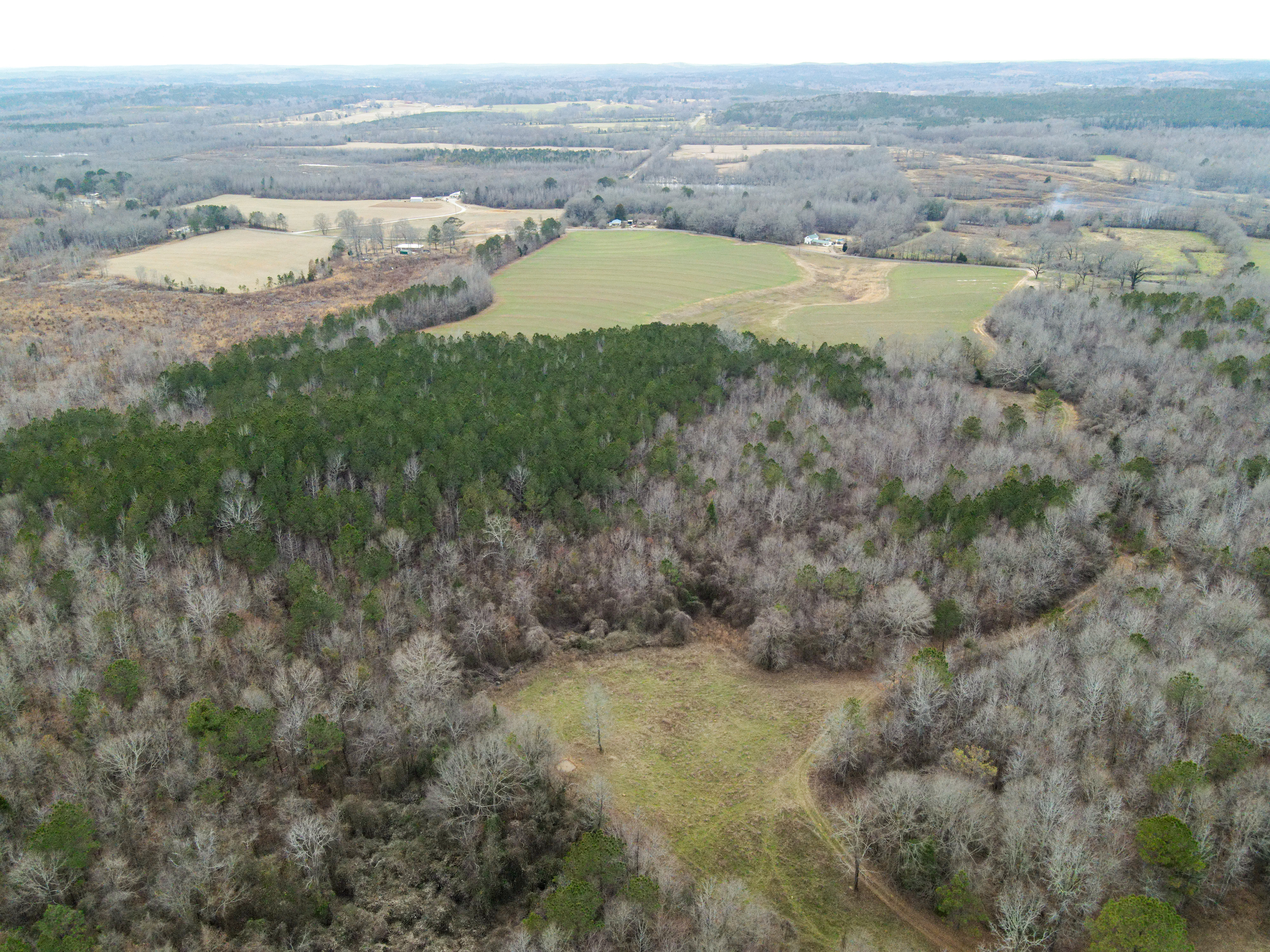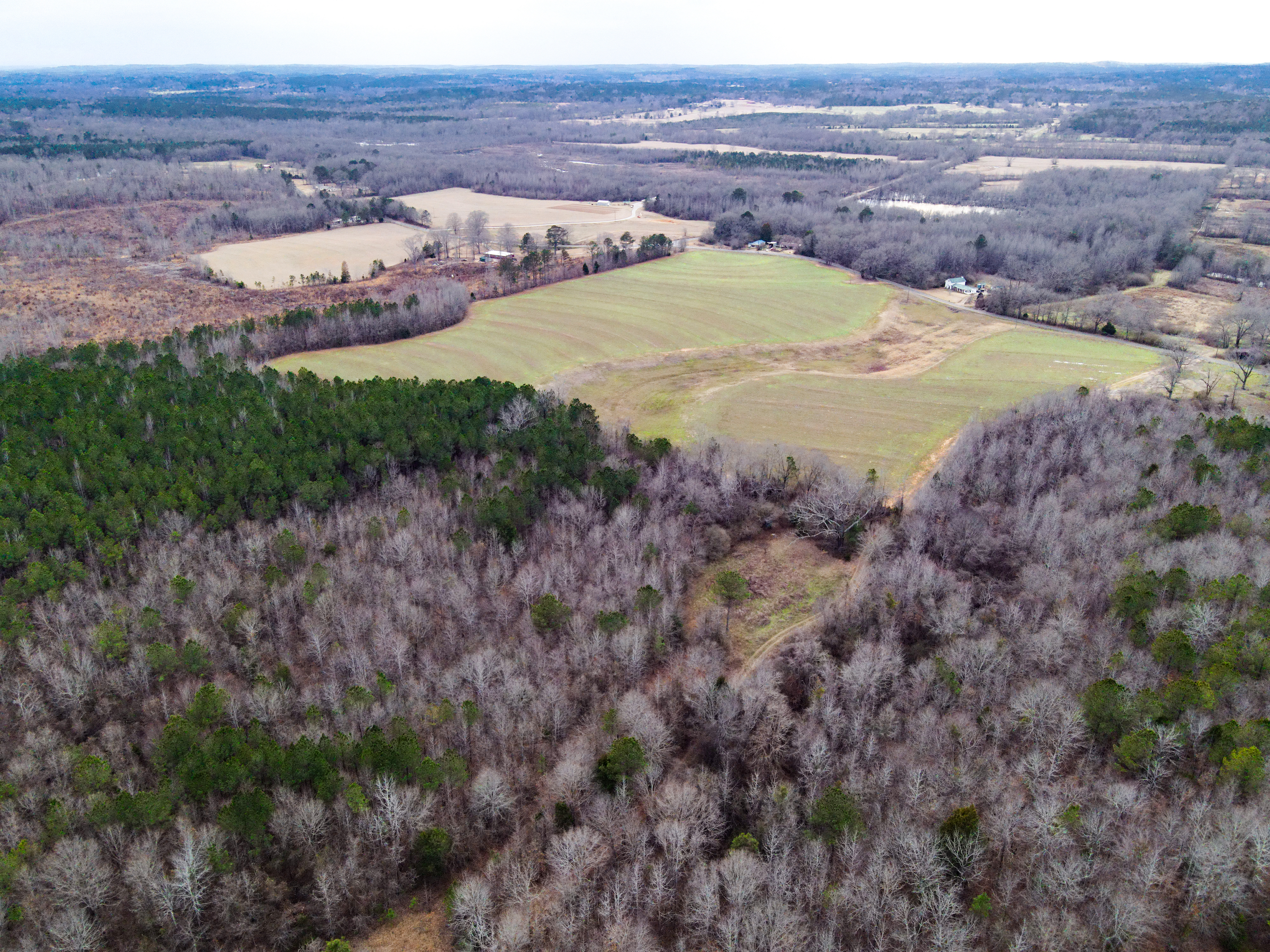 This tract offers a little something for everyone! County Road 21 is paved, and this tract has 2,500+ feet of road frontage. Power is available at the road, so there are several suitable home sites. There is also a 30 +/- acre field that was planted in cotton last growing season. This field is mostly flat and could continue to be used for row crops, planted for hay, fenced for cattle, planted for timber, or managed for dove hunting. The remainder of this tract is in young hardwoods with some pines mixed in, and signs of deer and turkey are everywhere. Just riding the trails unveils countless scrapes and rubs, and turkeys have scratched out large swaths of leaves searching for acorns and other food. The interior of this property has 5 areas for food plots, and all it would take to get them re-planted is a tractor or ATV with simple implements. There are a couple of well-established mineral licks that are a good indicator of just how high the deer density is in this area. All of the fields on this farm show well-worn trails where deer enter and exit. It is going to be difficult to find another property with this much deer and turkey sign. Miles of ATV trails on this gently rolling property offer access for hunting, improvements, or just riding. The timber on this property looks like it was harvested many years ago, and a nice stand of hardwoods is regenerating. Please contact us to schedule your private showing!
