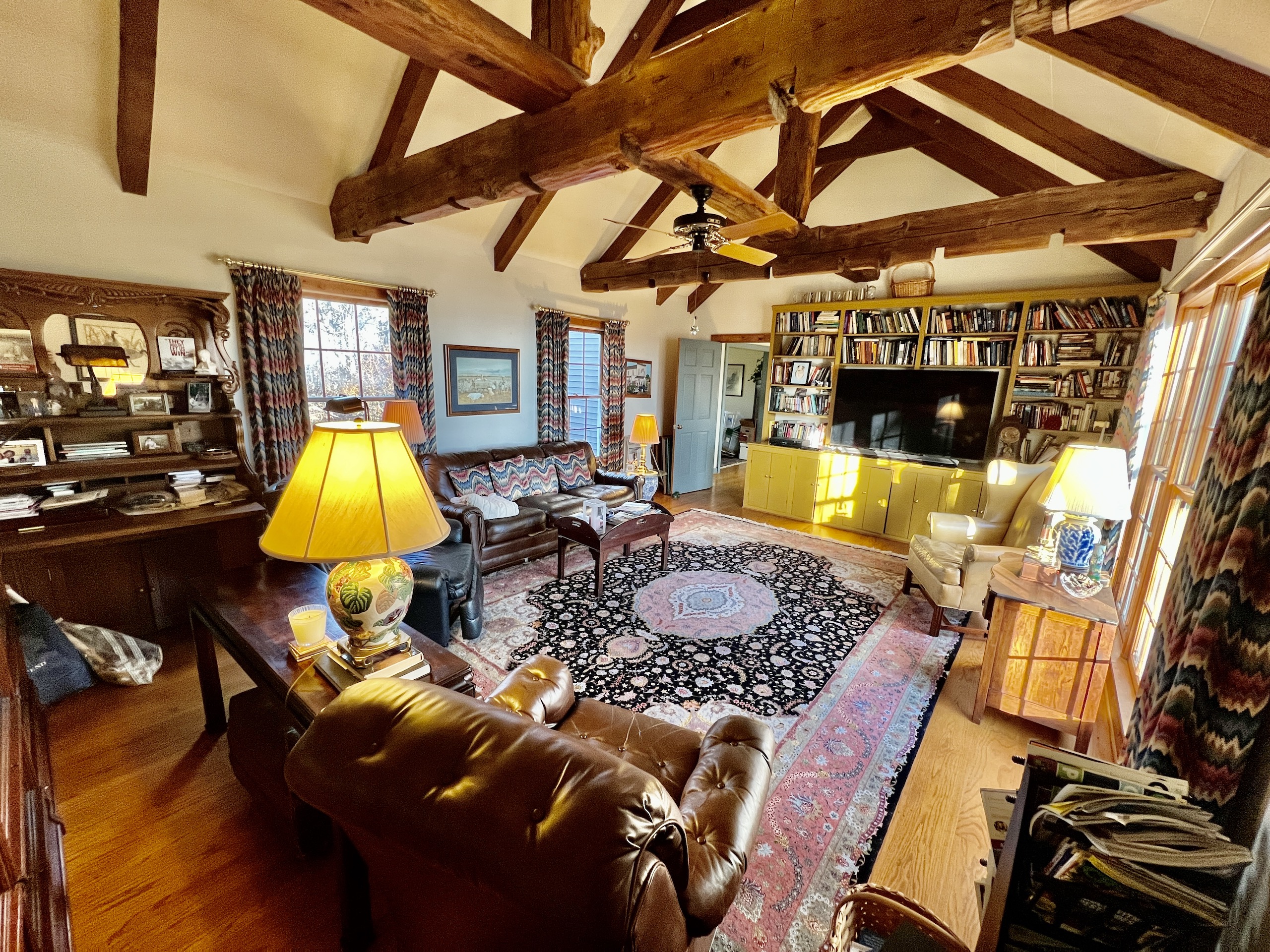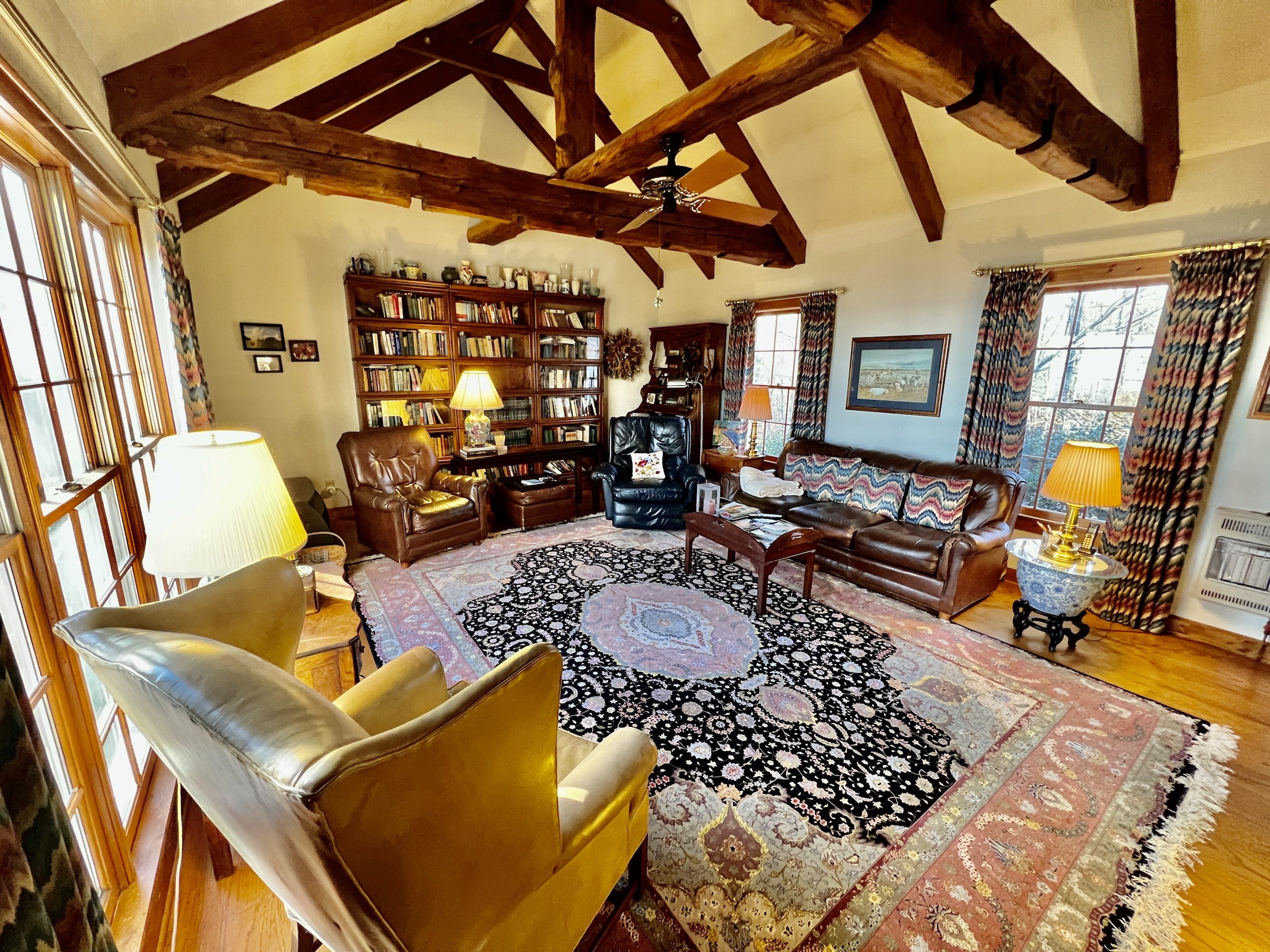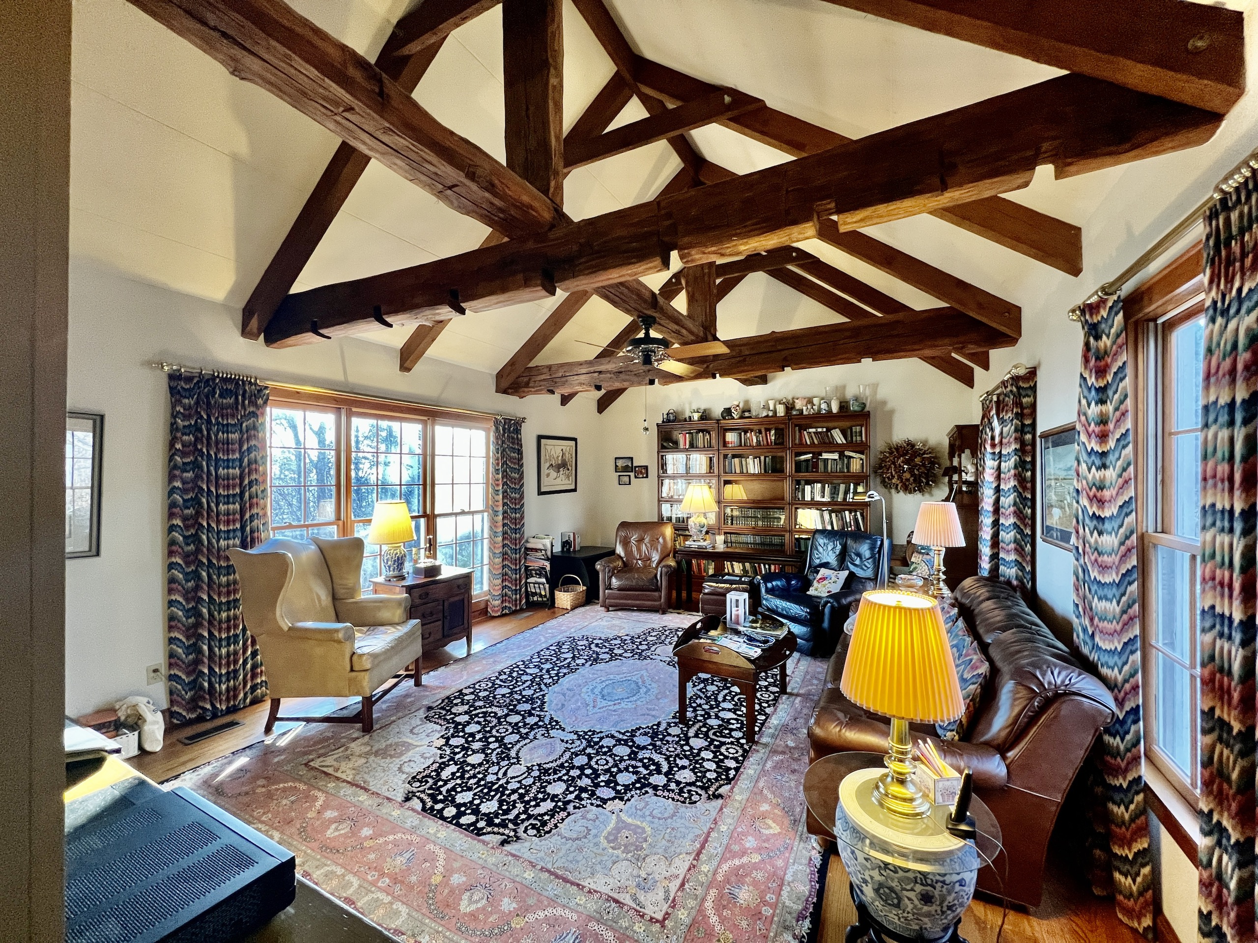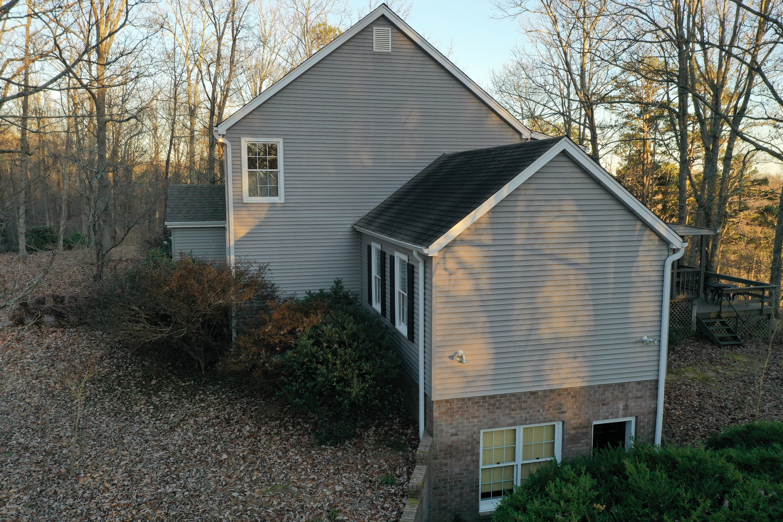 Spectacular, amazing, gorgeous, peaceful, awe-inspiring, and beautiful are just a few of the words that will come to mind when you step out onto the back deck of this cozy home, which is located on top of July Mountain, overlooking Lake Guntersville. A place of serenity and natural grandeur is what you will find in this New England-inspired custom home. Entering the main floor you will notice an open living room/sunroom area that has plenty of natural light pouring in from the back windows and skylights. The hardwood floors are custom and craftsmanship is evident throughout the home. An interesting feature is a wood-burning stove near the sitting area, making for a warm place to settle in on a cool night. There is a dining room and a well-equipped kitchen adjacent to the living space. A study, with bookshelves galore and a piano, sets just off the living room and the den sets off the west wing of the house. A prominent feature in the room is the large reclaimed exposed beams supporting the ceiling. Just pick your favorite spot to enjoy a conversation, read, work or just simply relax. Upstairs there are 3 bedrooms, a large master with its own bathroom with double vanity, shower and walk-in closet. Another bedroom has access to an open area, where you can see down into the main floor sunroom, and also see through the skylights. The third bedroom is great for guests. The second bathroom upstairs is shared by the 2 guest bedrooms. The basement is interesting in that it could be used as almost a separate living space. It has a living/sitting area, as well as its own small kitchen area. Plus an additional room that could be used as an office, workout room, playroom, guest bedroom, or for your needs. There is also a full bathroom in the basement. A large area is also unfinished in the basement and is currently used for storage. The house is approximately 1775 sf on the main floor, 1145 sf upstairs and 940 sf in the basement. The land itself is some of the most naturally beautiful you will see. The mature hardwood timber has been growing for decades. There are mammoth-sized chestnut oaks, white oaks, hickories, poplars and maples, all up and down the ridge. The property sits atop July Mountain and has thousands of feet of brow frontage that have amazing views in numerous locations, across the property. This gives this tract excellent potential for a family that wants to come in and build several more cabins if needed or just hold it as is, knowing that desirable views will always be a draw for future buyers, and possible future divisions. Most of the land sets on top and is gently rolling. A small mountain stream flows during the rainy season, bouncing and trickling down the slope. Large boulders and rock outcroppings are scattered about, making some picturesque locations. A small barn is set just a stone's throw away from the house making for good storage and a cool-looking accent structure, it fits in well with the scenery. The wildlife population is excellent in the area and deer and turkey are regular visitors. There is plenty of room to explore and create your own walking trail. There is a sense of privacy from the moment you pull in. The gravel driveway is at the end of a county-paved road and is gated. Power and city water are run to the house, making it very convenient. As lovely as the house is inside the true “room” you will fall in love with is the back deck. There is a 15’x30’ covered porch and a 12’x20’ open-air deck where you will sit in amazement at the details you can see while gazing across the panoramic views across Lake Guntersville. As the seasons change so do the hues of the colors on the foliage on the mountains in the distance. Some mornings there is fog rising slowly off the lake, other days clear. Fresh blooms in spring are all around you, from the native plants that have been planted around the house and species that are natural to the ridge. The fall color is simply amazing as well. Only 10 minute's drive down into Scottsboro and on down to world-renowned Lake Guntersville, which is known for its tremendous fishing and boating opportunities, this makes this retreat one of the very best you will find. I am so excited to bring this treasure to market, the owners have really created a gem. Please reach out to me, Ben Richardson, the listing agent for more details and to schedule your private showing on this illustrious property.