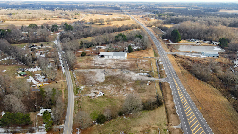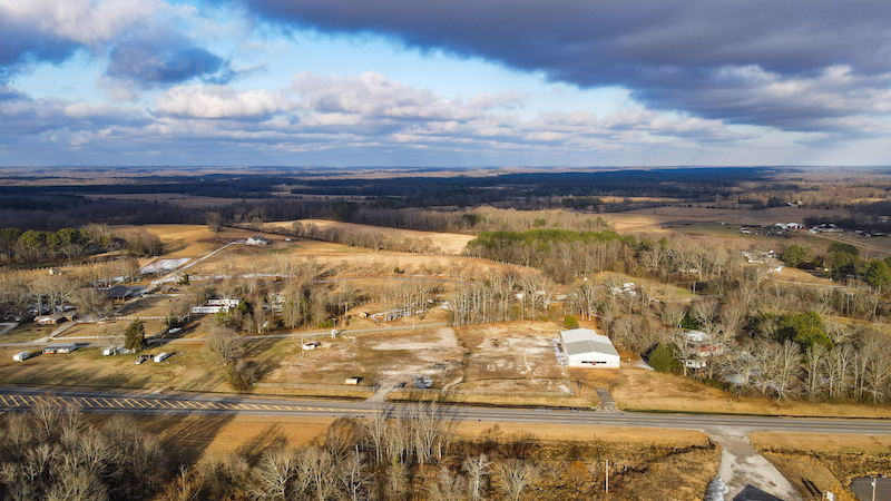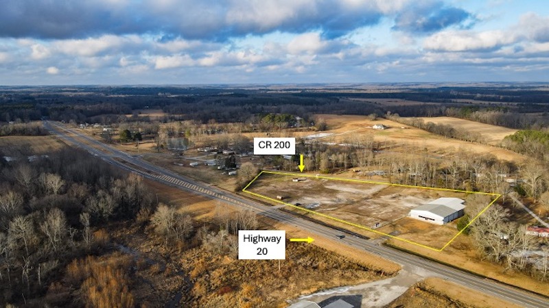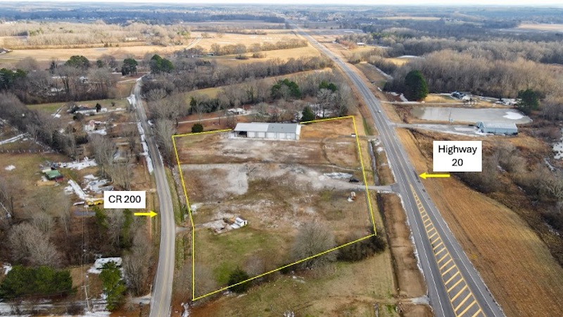 This commercial property is located along a high-traffic corridor with extensive frontage on both Highway 20 and County Road 200, offering strong visibility and multiple access points. The property includes more than 1300 feet of combined road frontage and features two separate entrances from Highway 20, supporting a variety of commercial and operational uses. The site is mostly fenced around the perimeter and includes a gravel parking area suitable for customer or equipment access. City water is connected, and wastewater is handled by a 1000-gallon septic tank already in place. These existing utilities reduce the need for additional infrastructure and support immediate functionality for commercial operations. A newly constructed 160x80 metal building is positioned on the property and designed for flexibility. The structure includes one bedroom, one full bathroom, and two half bathrooms. The interior space also features a large showroom with a private entrance, allowing separation between public-facing and operational areas. A dedicated conference room provides additional space for meetings, training, or administrative use. The building is equipped with six large roll-up doors, enabling efficient movement and storage of equipment, vehicles, and inventory. This layout supports uses such as equipment storage, service operations, distribution, or other light industrial or commercial functions where indoor access and maneuverability are important. Security infrastructure is already in place, including an alarm system and video surveillance. These features support asset protection and monitoring without requiring additional installation. The building and surrounding property are configured to accommodate controlled access and operational oversight. The seller will consider dividing the property and selling approximately 3.2 acres with the building separately, providing an opportunity for buyers seeking a smaller footprint while retaining the improvements and highway exposure. The property is approximately 15 minutes from Florence, Alabama, and is within convenient driving distance of a regional hub for commerce, services, and transportation. The surrounding area experiences consistent traffic flow, contributing to visibility for business identification and access.