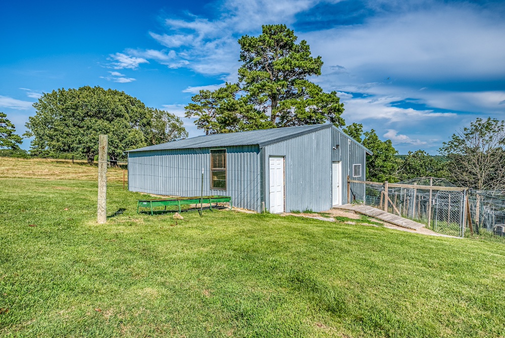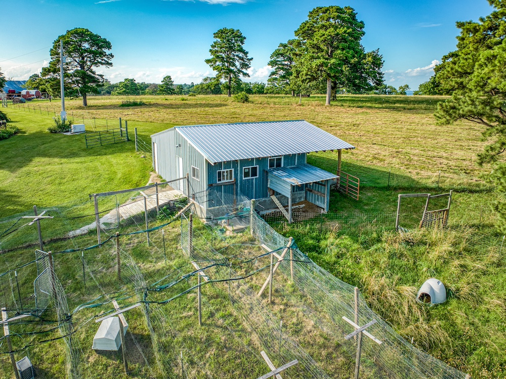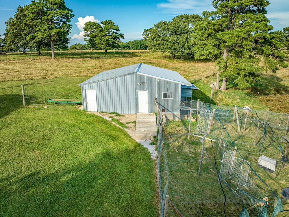 - Metal Barn & Chicken Coop: Equipped with electric, water, predator-proof run, milking station, and storage.