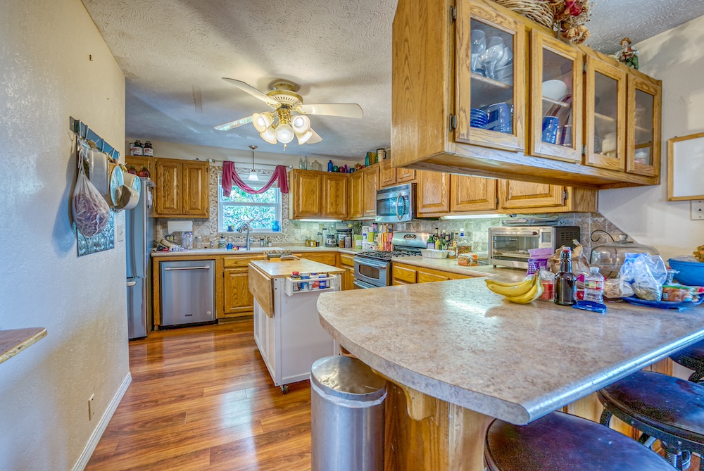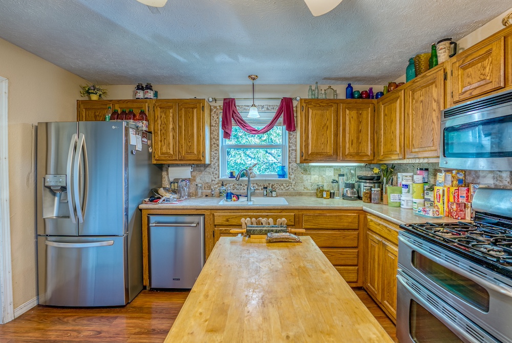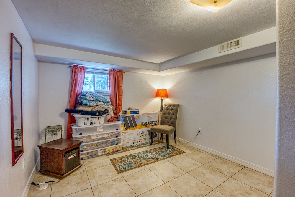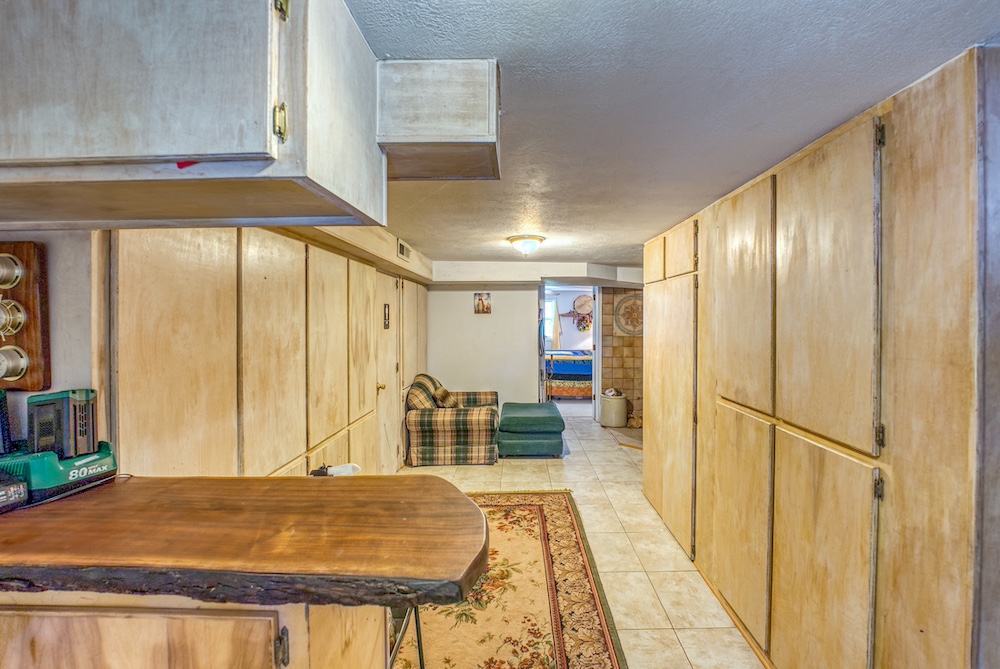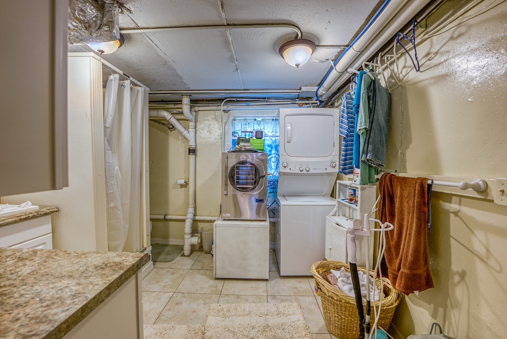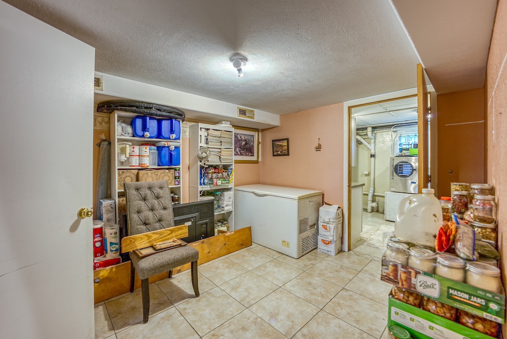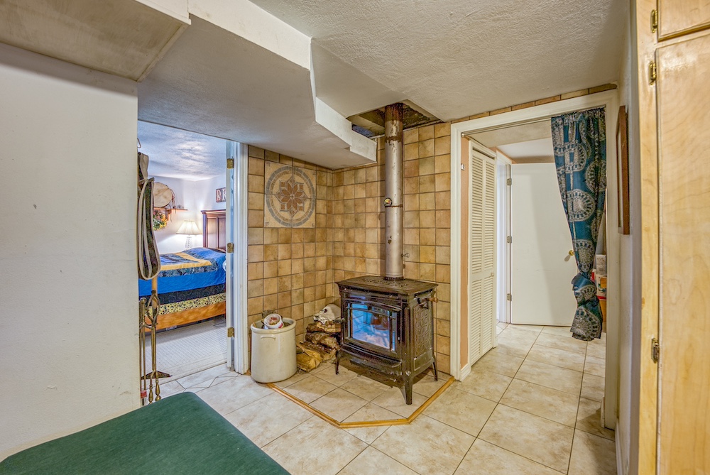 - Walk-Out Reinforced Basement: This basement is complete with a safe room, second laundry, three bedrooms, storage, and radiant wood stove heat.