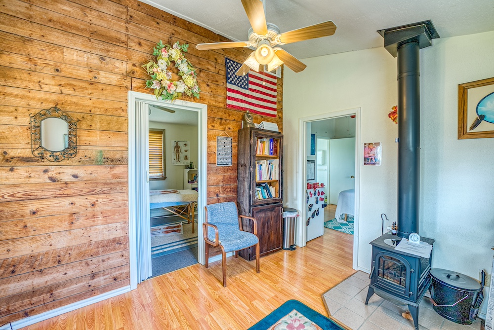 At the heart of the property sits a thoughtfully designed primary residence that marries rustic charm with modern efficiency.