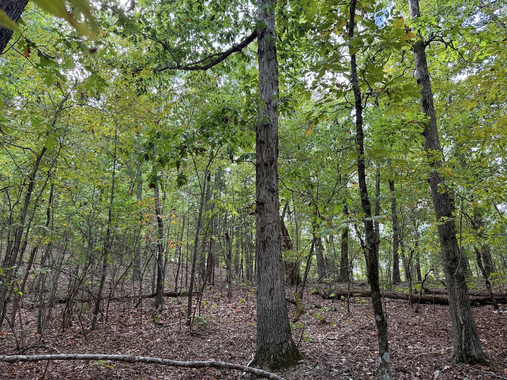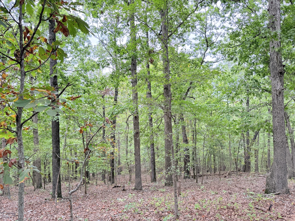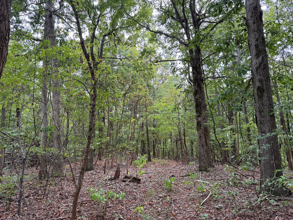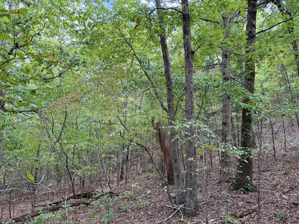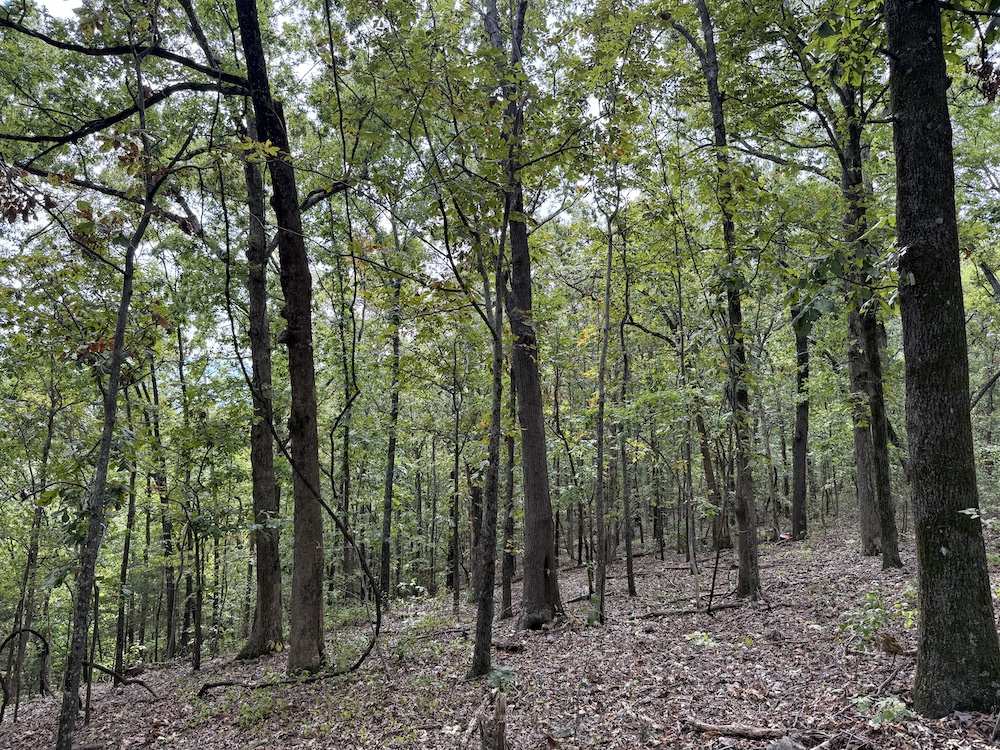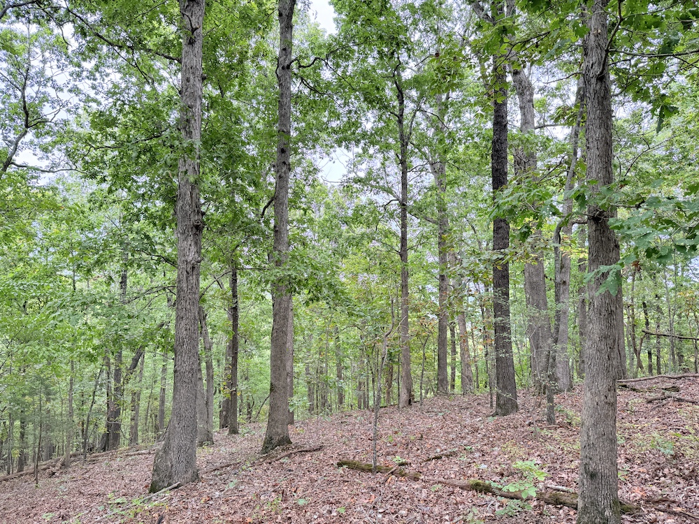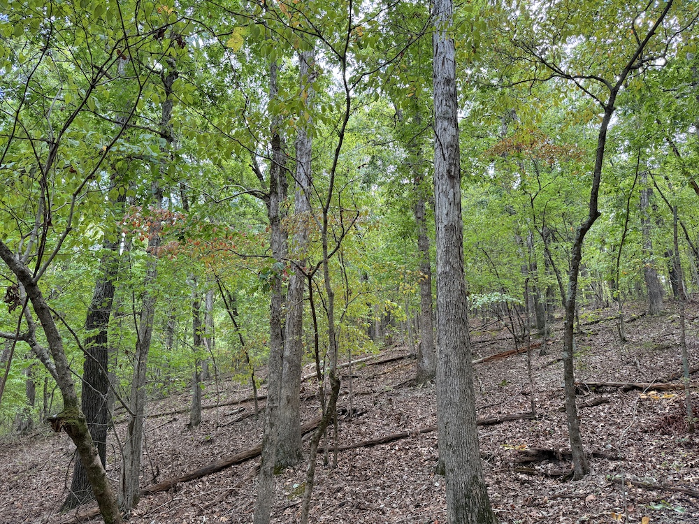 Fronting the scenic Highway 9, the property offers a newly constructed driveway leading directly onto the land, providing easy access while maintaining a sense of privacy and seclusion once inside. As you step into the timber, it’s immediately evident this tract has been carefully preserved and is dominated by massive, mature hardwoods. Towering white oaks and red oaks blanket the landscape, complemented by the occasional hickory, walnut, and pine. The forest floor is clean and open in many places, a sign of a healthy, thriving stand of marketable timber that also provides a picturesque setting for a future cabin or home.