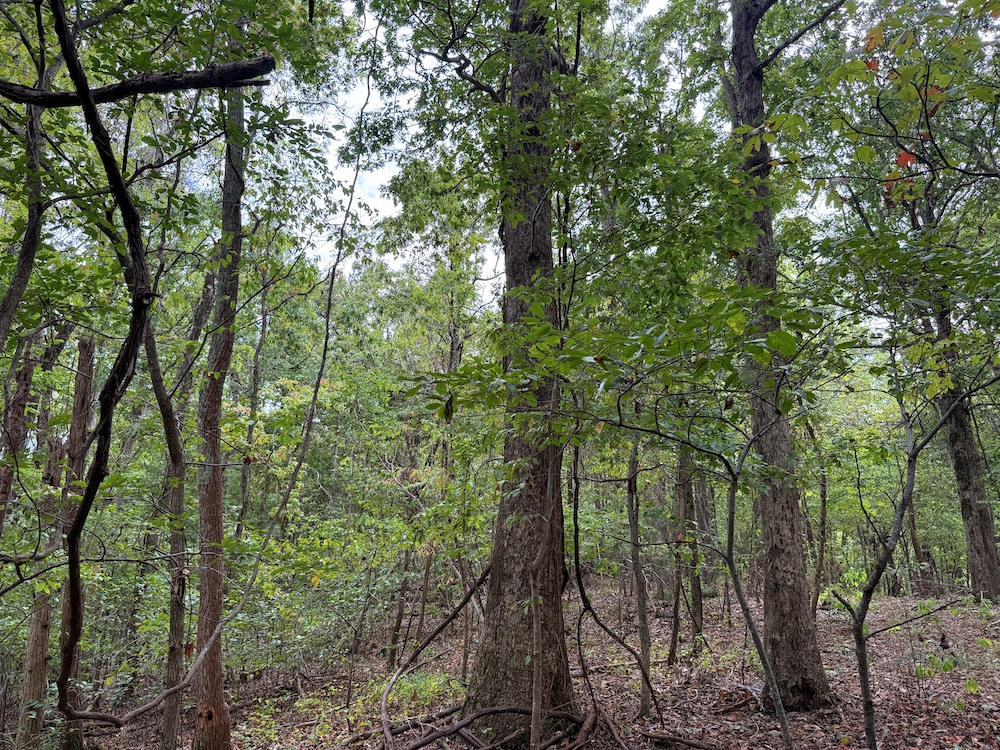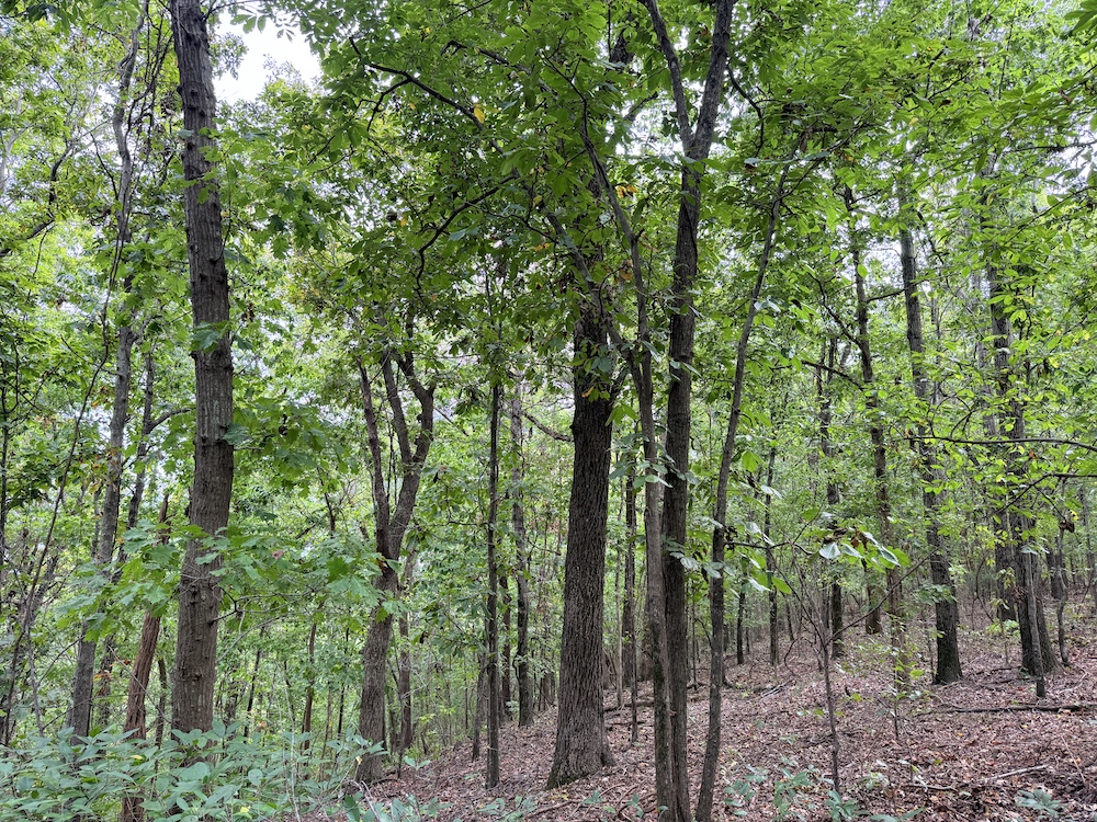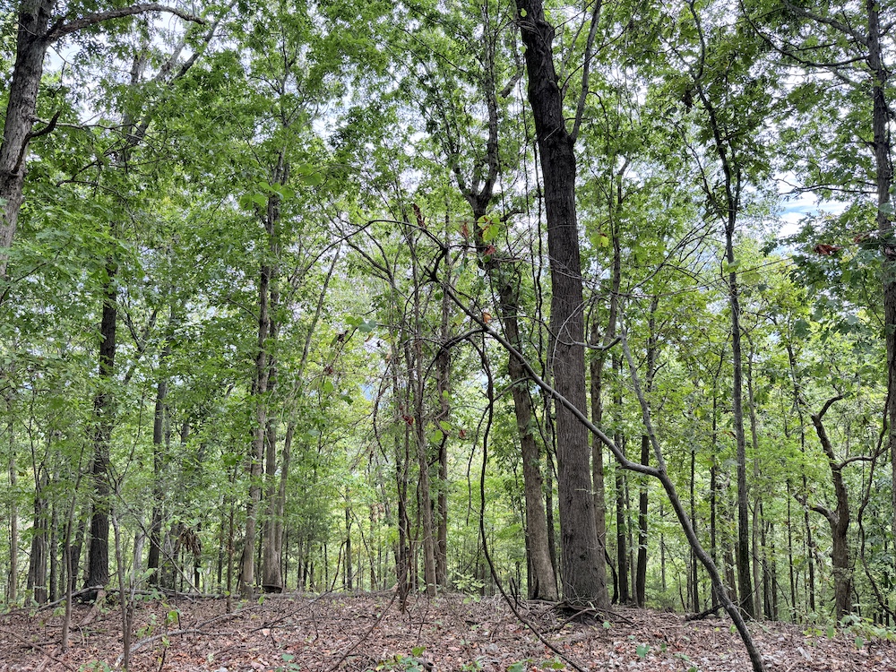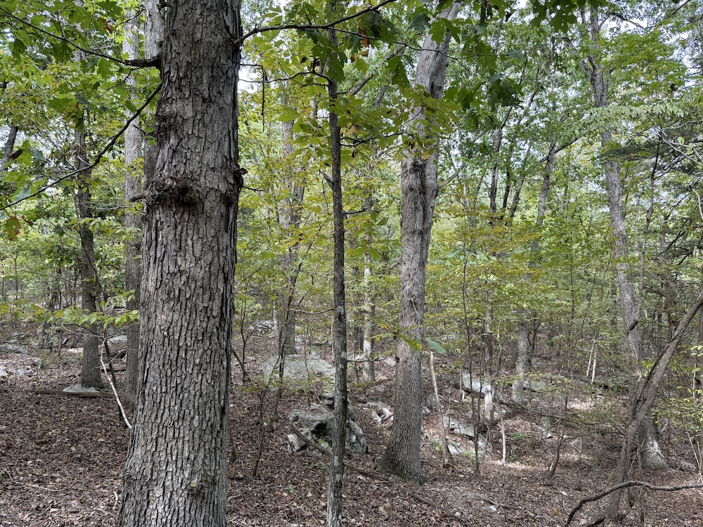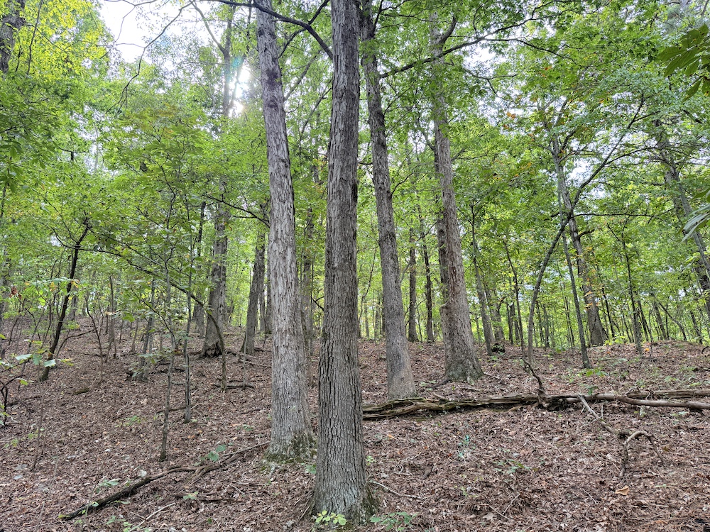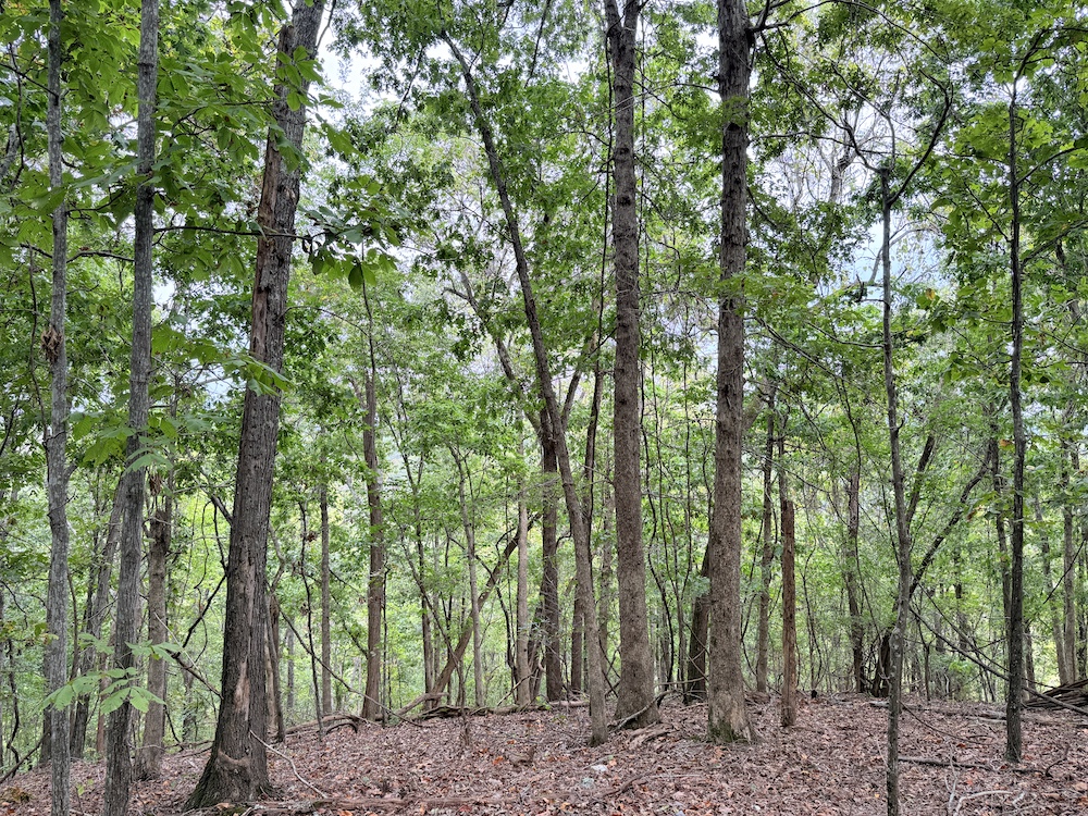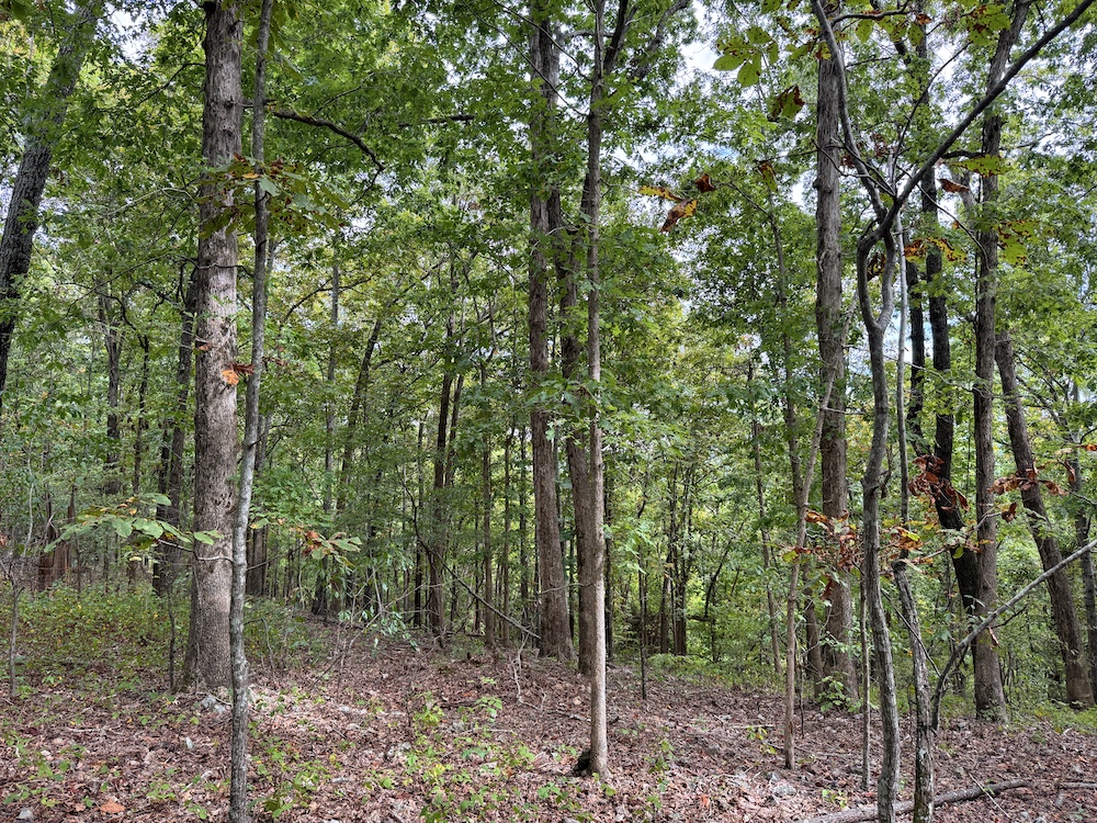 Fronting the scenic Highway 9, the property offers a newly constructed driveway leading directly onto the land, providing easy access while maintaining a sense of privacy and seclusion once inside. As you step into the timber, it’s immediately evident this tract has been carefully preserved and is dominated by massive, mature hardwoods. Towering white oaks and red oaks blanket the landscape, complemented by the occasional hickory, walnut, and pine. The forest floor is clean and open in many places, a sign of a healthy, thriving stand of marketable timber that also provides a picturesque setting for a future cabin or home.