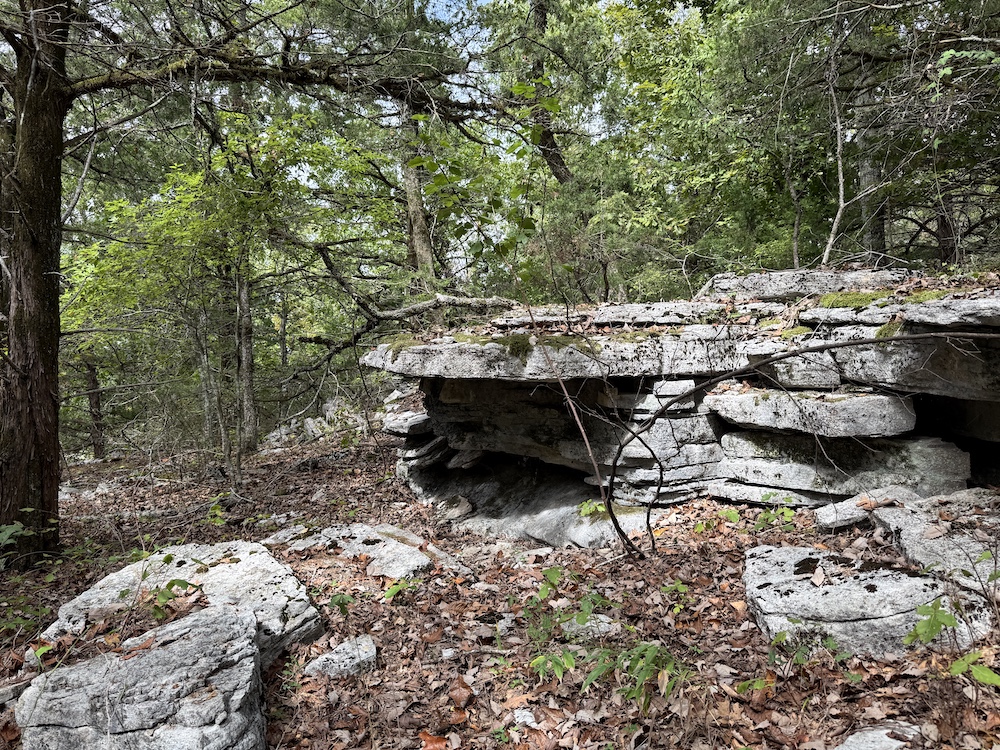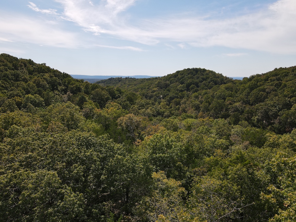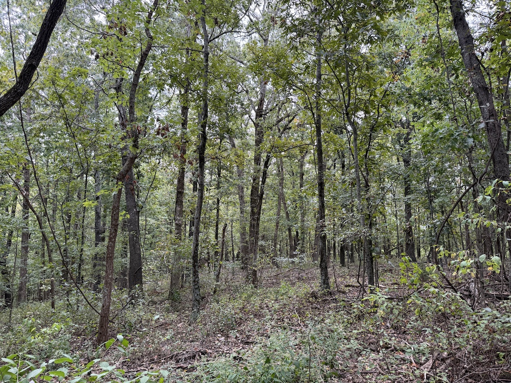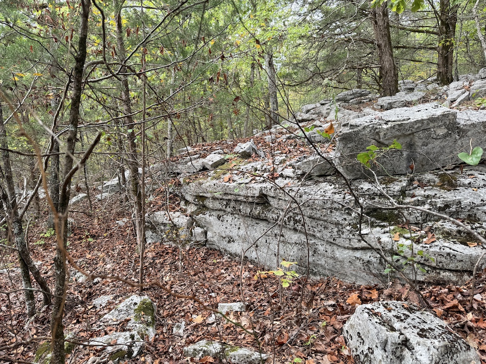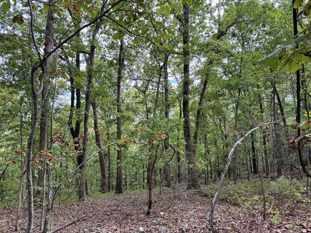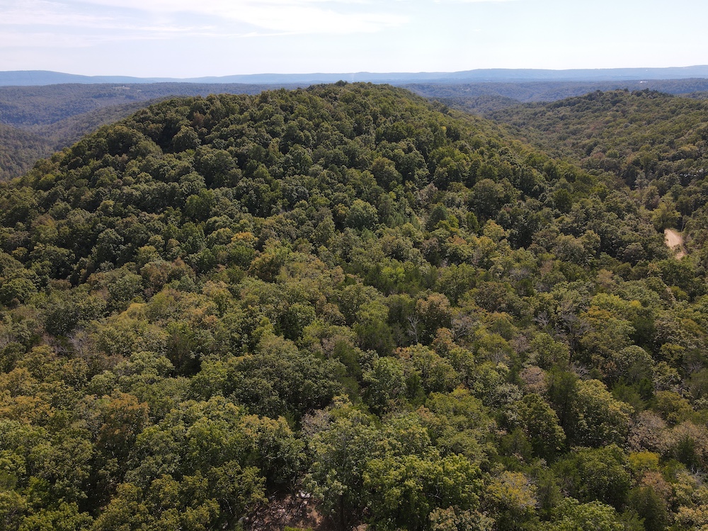 The terrain here is a true Ozark masterpiece, gentle enough to be fully usable, yet diverse enough to keep things interesting. The land “stair steps” gracefully down the east-facing slope, with wide, wooded flats cascading from one level to the next. A large, main ridge runs nearly a half mile through the heart of the tract, offering multiple excellent build sites with views through the hardwood canopy and perfect setups for hunting stands. Along the ridge and its spurs, you’ll find scattered bluff rock, small ledges, and impressive natural outcroppings that add both beauty and character to the property.