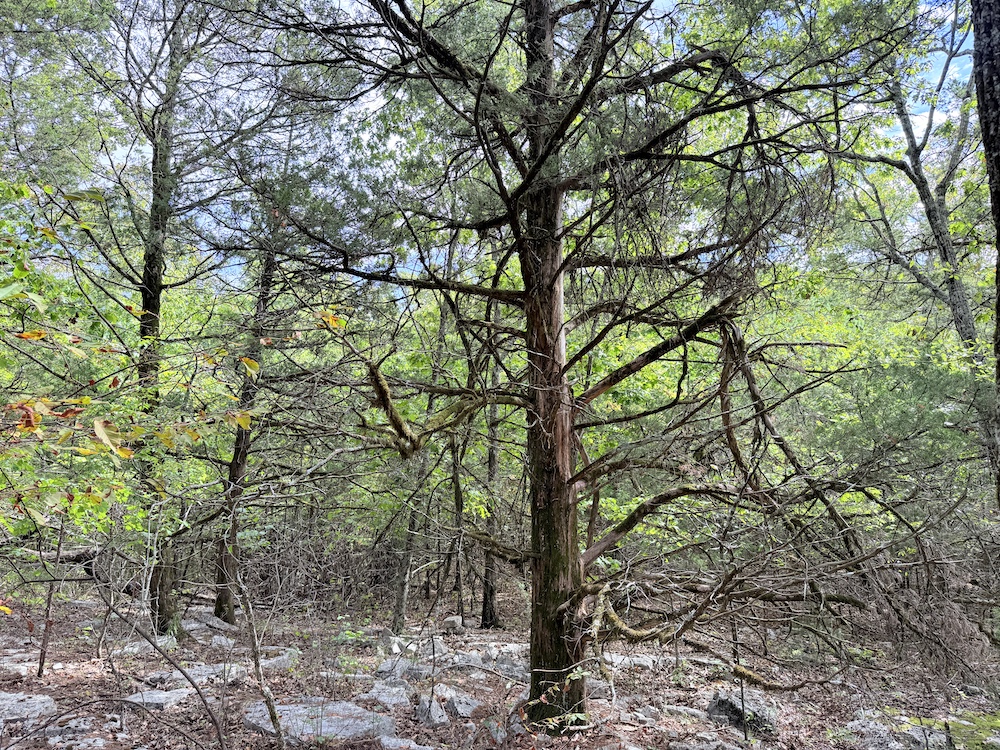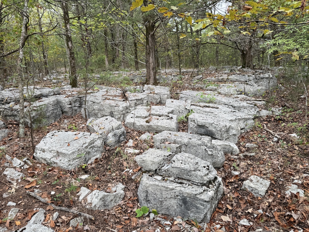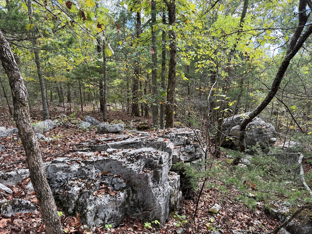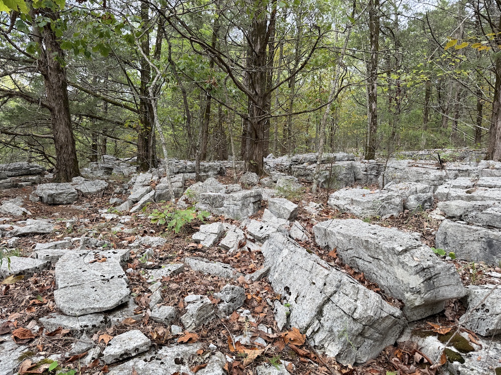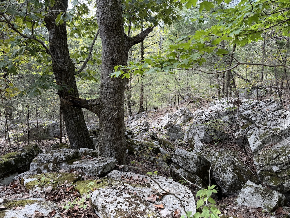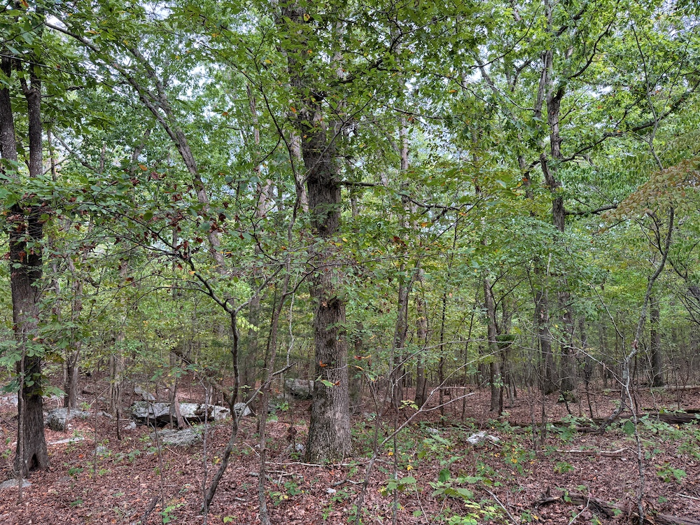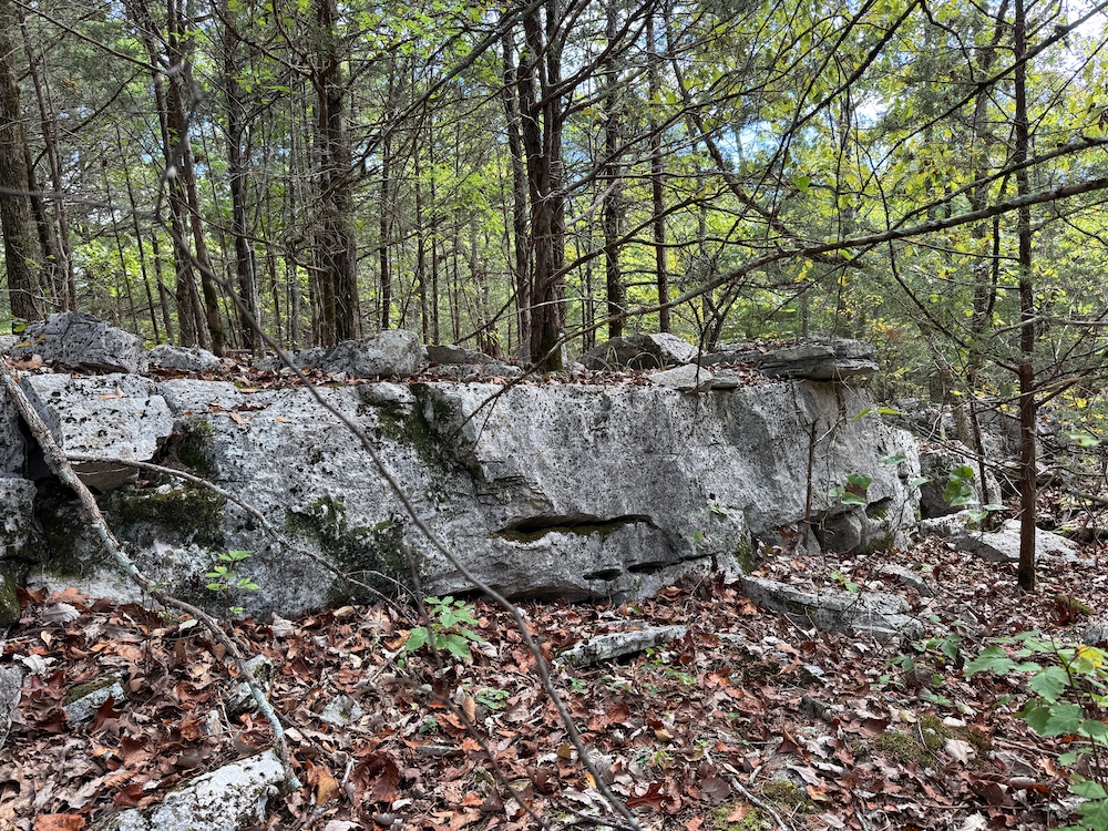 The terrain here is a true Ozark masterpiece, gentle enough to be fully usable, yet diverse enough to keep things interesting. The land “stair steps” gracefully down the east-facing slope, with wide, wooded flats cascading from one level to the next. A large, main ridge runs nearly a half mile through the heart of the tract, offering multiple excellent build sites with views through the hardwood canopy and perfect setups for hunting stands. Along the ridge and its spurs, you’ll find scattered bluff rock, small ledges, and impressive natural outcroppings that add both beauty and character to the property.