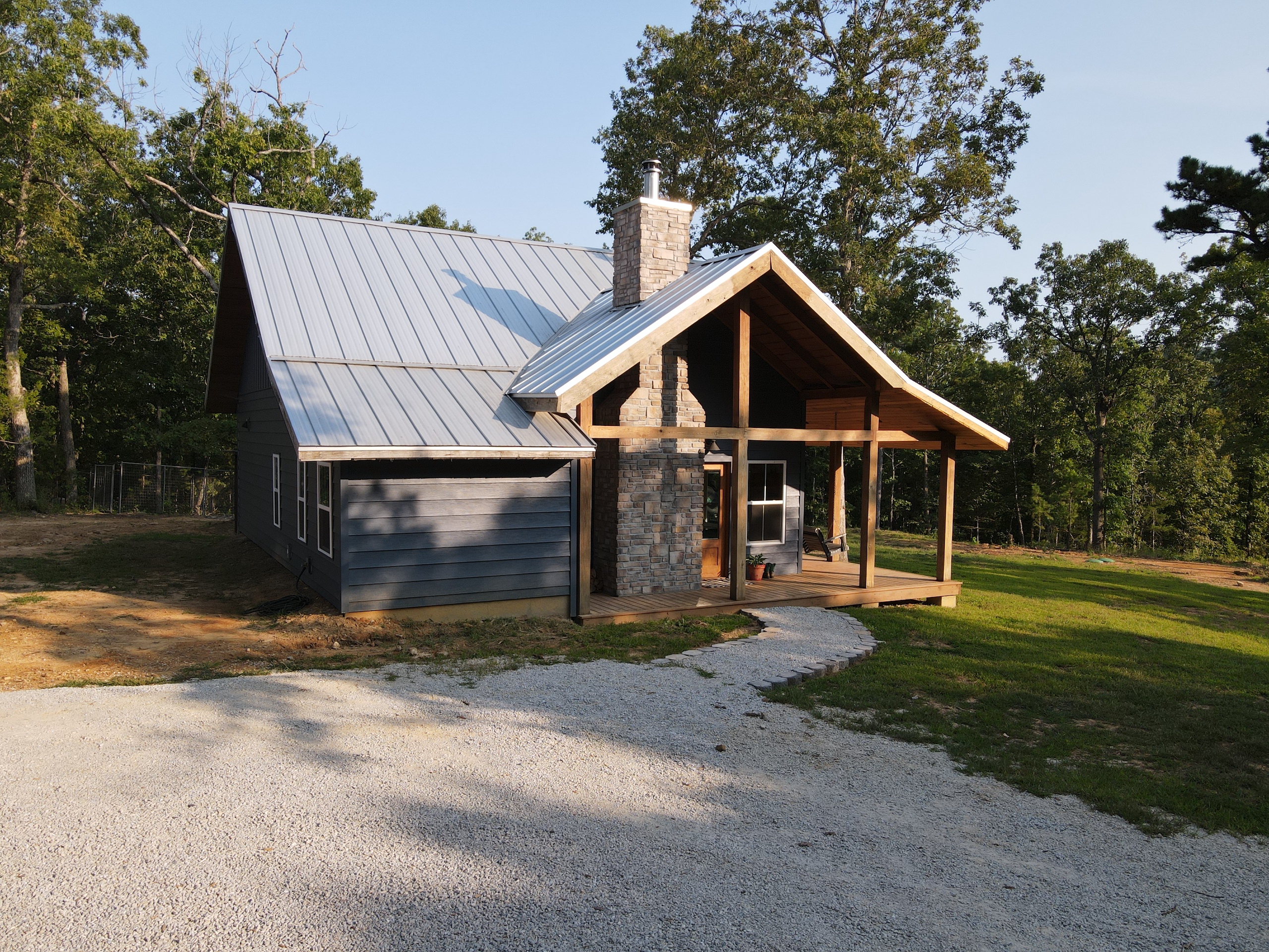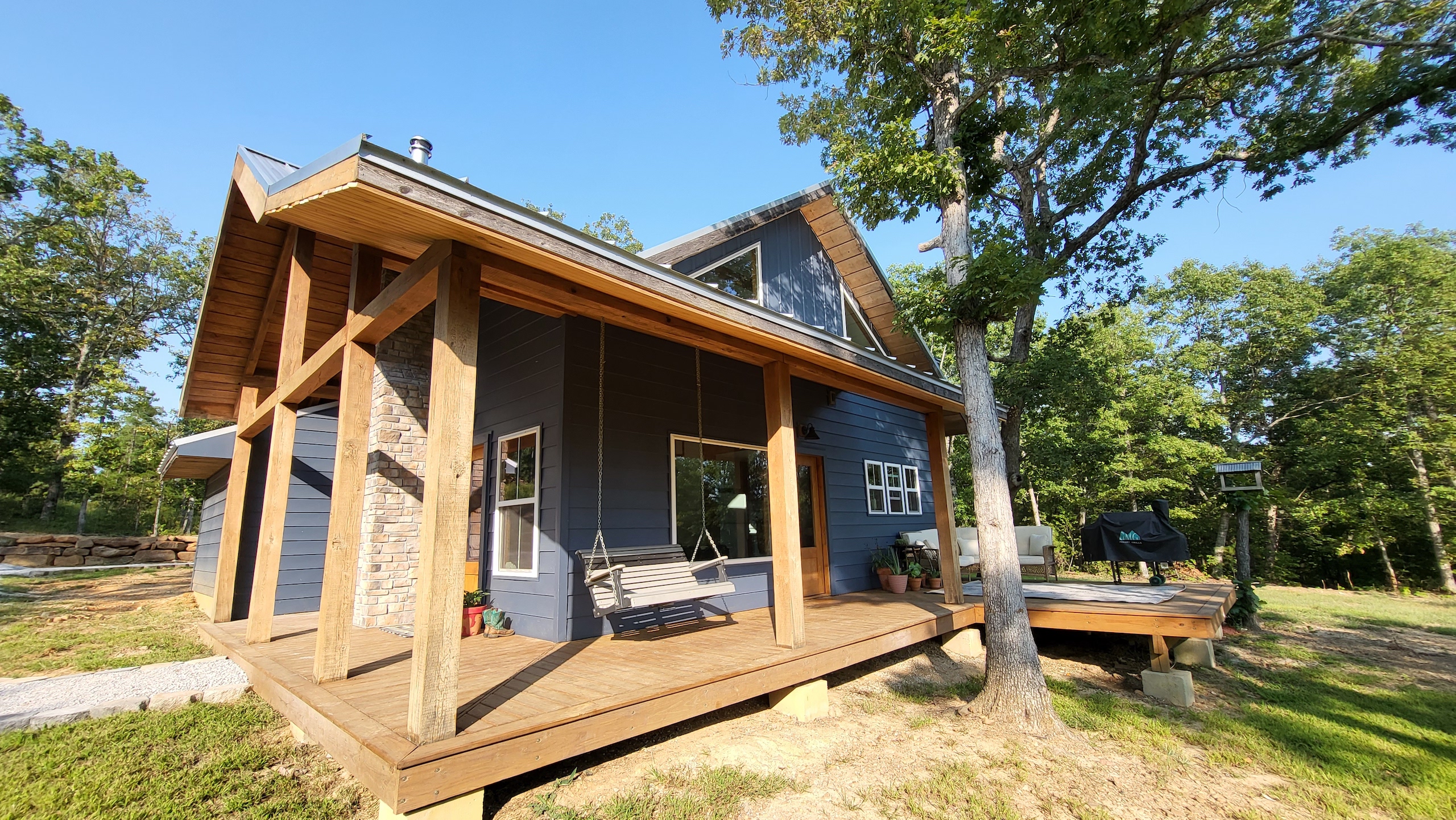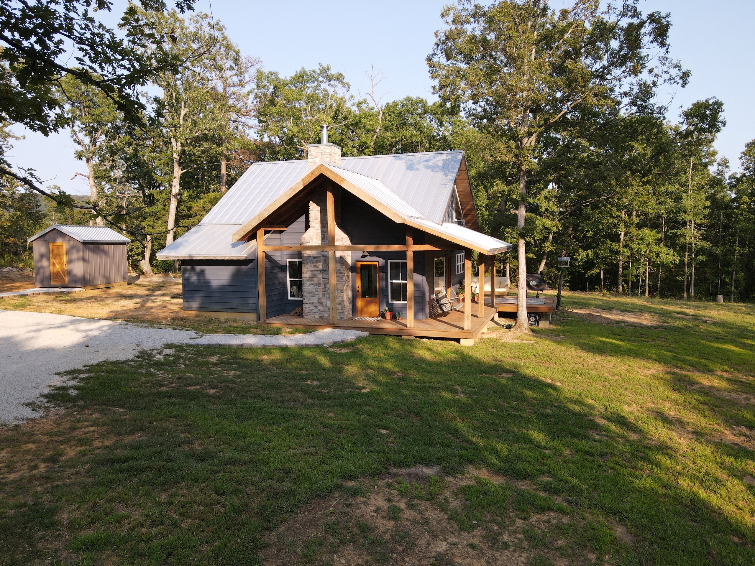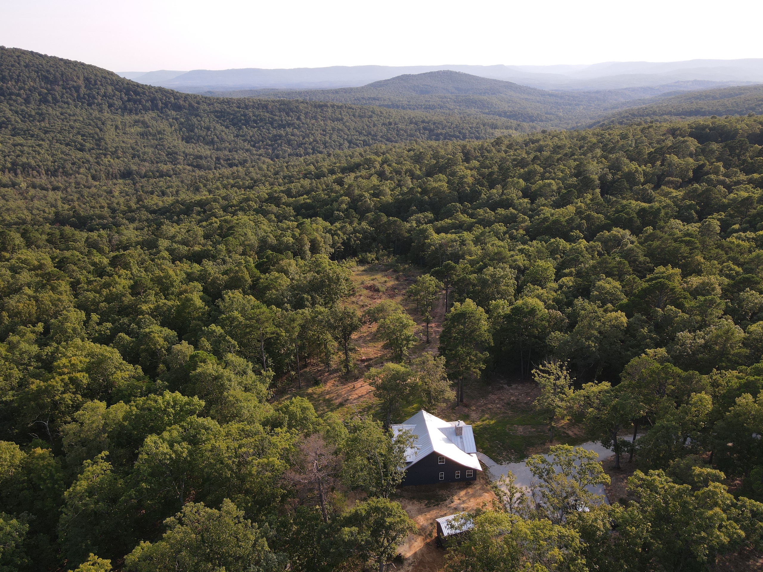 That stunning custom home in the heart of the mountains awaits you. This gem is loaded with character and modern farmhouse charm. Setting in the middle of stunning Ozark Mountain hardwood timber, this home is packed with all the heart and soul that truly makes something special. Located just off the gravel county road, this quaint oasis is at the end of a newly graveled chat drive that meanders amongst the lush white oak and red oak timbers that grace the landscape. Rockwell couldn’t capture the essence of this beautiful place on his best day. The drive ends at the home, complete with rock pavers and a recently built custom massive rock retaining wall. The rolling landscape lends itself to the amazing view that can be seen from the oversized deck, and this mountain view is sure to impress. The land is loaded with hardwoods and wildlife and would be ideal for a hunting getaway or just a pleasure to walk off your front porch and head to your stand to chase the plentiful wildlife that call this tract home. There are opportunities for deer, bear, turkey, and more! The home is entirely wrapped in metal siding and metal roof for years of maintenance and hassle-free enjoyment. The large, covered deck accents the east and south of the house, and a larger setting area compliments the BBQ area for all your entertaining needs. On the porch, you are greeted with Alder wood custom doors, beautiful rustic fixtures, and a towering custom rock fireplace. The great room is topped off with vaulted ceilings, shiplap wall accents, massive picture windows, alder wood trim, and a beautiful wood-burning stove. The dining/living combo flows wonderfully into the roomy kitchen with knotty alder cabinets, beautiful color schemes, custom alder vent hood, large subway tile backsplash, shiplap ceilings, and more. Transitioning into the master bedroom, you’ll find gorgeous, exposed beams, more custom trim work, shiplap accents, and plenty of storage with oversized closets and custom barn doors. The large bathroom on the main level has a tub shower, custom vanity, and dual sinks. The mudroom and laundry room are conveniently located off the back door with the ease of access and boast plenty of cabinetry and a large sink. As you head up the custom staircase, the spacious landing is brilliantly doubling as a small office. Two additional bedrooms and another bathroom top off the ensemble. The tranquil and inviting color scheme and breathtaking vista views will make you never want to leave. As the sun sets and the colors blanket the rolling hills with the cricket chirping and the birds singing, you could be sitting on the deck of your new charming home amongst your private acreage of Ozark heaven, relaxing and enjoying your life like you never thought possible. This beautiful place will bring rest and peace to your soul. Call today for your private showing.