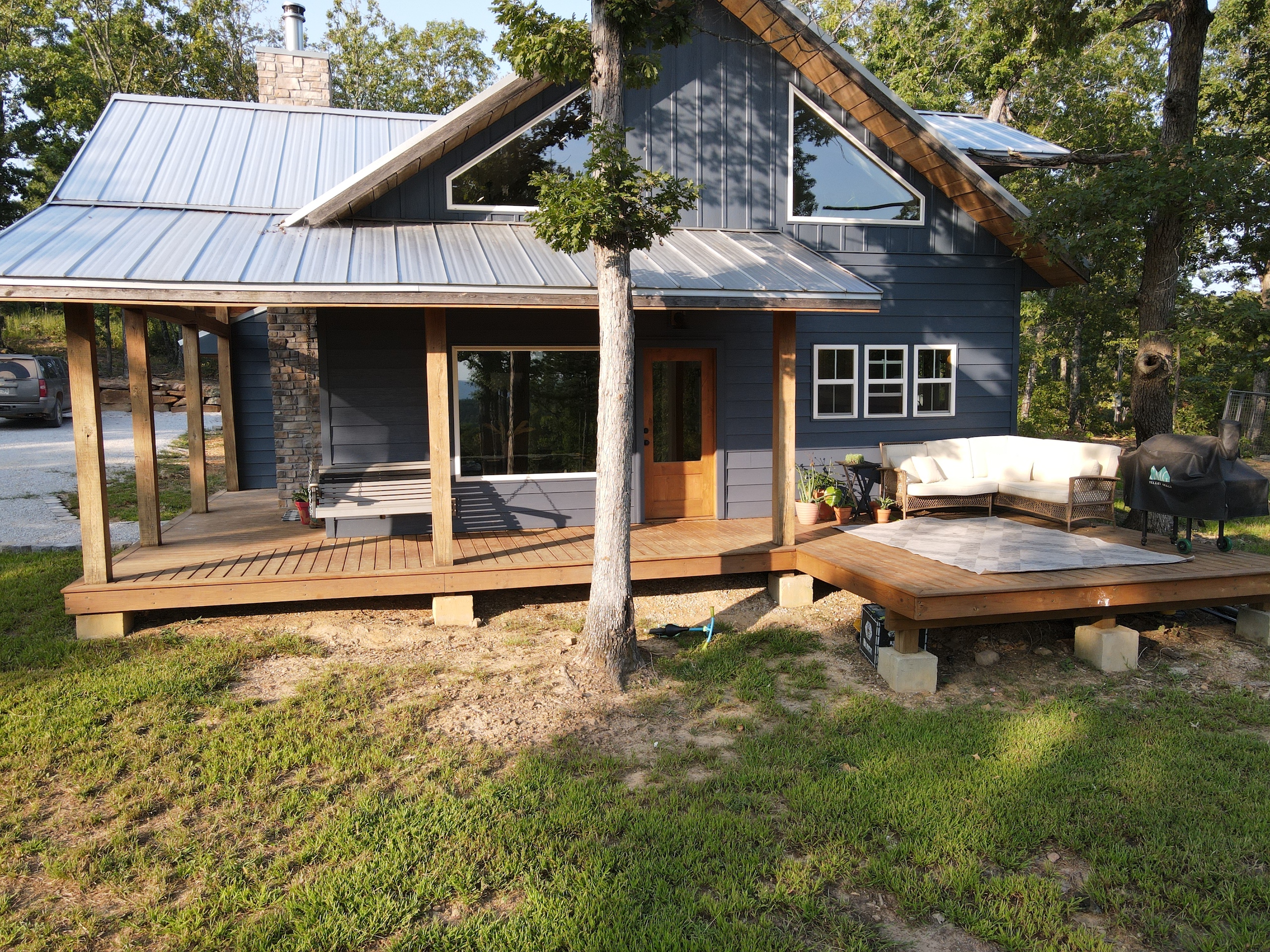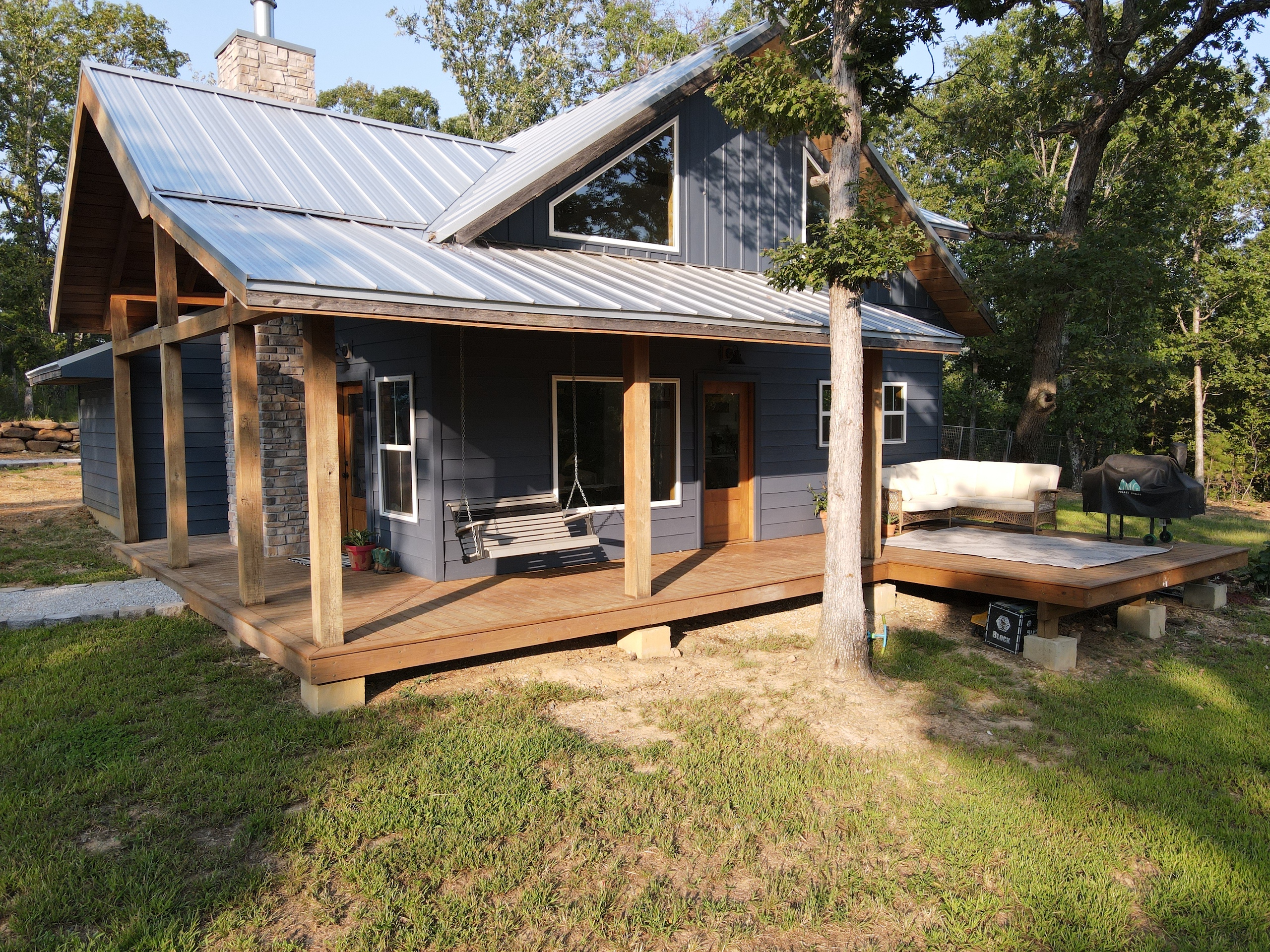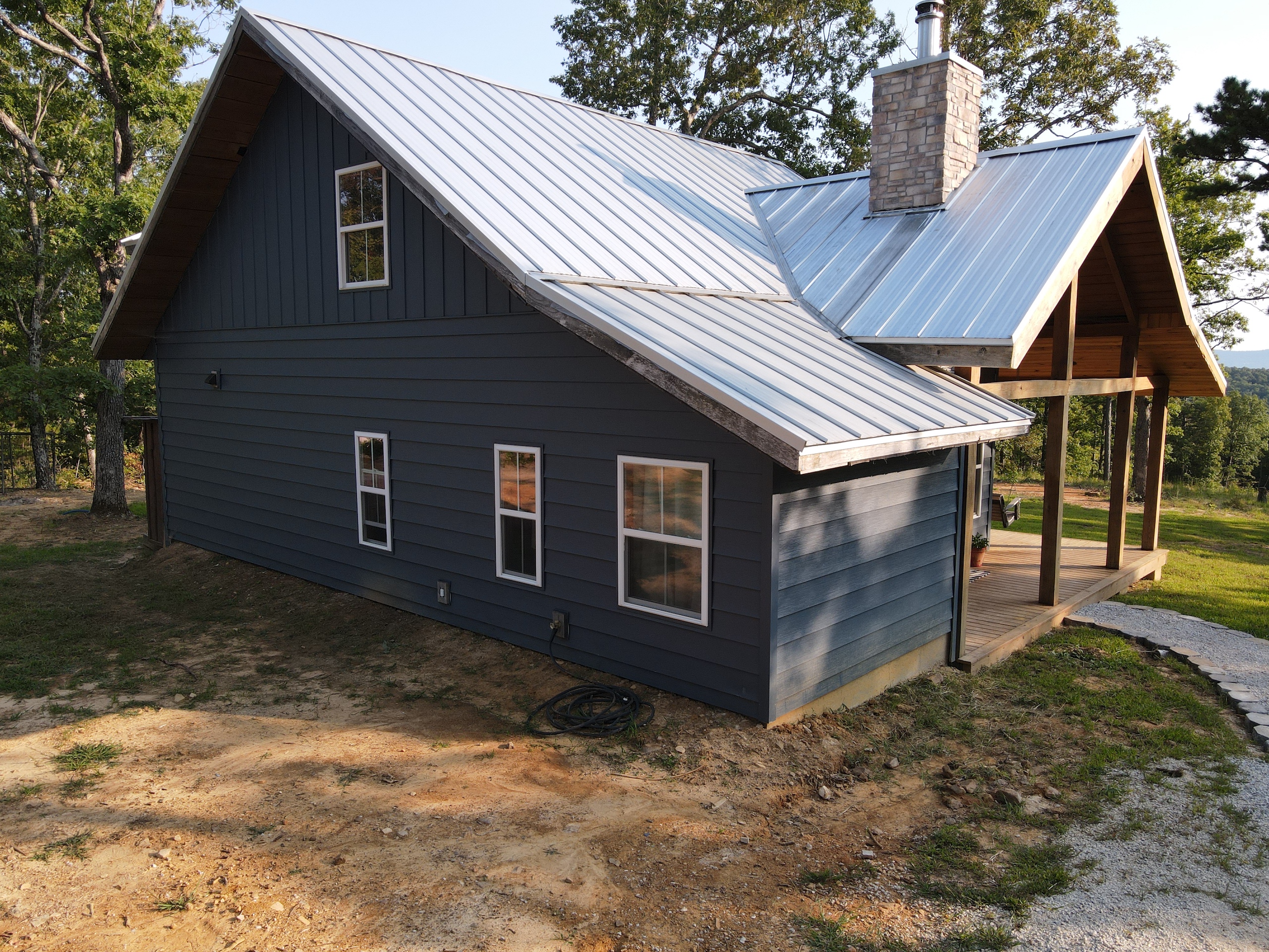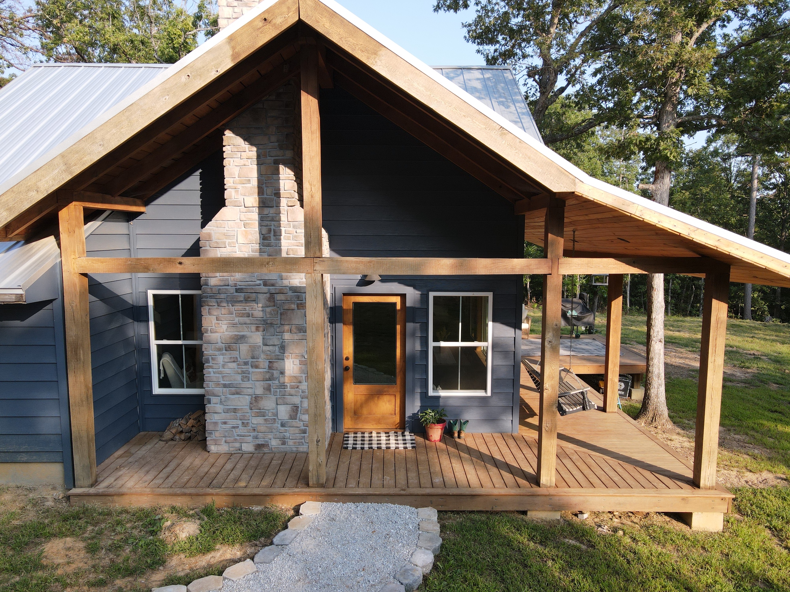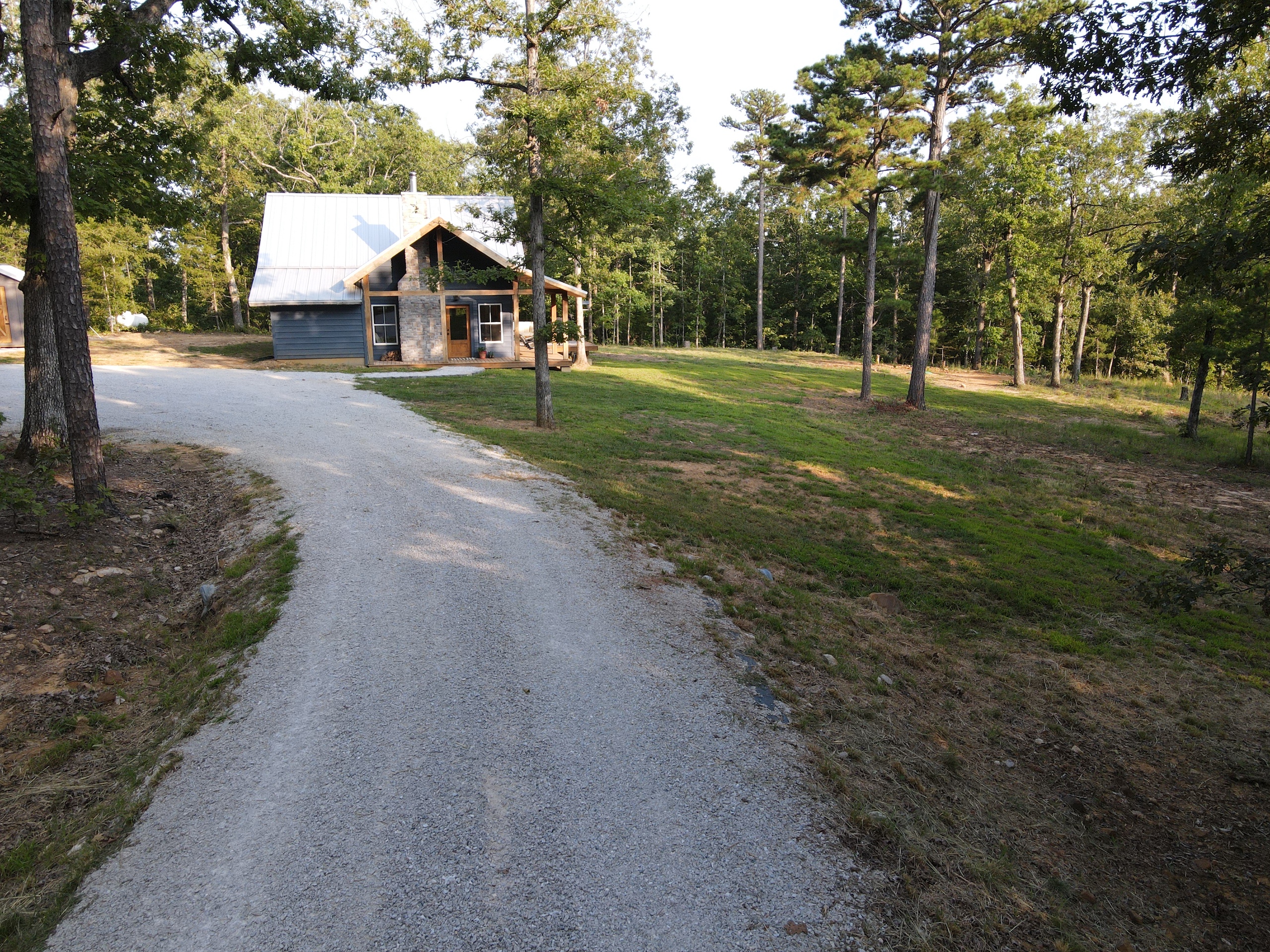 That stunning custom home in the heart of the mountains awaits you. This gem is loaded with character and modern farmhouse charm. Setting in the middle of stunning Ozark Mountain hardwood timber, this home is packed with all the heart and soul that truly makes something special. Located just off the gravel county road, this quaint oasis is at the end of a newly graveled chat drive that meanders amongst the lush white oak and red oak timbers that grace the landscape. Rockwell couldn’t capture the essence of this beautiful place on his best day. The drive ends at the home, complete with rock pavers and a recently built custom massive rock retaining wall. The rolling landscape lends itself to the amazing view that can be seen from the oversized deck, and this mountain view is sure to impress. The land is loaded with hardwoods and wildlife and would be ideal for a hunting getaway or just a pleasure to walk off your front porch and head to your stand to chase the plentiful wildlife that call this tract home. There are opportunities for deer, bear, turkey, and more! The home is entirely wrapped in metal siding and metal roof for years of maintenance and hassle-free enjoyment. The large, covered deck accents the east and south of the house, and a larger setting area compliments the BBQ area for all your entertaining needs. On the porch, you are greeted with Alder wood custom doors, beautiful rustic fixtures, and a towering custom rock fireplace. The great room is topped off with vaulted ceilings, shiplap wall accents, massive picture windows, alder wood trim, and a beautiful wood-burning stove. The dining/living combo flows wonderfully into the roomy kitchen with knotty alder cabinets, beautiful color schemes, custom alder vent hood, large subway tile backsplash, shiplap ceilings, and more. Transitioning into the master bedroom, you’ll find gorgeous, exposed beams, more custom trim work, shiplap accents, and plenty of storage with oversized closets and custom barn doors. The large bathroom on the main level has a tub shower, custom vanity, and dual sinks. The mudroom and laundry room are conveniently located off the back door with the ease of access and boast plenty of cabinetry and a large sink. As you head up the custom staircase, the spacious landing is brilliantly doubling as a small office. Two additional bedrooms and another bathroom top off the ensemble. The tranquil and inviting color scheme and breathtaking vista views will make you never want to leave. As the sun sets and the colors blanket the rolling hills with the cricket chirping and the birds singing, you could be sitting on the deck of your new charming home amongst your private acreage of Ozark heaven, relaxing and enjoying your life like you never thought possible. This beautiful place will bring rest and peace to your soul. Call today for your private showing.