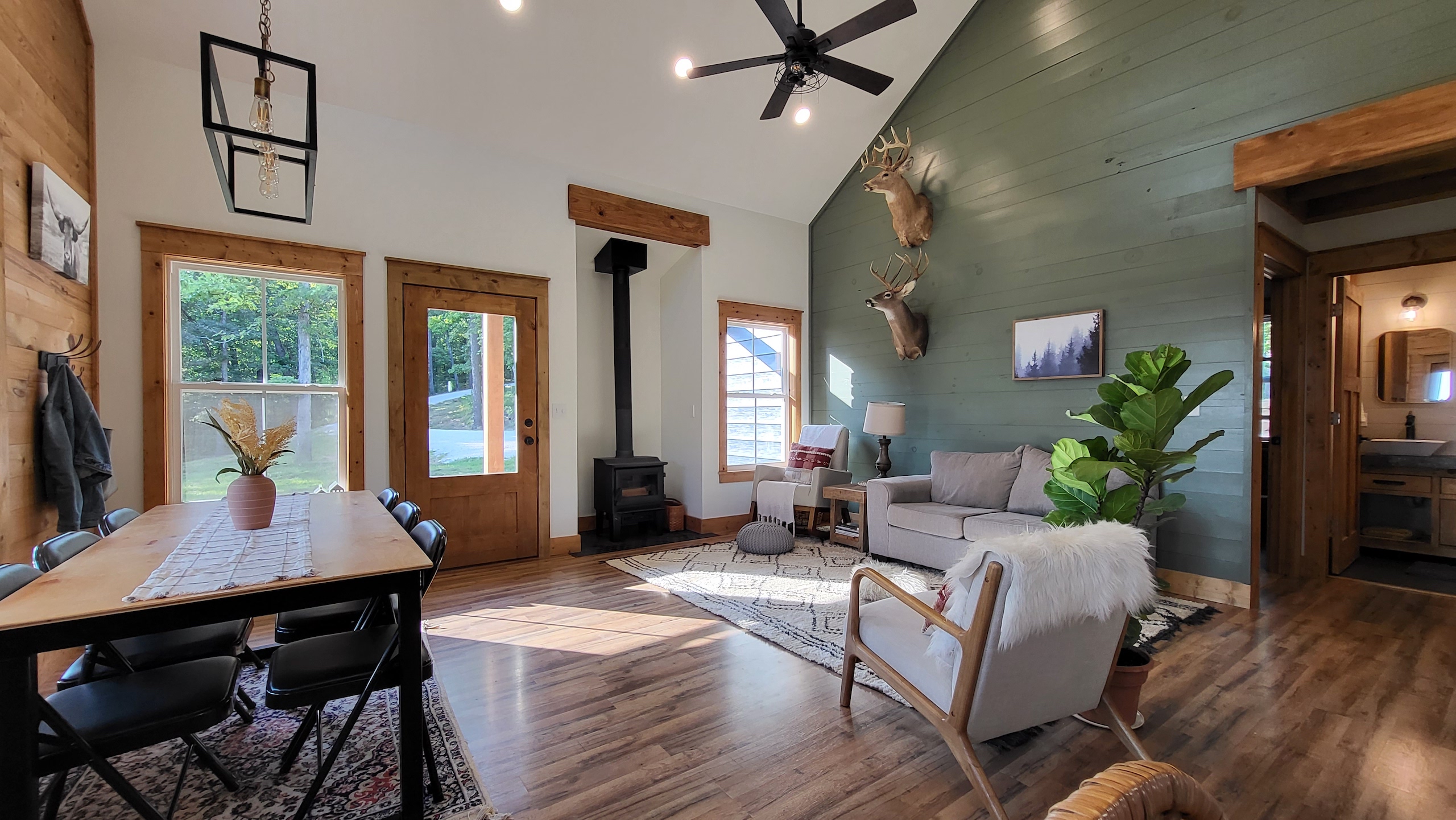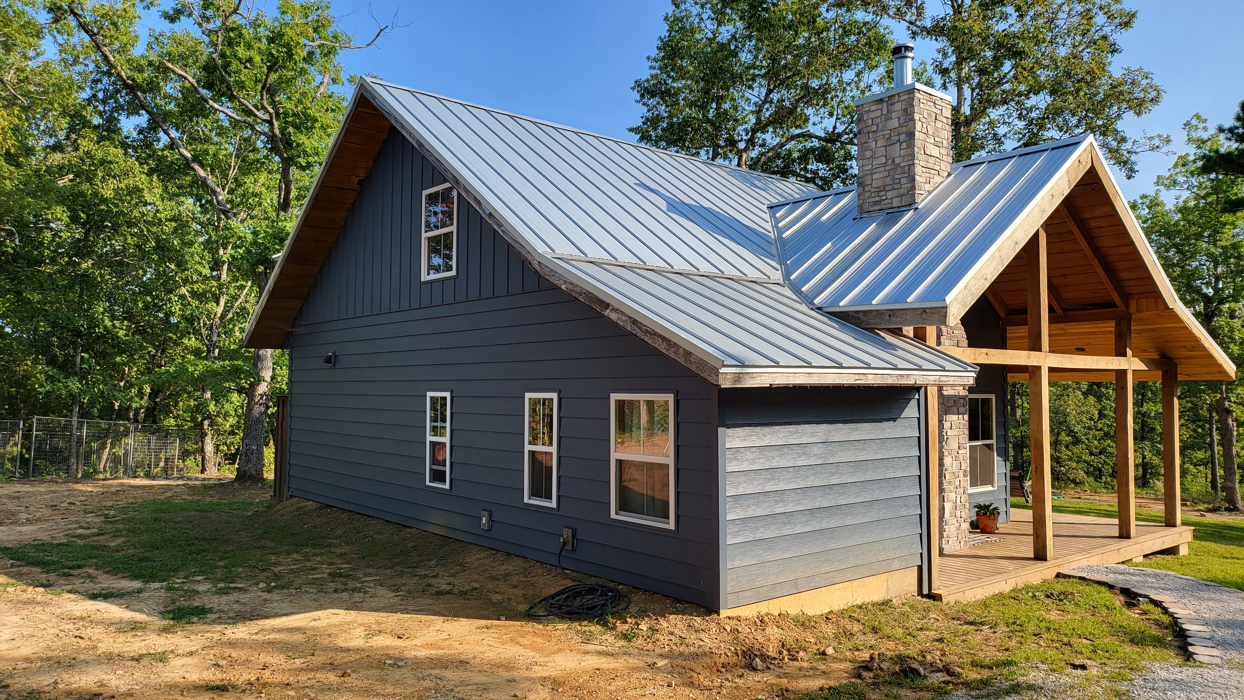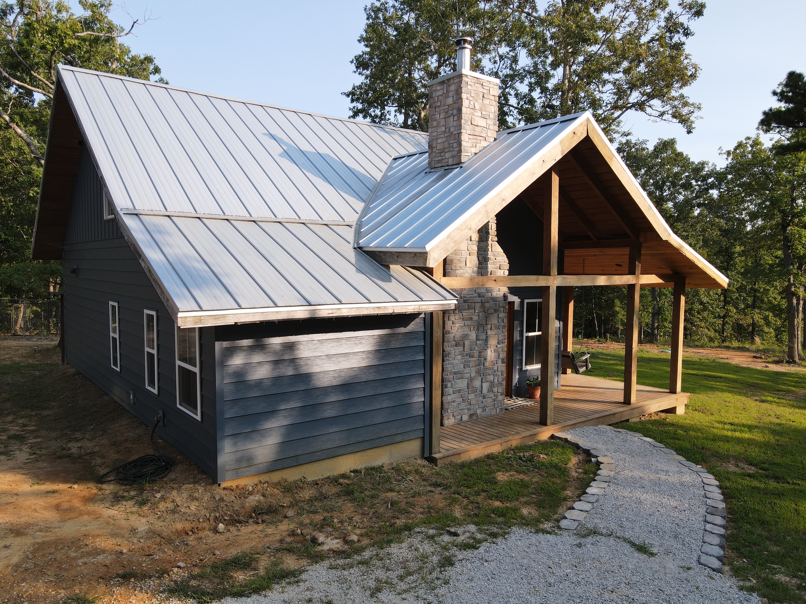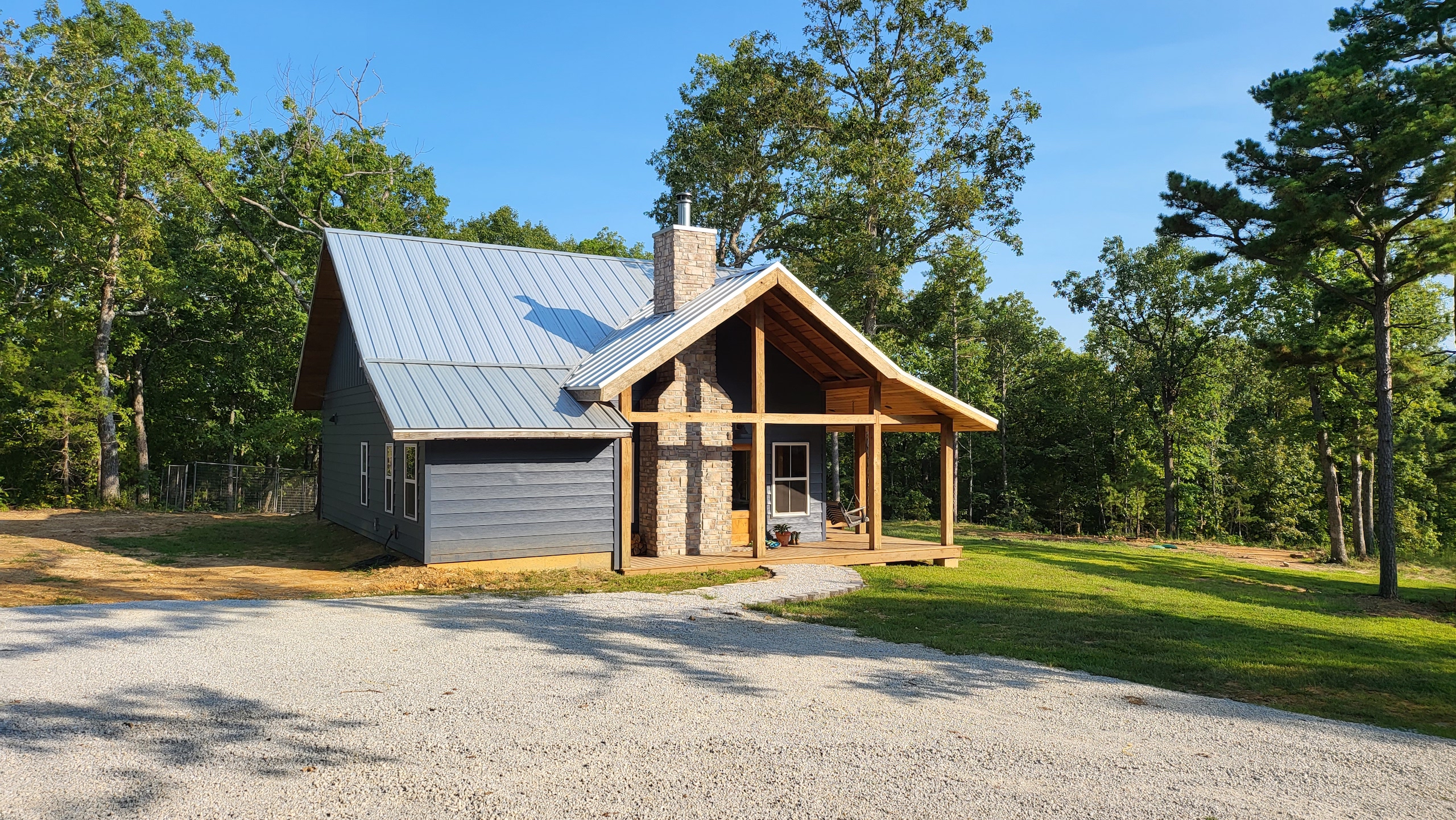 That stunning custom home in the heart of the mountains awaits you. This gem is loaded with character and modern farmhouse charm. Setting in the middle of stunning Ozark Mountain hardwood timber, this home is packed with all the heart and soul that truly makes something special. Located just off the gravel county road, this quaint oasis is at the end of a newly graveled chat drive that meanders amongst the lush white oak and red oak timbers that grace the landscape. Rockwell couldn’t capture the essence of this beautiful place on his best day. The drive ends at the home, complete with rock pavers and a recently built custom massive rock retaining wall. The rolling landscape lends itself to the amazing view that can be seen from the oversized deck, and this mountain view is sure to impress. The land is loaded with hardwoods and wildlife and would be ideal for a hunting getaway or just a pleasure to walk off your front porch and head to your stand to chase the plentiful wildlife that call this tract home. There are opportunities for deer, bear, turkey, and more! The home is entirely wrapped in metal siding and metal roof for years of maintenance and hassle-free enjoyment. The large, covered deck accents the east and south of the house, and a larger setting area compliments the BBQ area for all your entertaining needs. On the porch, you are greeted with Alder wood custom doors, beautiful rustic fixtures, and a towering custom rock fireplace. The great room is topped off with vaulted ceilings, shiplap wall accents, massive picture windows, alder wood trim, and a beautiful wood-burning stove. The dining/living combo flows wonderfully into the roomy kitchen with knotty alder cabinets, beautiful color schemes, custom alder vent hood, large subway tile backsplash, shiplap ceilings, and more. Transitioning into the master bedroom, you’ll find gorgeous, exposed beams, more custom trim work, shiplap accents, and plenty of storage with oversized closets and custom barn doors. The large bathroom on the main level has a tub shower, custom vanity, and dual sinks. The mudroom and laundry room are conveniently located off the back door with the ease of access and boast plenty of cabinetry and a large sink. As you head up the custom staircase, the spacious landing is brilliantly doubling as a small office. Two additional bedrooms and another bathroom top off the ensemble. The tranquil and inviting color scheme and breathtaking vista views will make you never want to leave. As the sun sets and the colors blanket the rolling hills with the cricket chirping and the birds singing, you could be sitting on the deck of your new charming home amongst your private acreage of Ozark heaven, relaxing and enjoying your life like you never thought possible. This beautiful place will bring rest and peace to your soul. Call today for your private showing.