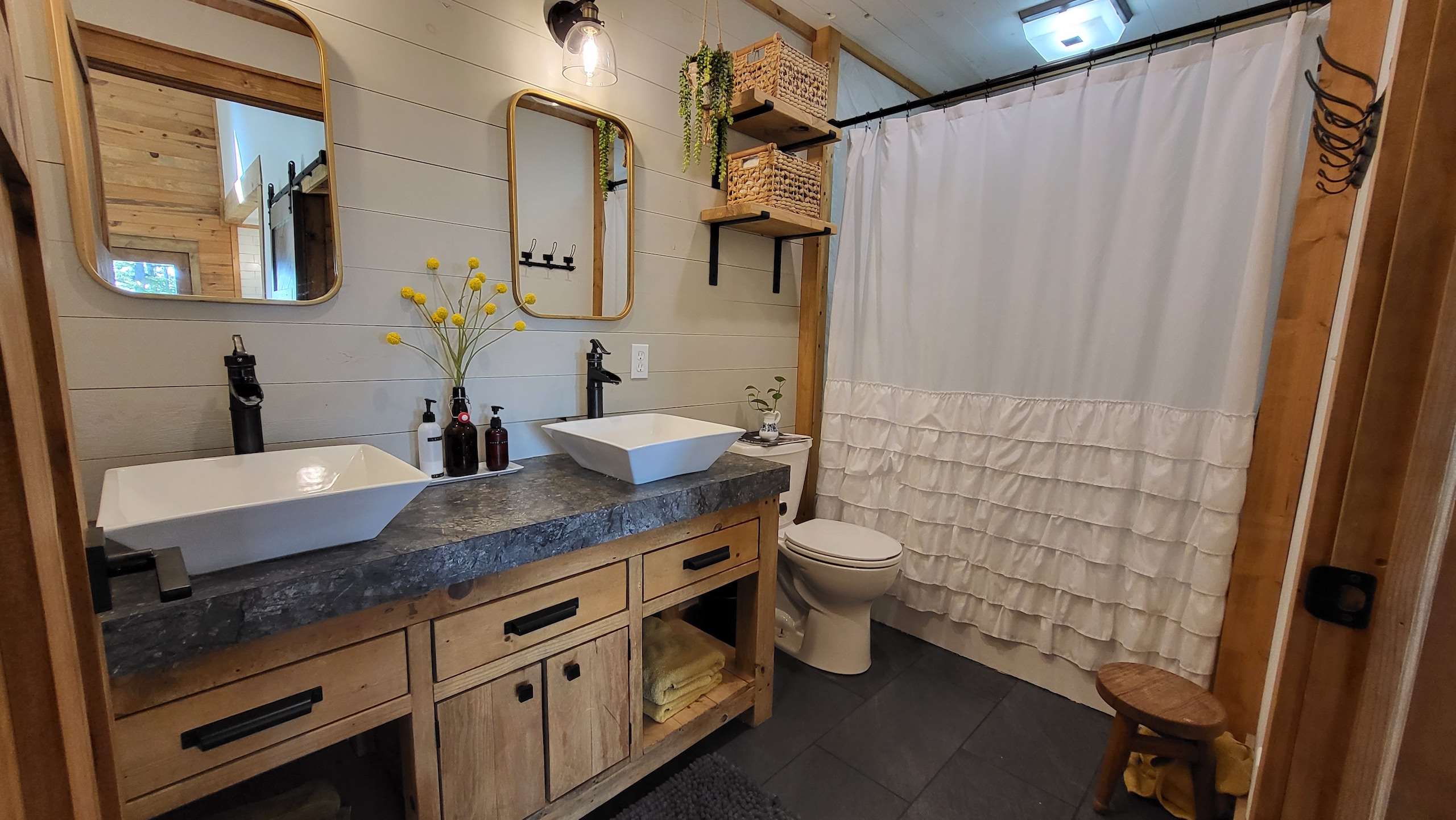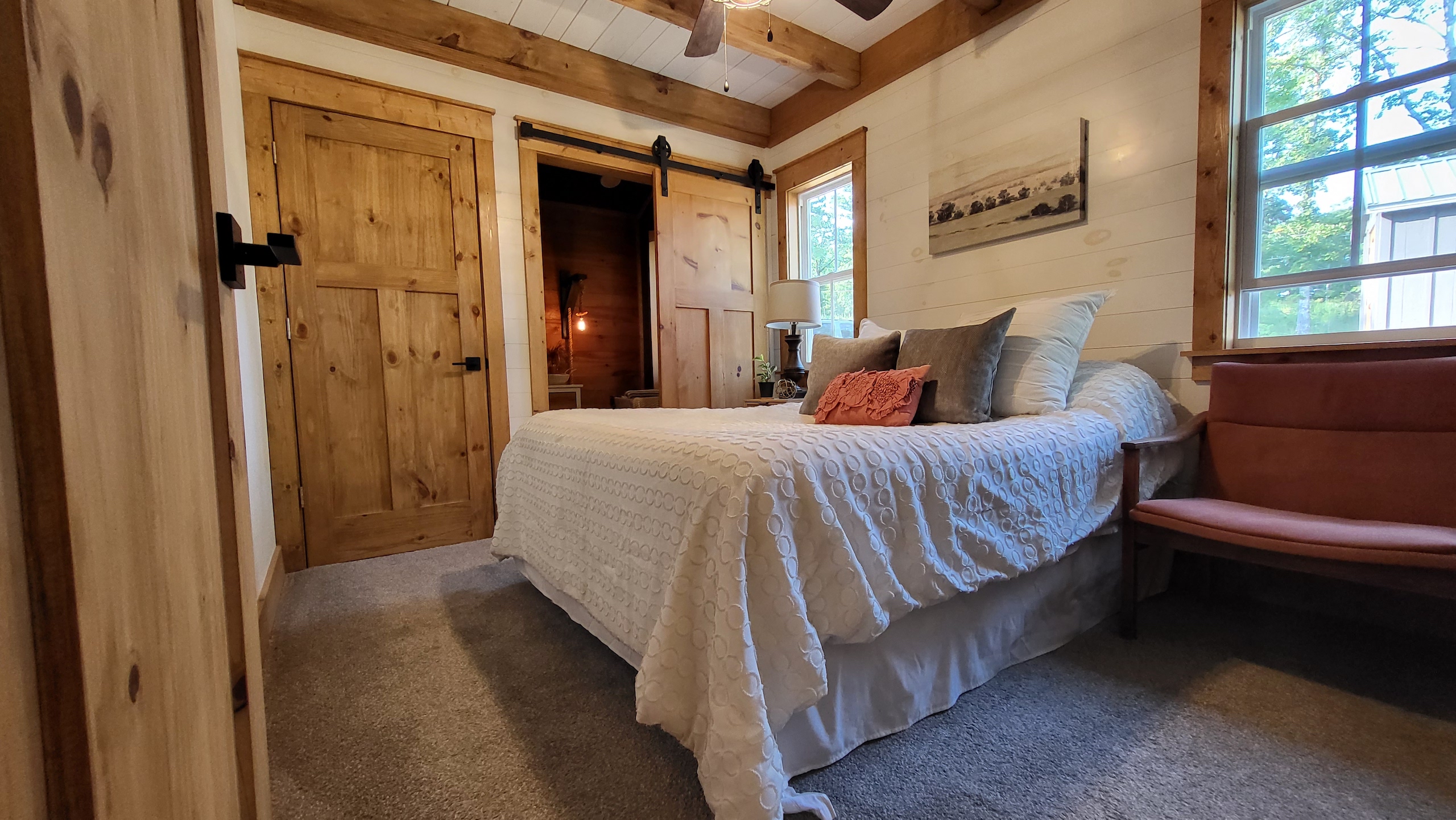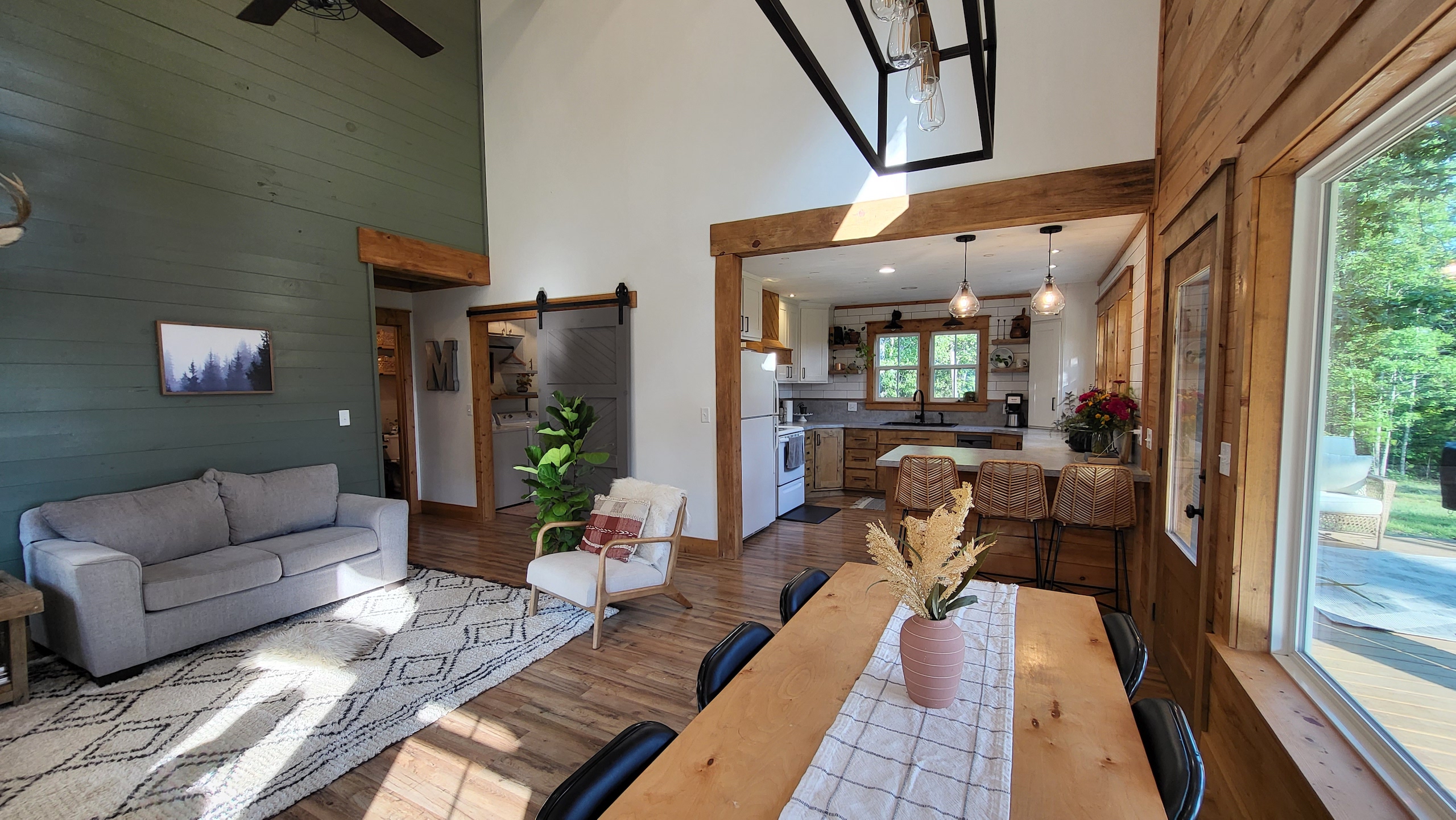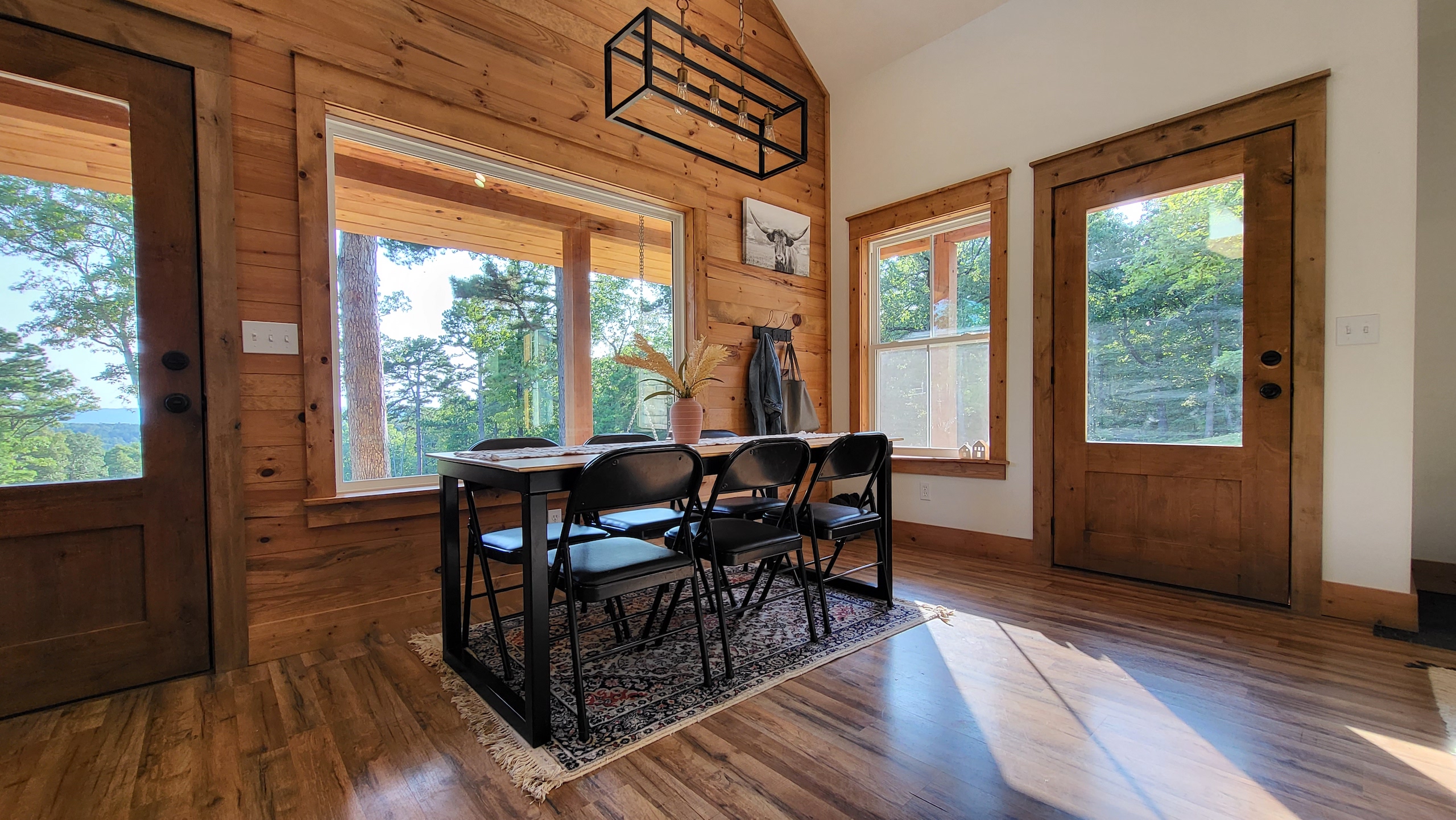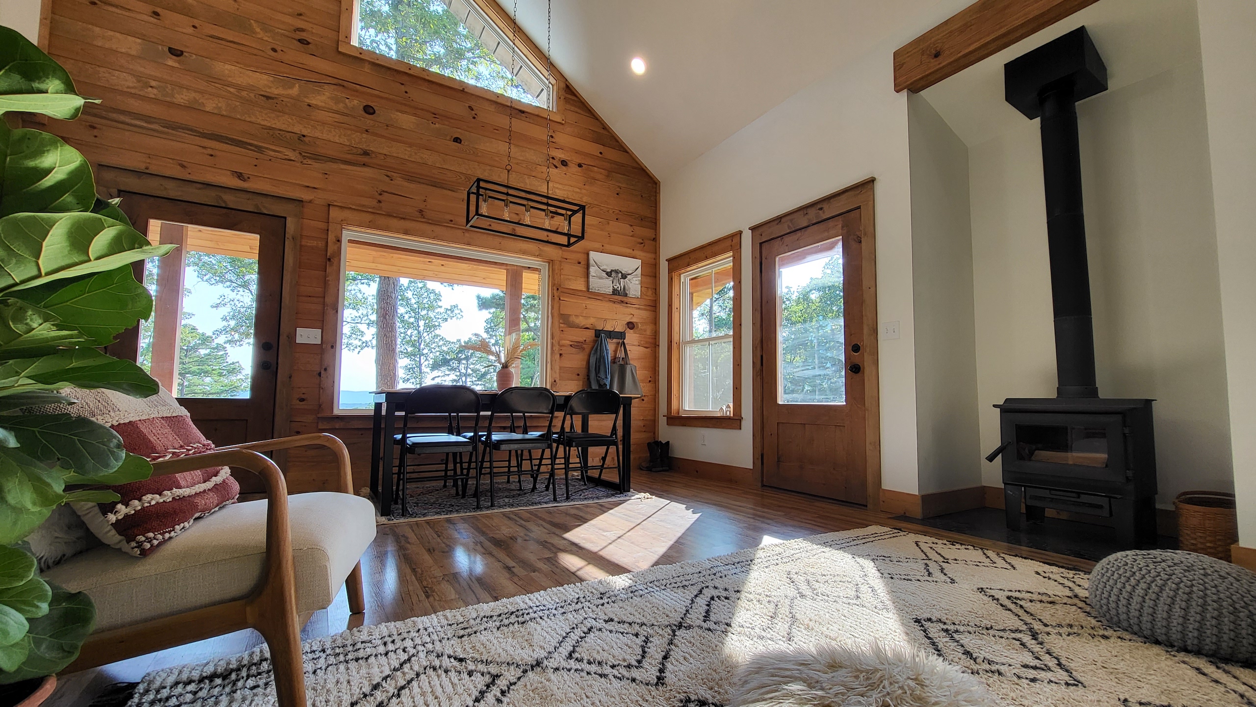 That stunning custom home in the heart of the mountains awaits you. This gem is loaded with character and modern farmhouse charm. Setting in the middle of stunning Ozark Mountain hardwood timber, this home is packed with all the heart and soul that truly makes something special. Located just off the gravel county road, this quaint oasis is at the end of a newly graveled chat drive that meanders amongst the lush white oak and red oak timbers that grace the landscape. Rockwell couldn’t capture the essence of this beautiful place on his best day. The drive ends at the home, complete with rock pavers and a recently built custom massive rock retaining wall. The rolling landscape lends itself to the amazing view that can be seen from the oversized deck, and this mountain view is sure to impress. The land is loaded with hardwoods and wildlife and would be ideal for a hunting getaway or just a pleasure to walk off your front porch and head to your stand to chase the plentiful wildlife that call this tract home. There are opportunities for deer, bear, turkey, and more! The home is entirely wrapped in metal siding and metal roof for years of maintenance and hassle-free enjoyment. The large, covered deck accents the east and south of the house, and a larger setting area compliments the BBQ area for all your entertaining needs. On the porch, you are greeted with Alder wood custom doors, beautiful rustic fixtures, and a towering custom rock fireplace. The great room is topped off with vaulted ceilings, shiplap wall accents, massive picture windows, alder wood trim, and a beautiful wood-burning stove. The dining/living combo flows wonderfully into the roomy kitchen with knotty alder cabinets, beautiful color schemes, custom alder vent hood, large subway tile backsplash, shiplap ceilings, and more. Transitioning into the master bedroom, you’ll find gorgeous, exposed beams, more custom trim work, shiplap accents, and plenty of storage with oversized closets and custom barn doors. The large bathroom on the main level has a tub shower, custom vanity, and dual sinks. The mudroom and laundry room are conveniently located off the back door with the ease of access and boast plenty of cabinetry and a large sink. As you head up the custom staircase, the spacious landing is brilliantly doubling as a small office. Two additional bedrooms and another bathroom top off the ensemble. The tranquil and inviting color scheme and breathtaking vista views will make you never want to leave. As the sun sets and the colors blanket the rolling hills with the cricket chirping and the birds singing, you could be sitting on the deck of your new charming home amongst your private acreage of Ozark heaven, relaxing and enjoying your life like you never thought possible. This beautiful place will bring rest and peace to your soul. Call today for your private showing.
