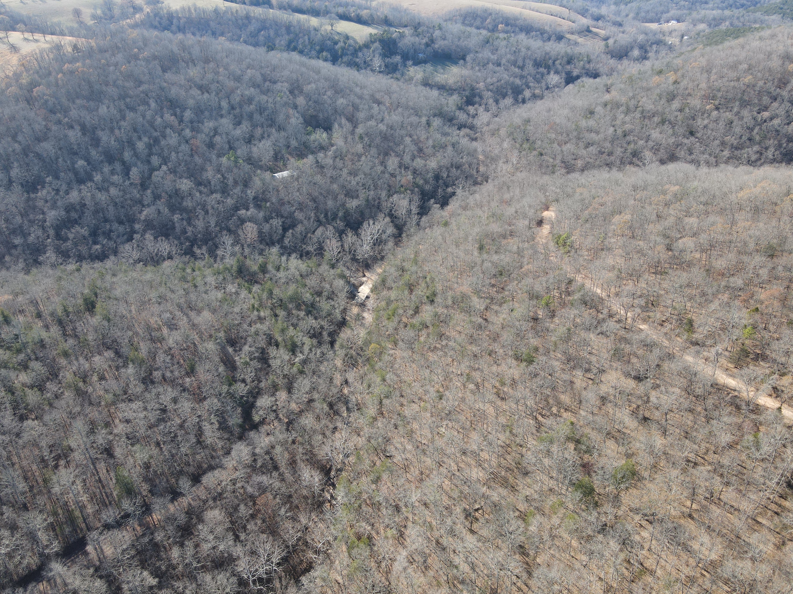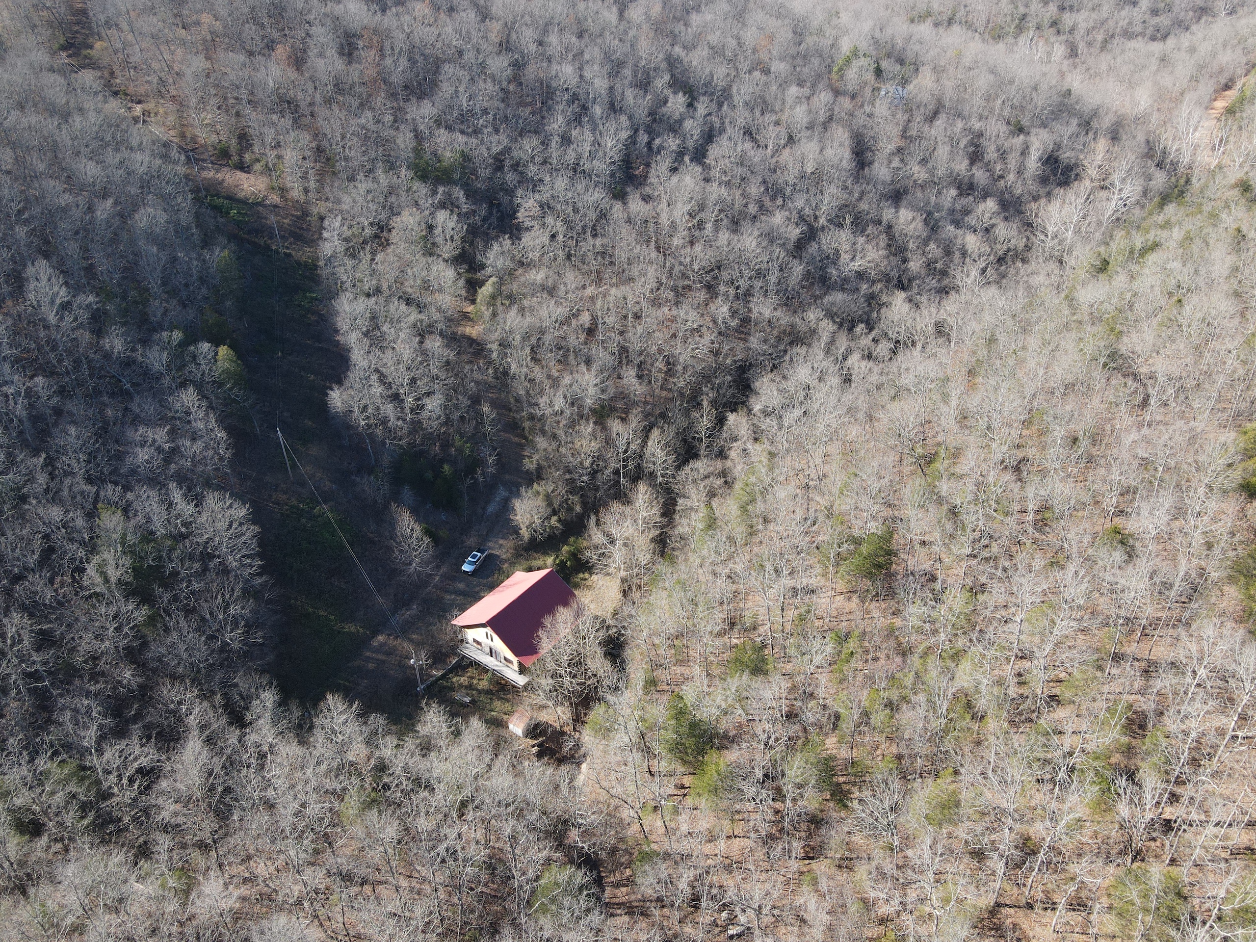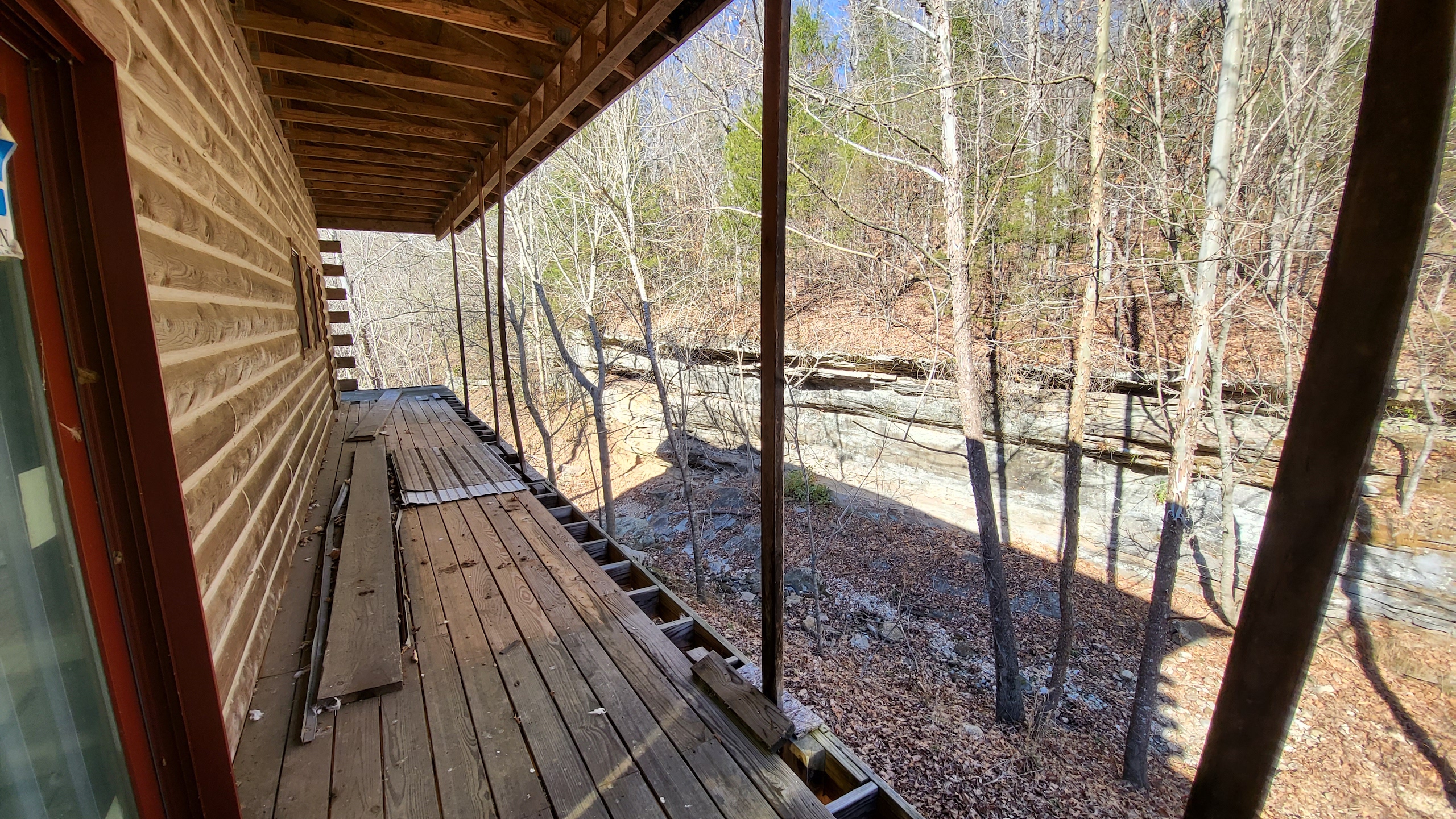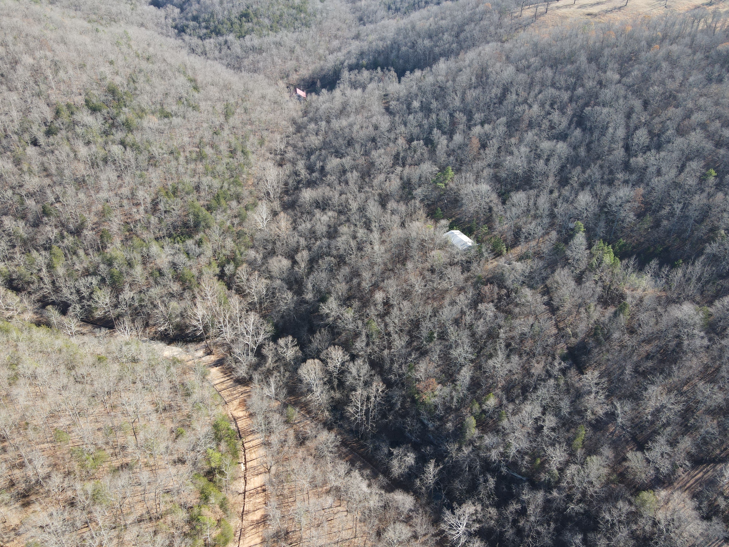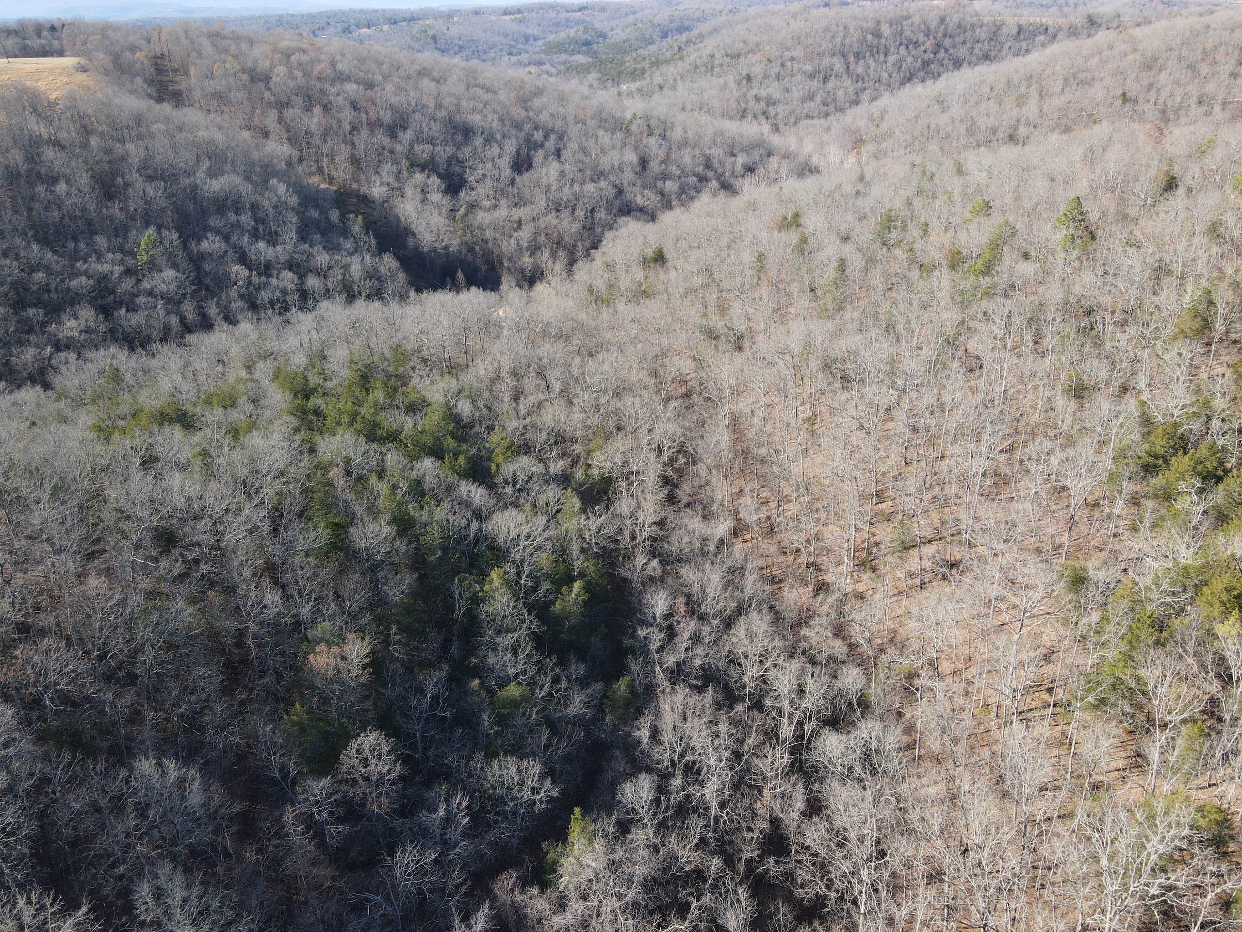 What a find on this unique acreage with loads of possibilities. Tucked in the rolling hills of the heart of the Ozarks sets a truly unique opportunity. This stunning tract presents so many options no matter your interest. For the hunter, this place is absolutely littered with quality buck sign and has a history of excellent hunting with a very healthy deer and turkey population. The rolling hills, steep banks, bluff cuts, saddles, white oak-laden flats, pinch points, and ample water all culminate to create a bow hunter's dream. So many stand locations and topographical advantages await you for fun chasing these big hill country bucks. A massive unfinished log lodge is set along a valley with lush year-round springs pouring right out of the rocks. This beautiful lodge is partially finished with a poured foundation, cedar-lined walls, huge staircase, a partially finished massive wrap-around deck, majestic vaulted ceilings, plenty of windows, and even most of the doors are on. The electric is mostly in place, plumbing has been installed throughout most of the lodge, and the setting is the epitome of "cabin in the woods." The massive specimen overlooks a bluff and overhang along the spring for easy access to crisp, clear Ozark Mountain spring water. With some imagination, sweat equity, and some investment, you can come in and put your own touch on this amazing lodge and make it whatever your heart desires; the possibilities are endless. There is also a newer large metal shop for additional storage. If you have ever wanted a private setting in the Ozarks, this is it. Flowing through the middle of the property is a beautiful year-round creek fed by multiple fresh springs that keep the water clear and cool all year. This creek has tons of character with some excellent settings to sit and enjoy the sounds of the small waterfalls trickling through the rocks as you are surrounded by beautiful hardwood timber and massive bluffs. Another large spring pours right under the overhang on the bluffs and feeds the creek—minnows, crawdads, frogs, and other water wildlife call this little creek home. Most of the bluff line towers over 50' tall and is accessible from either the top or the valley below. The rock features, outcroppings, and caves add to this place's world-class character. With this much terrain and quality access, you could let your imagination run wild and develop this special place. Cabins could be popped up just about anywhere, and the rental income could be impressive with this highly desirable location. Three county roads come together on the property and make for easy access virtually anywhere. Located just minutes from the Hasty public access on the Buffalo National River, this is an awesome opportunity for any outdoor enthusiast. Ample activities, including camping, hiking, fishing, canoeing, mountain biking, kayaking, and more, are all at your fingertips. Tracts with this rare amount of diversity and options just don't come along often. You can't afford to pass this one up.