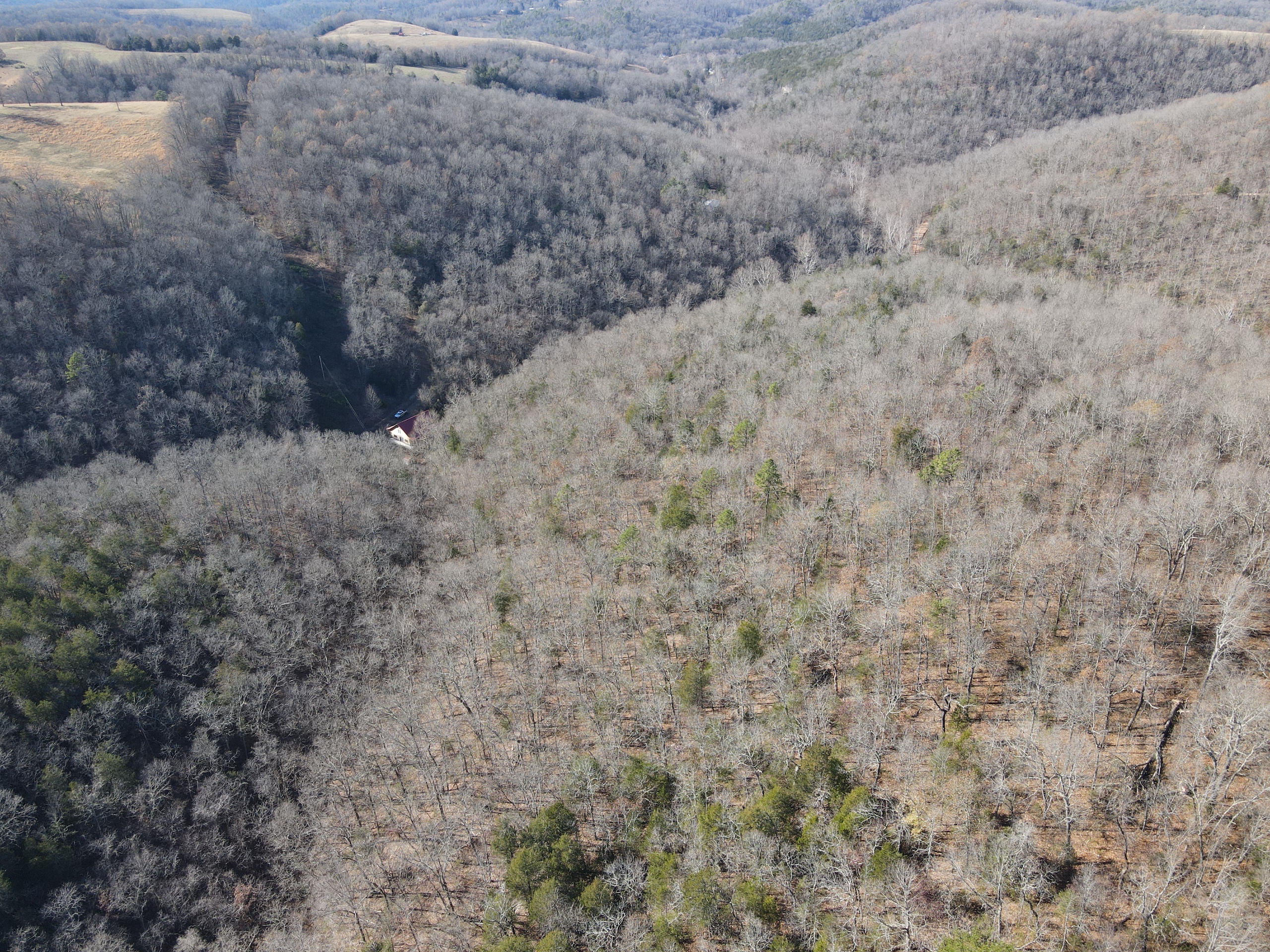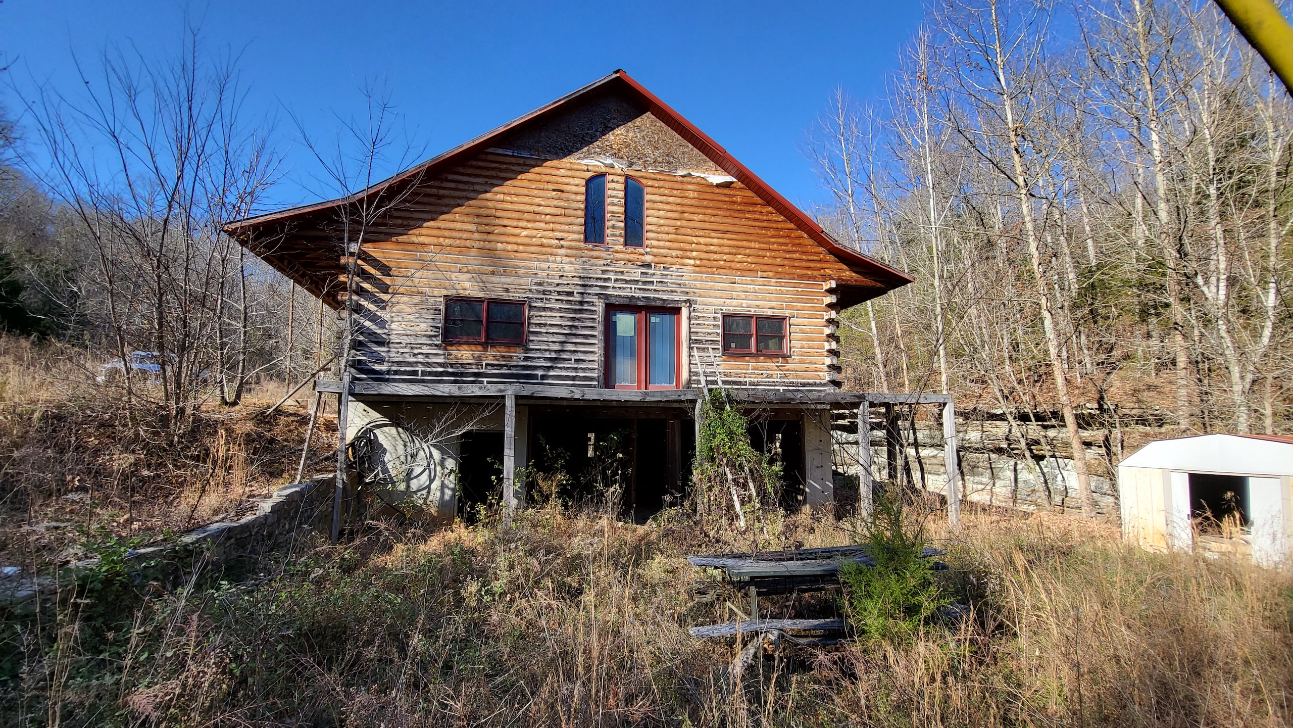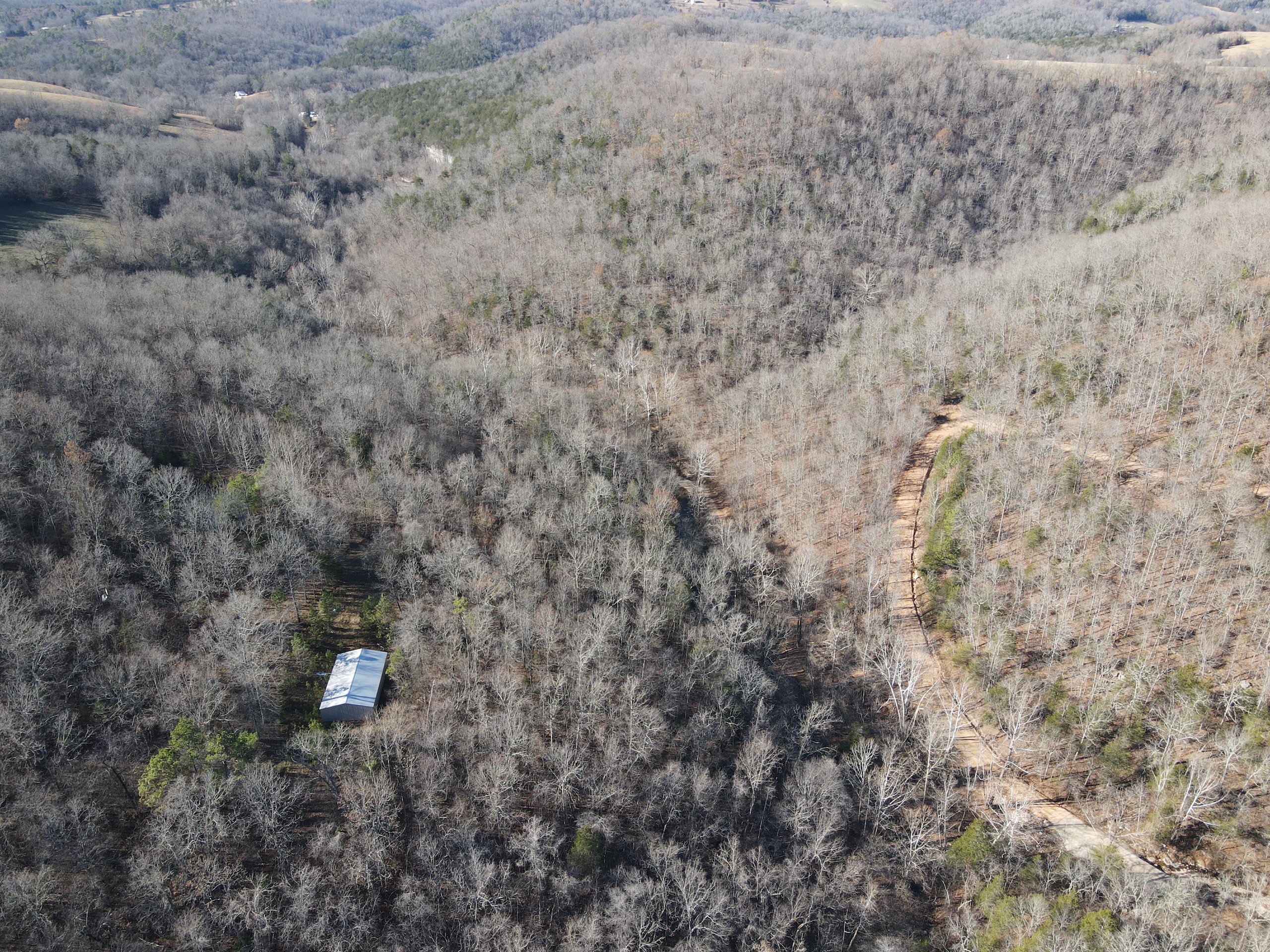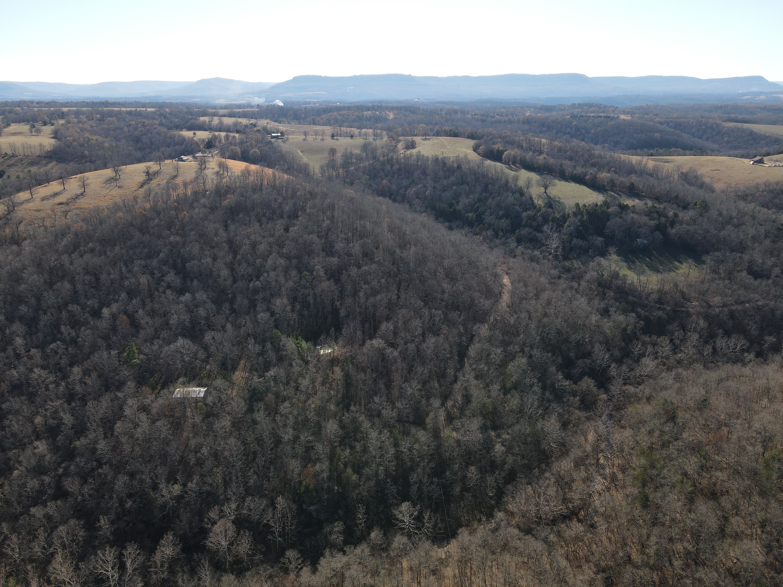 What a find on this unique acreage with loads of possibilities. Tucked in the rolling hills of the heart of the Ozarks sets a truly unique opportunity. This stunning tract presents so many options no matter your interest. For the hunter, this place is absolutely littered with quality buck sign and has a history of excellent hunting with a very healthy deer and turkey population. The rolling hills, steep banks, bluff cuts, saddles, white oak-laden flats, pinch points, and ample water all culminate to create a bow hunter's dream. So many stand locations and topographical advantages await you for fun chasing these big hill country bucks. A massive unfinished log lodge is set along a valley with lush year-round springs pouring right out of the rocks. This beautiful lodge is partially finished with a poured foundation, cedar-lined walls, huge staircase, a partially finished massive wrap-around deck, majestic vaulted ceilings, plenty of windows, and even most of the doors are on. The electric is mostly in place, plumbing has been installed throughout most of the lodge, and the setting is the epitome of "cabin in the woods." The massive specimen overlooks a bluff and overhang along the spring for easy access to crisp, clear Ozark Mountain spring water. With some imagination, sweat equity, and some investment, you can come in and put your own touch on this amazing lodge and make it whatever your heart desires; the possibilities are endless. There is also a newer large metal shop for additional storage. If you have ever wanted a private setting in the Ozarks, this is it. Flowing through the middle of the property is a beautiful year-round creek fed by multiple fresh springs that keep the water clear and cool all year. This creek has tons of character with some excellent settings to sit and enjoy the sounds of the small waterfalls trickling through the rocks as you are surrounded by beautiful hardwood timber and massive bluffs. Another large spring pours right under the overhang on the bluffs and feeds the creek—minnows, crawdads, frogs, and other water wildlife call this little creek home. Most of the bluff line towers over 50' tall and is accessible from either the top or the valley below. The rock features, outcroppings, and caves add to this place's world-class character. With this much terrain and quality access, you could let your imagination run wild and develop this special place. Cabins could be popped up just about anywhere, and the rental income could be impressive with this highly desirable location. Three county roads come together on the property and make for easy access virtually anywhere. Located just minutes from the Hasty public access on the Buffalo National River, this is an awesome opportunity for any outdoor enthusiast. Ample activities, including camping, hiking, fishing, canoeing, mountain biking, kayaking, and more, are all at your fingertips. Tracts with this rare amount of diversity and options just don't come along often. You can't afford to pass this one up.