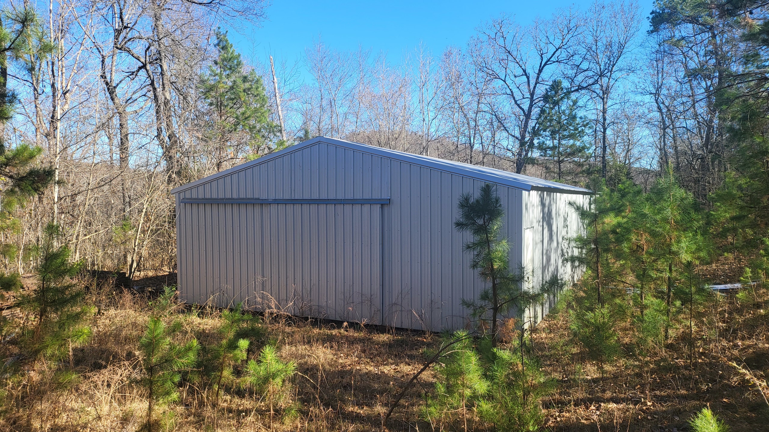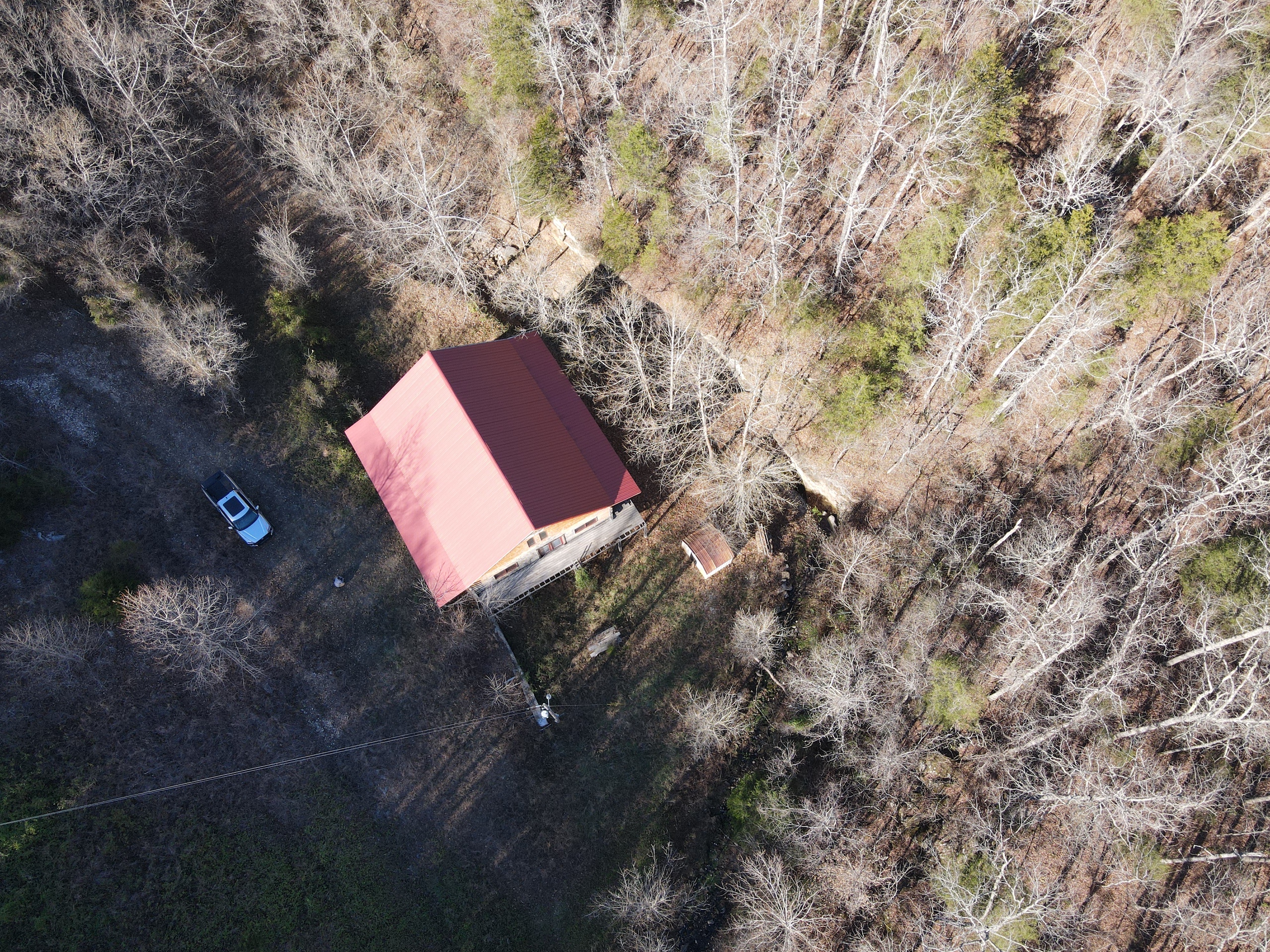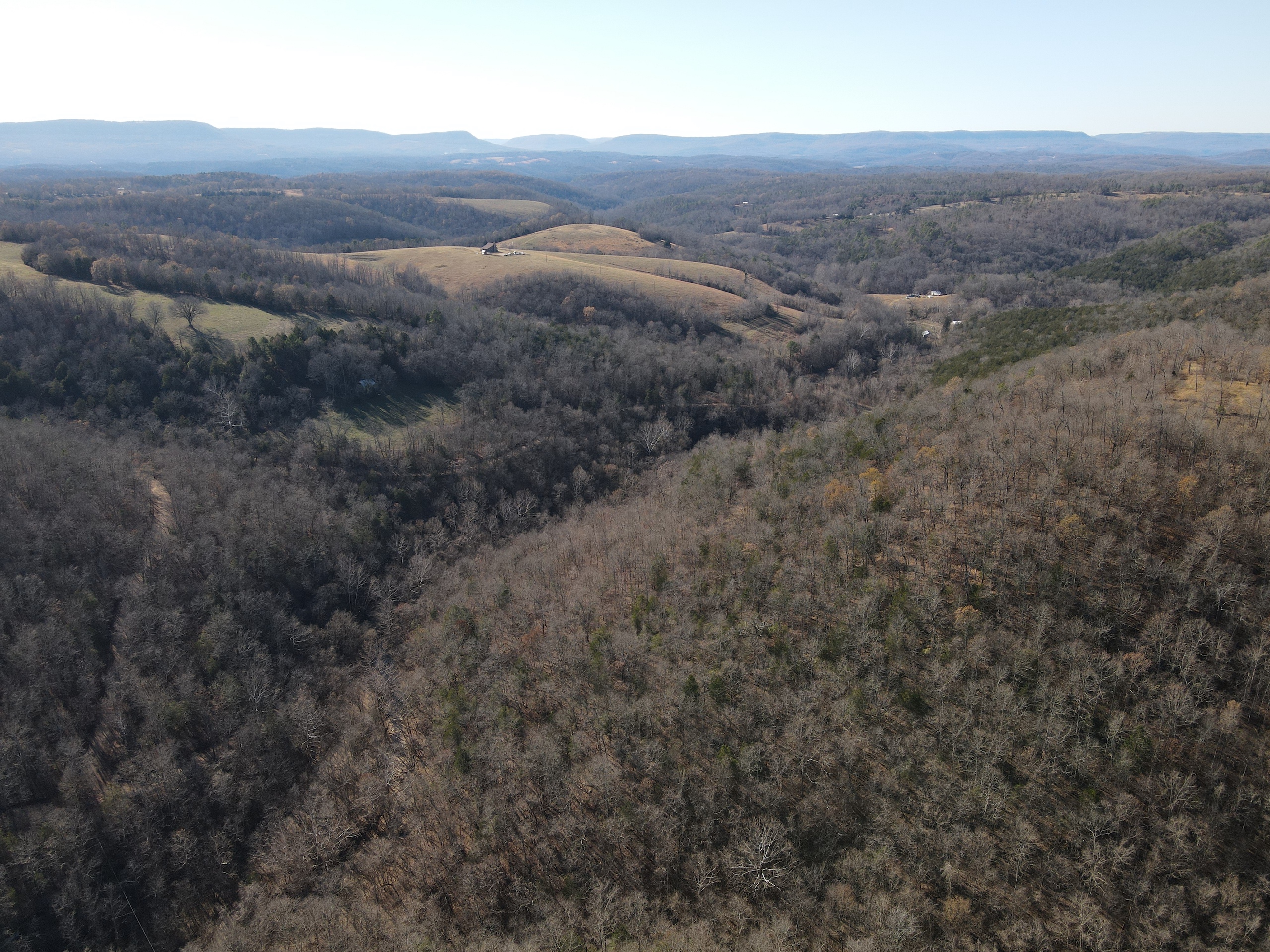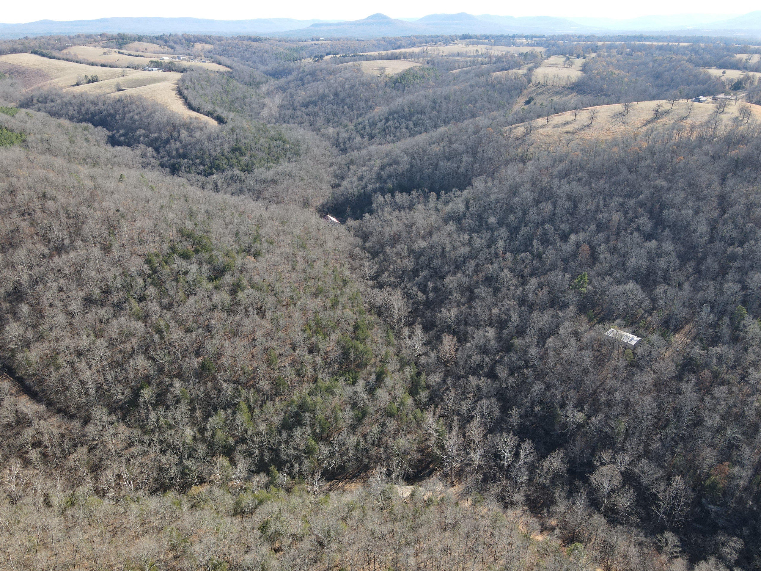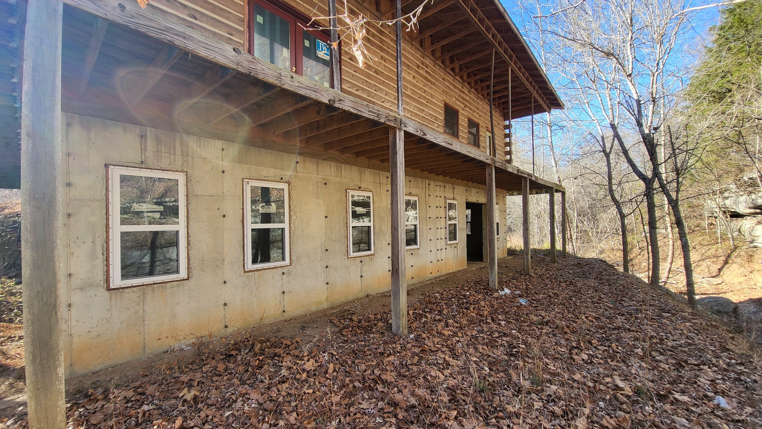What a find on this unique acreage with loads of possibilities. Tucked in the rolling hills of the heart of the Ozarks sets a truly unique opportunity. This stunning tract presents so many options no matter your interest. For the hunter, this place is absolutely littered with quality buck sign and has a history of excellent hunting with a very healthy deer and turkey population. The rolling hills, steep banks, bluff cuts, saddles, white oak-laden flats, pinch points, and ample water all culminate to create a bow hunter's dream. So many stand locations and topographical advantages await you for fun chasing these big hill country bucks. A massive unfinished log lodge is set along a valley with lush year-round springs pouring right out of the rocks. This beautiful lodge is partially finished with a poured foundation, cedar-lined walls, huge staircase, a partially finished massive wrap-around deck, majestic vaulted ceilings, plenty of windows, and even most of the doors are on. The electric is mostly in place, plumbing has been installed throughout most of the lodge, and the setting is the epitome of "cabin in the woods." The massive specimen overlooks a bluff and overhang along the spring for easy access to crisp, clear Ozark Mountain spring water. With some imagination, sweat equity, and some investment, you can come in and put your own touch on this amazing lodge and make it whatever your heart desires; the possibilities are endless. There is also a newer large metal shop for additional storage. If you have ever wanted a private setting in the Ozarks, this is it. Flowing through the middle of the property is a beautiful year-round creek fed by multiple fresh springs that keep the water clear and cool all year. This creek has tons of character with some excellent settings to sit and enjoy the sounds of the small waterfalls trickling through the rocks as you are surrounded by beautiful hardwood timber and massive bluffs. Another large spring pours right under the overhang on the bluffs and feeds the creek—minnows, crawdads, frogs, and other water wildlife call this little creek home. Most of the bluff line towers over 50' tall and is accessible from either the top or the valley below. The rock features, outcroppings, and caves add to this place's world-class character. With this much terrain and quality access, you could let your imagination run wild and develop this special place. Cabins could be popped up just about anywhere, and the rental income could be impressive with this highly desirable location. Three county roads come together on the property and make for easy access virtually anywhere. Located just minutes from the Hasty public access on the Buffalo National River, this is an awesome opportunity for any outdoor enthusiast. Ample activities, including camping, hiking, fishing, canoeing, mountain biking, kayaking, and more, are all at your fingertips. Tracts with this rare amount of diversity and options just don't come along often. You can't afford to pass this one up.