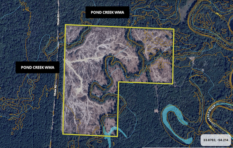 The property supports populations of whitetail deer, wild turkey, and feral hogs, making it suitable for multiple types of hunting. Its location adjoining Pond Creek Wildlife Management Area further enhances its value for recreational use, as it provides direct access to thousands of additional acres of managed land. This proximity opens opportunities for extended hunting and wildlife experiences while maintaining the benefit of private ownership.