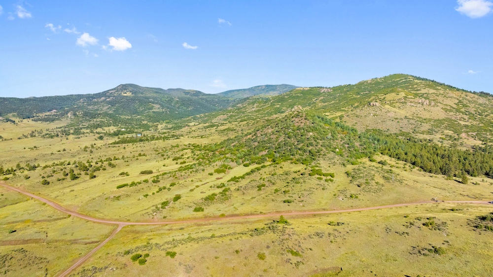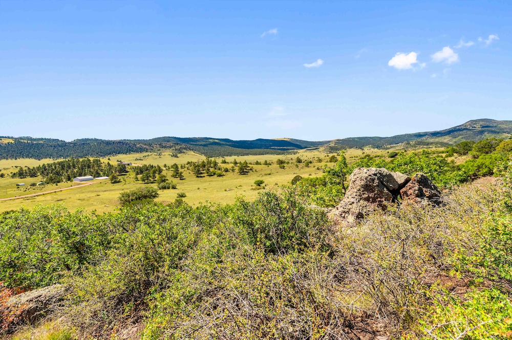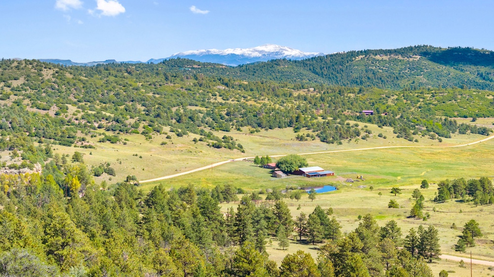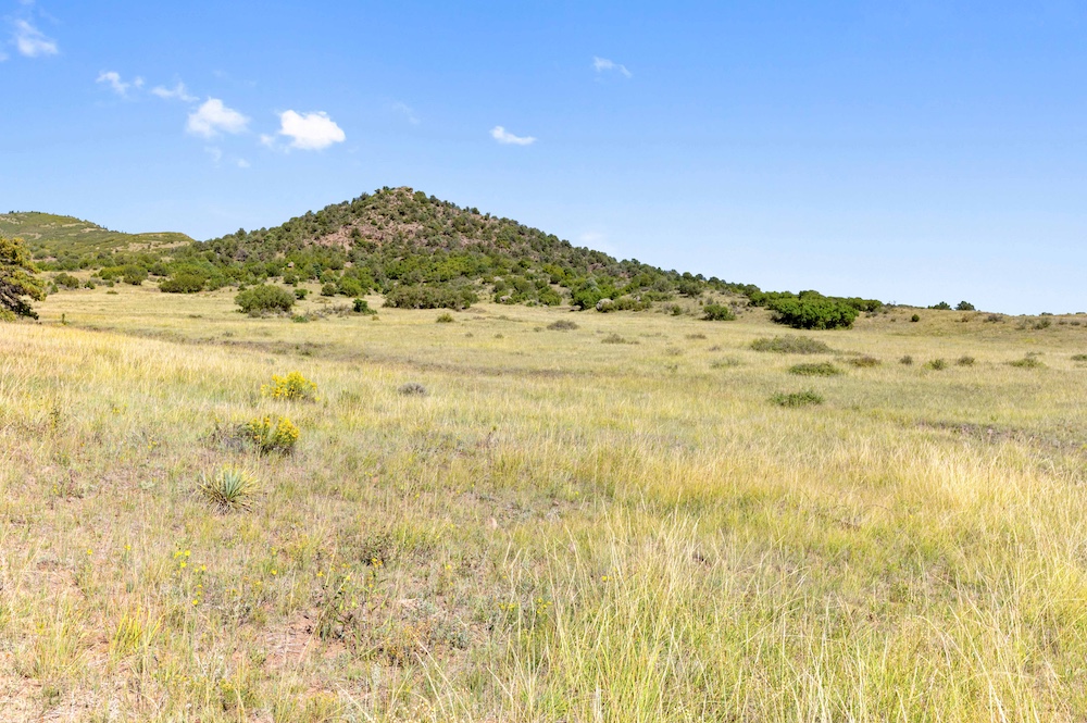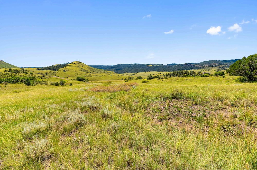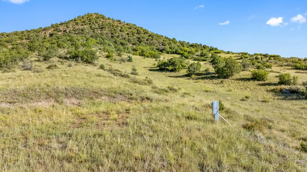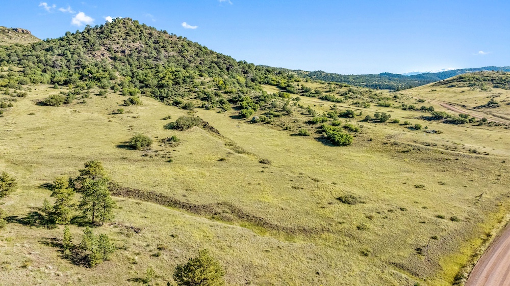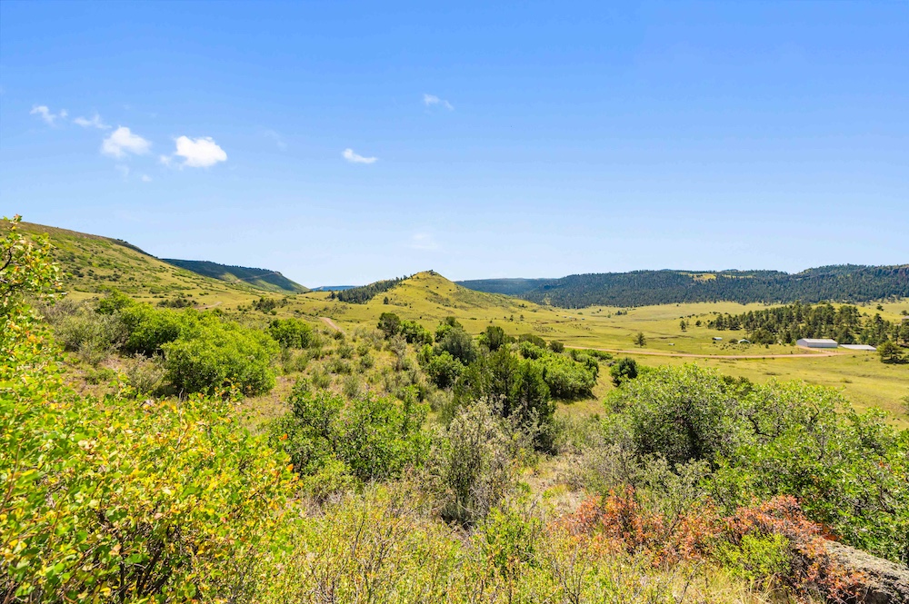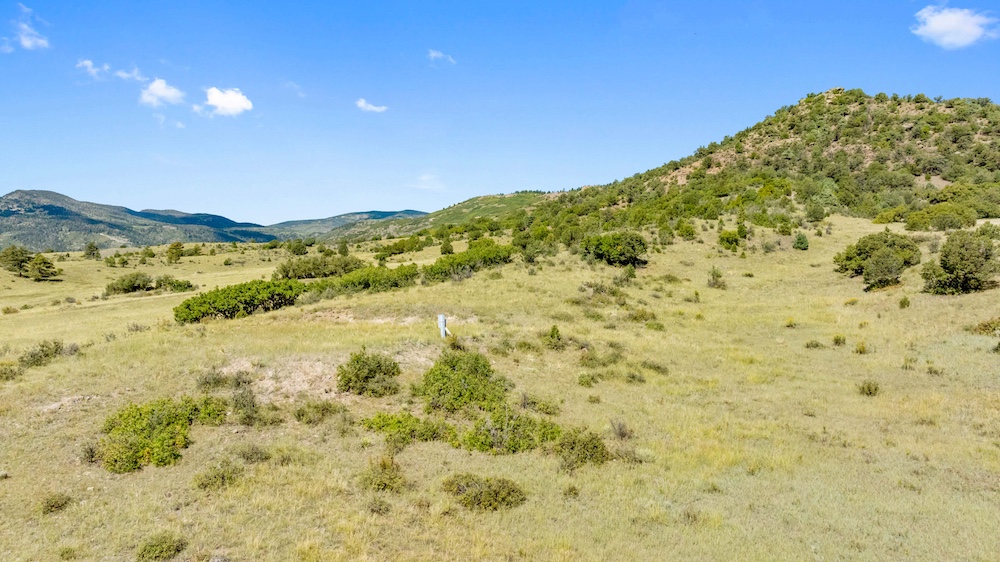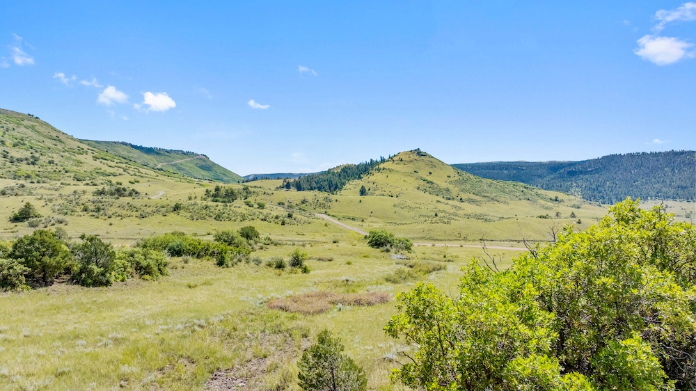 The land features notable elevation changes, ranging from open grassy meadows to rocky ridges and a tall peak with long-range mountain views. This combination of terrain creates both scenic value and diverse habitat for wildlife. The area supports healthy populations of elk, mule deer, antelope, bear, turkey, and other game species. It falls within Colorado Game Management Unit 58, which is recognized for opportunities to hunt big game and small game alike. Wildlife is frequently observed moving across the property, benefiting from the meadows and timbered ridges as feeding and bedding areas.