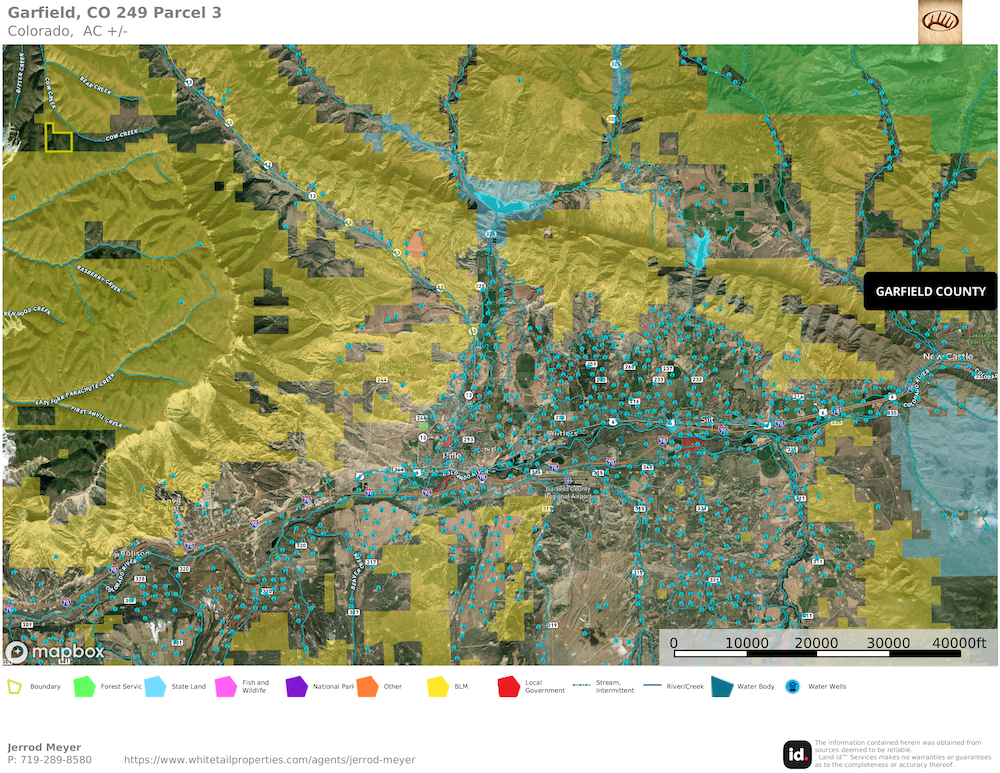 Local towns including Rifle (approximately 45 minutes) and Meeker (around one hour) provide grocery stores, dining, lodging, and fuel. Larger commercial airports in Grand Junction and Eagle County are each within about two hours of the property, allowing convenient access to and from the region.