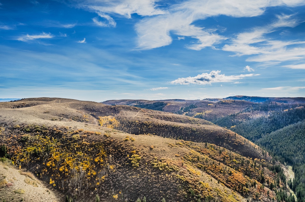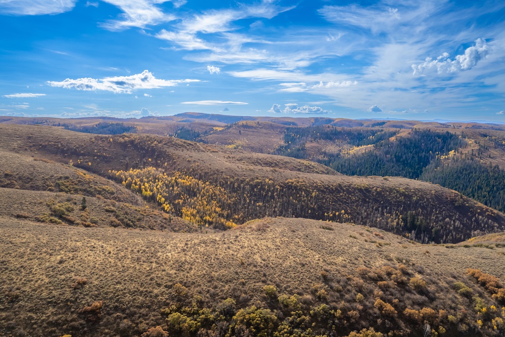 Arrow Rim Ranch includes mineral rights, with no conservation easement, allowing flexibility for future land use or management decisions. The setting offers a true sense of Colorado’s mountain character—rolling oak hillsides, stands of pine and aspen, and quiet meadows that open to expansive views of surrounding ridges and valleys.
