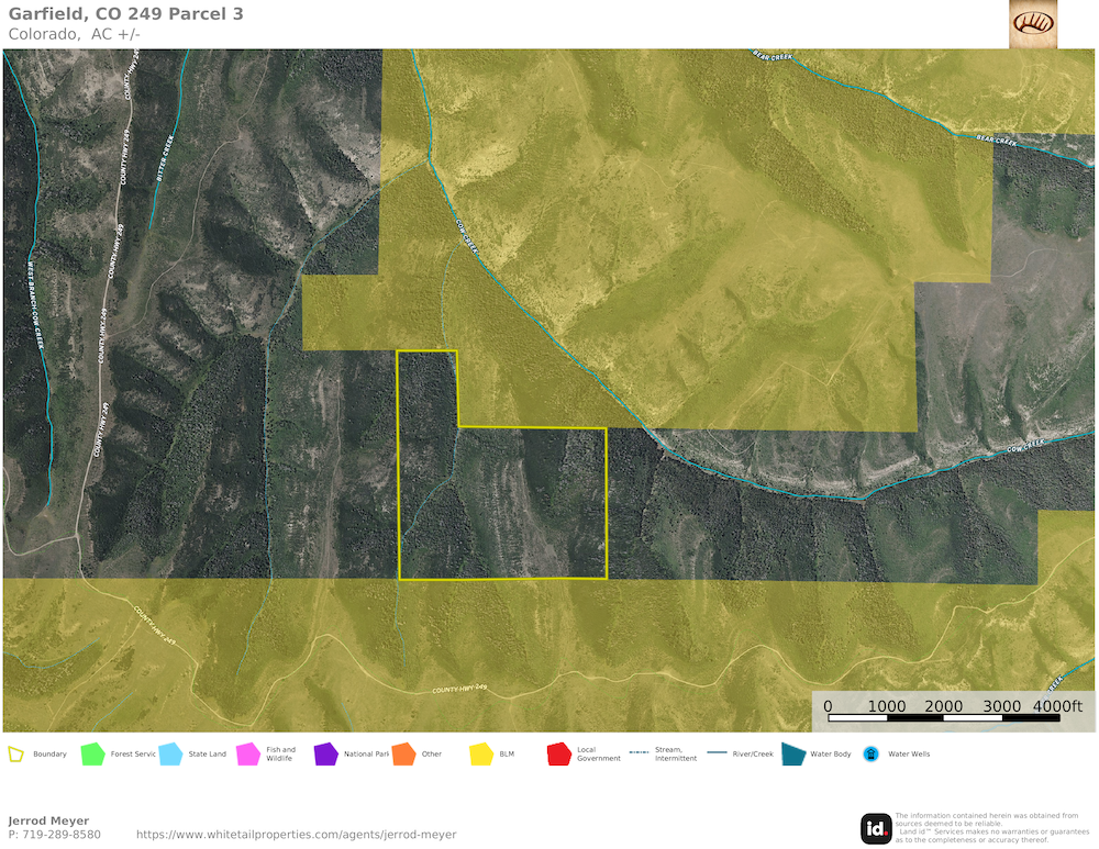 Access is available via County Road 249, with additional entry points through adjoining BLM lands. The terrain lends itself to hiking, horseback riding, ATV use, camping, and general outdoor enjoyment. The variety of timbered cover, open ground, and natural water influence from nearby creeks makes the property equally suitable for hunting and non-consumptive recreation like wildlife photography and exploring.