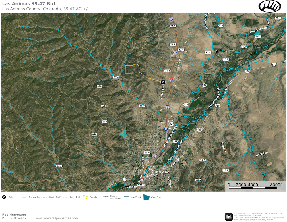 Large, remote, off-grid lot available in secluded Rancho Verde, just outside of Trinidad, CO. This sprawling acreage offers fantastic options for building, camping, recreation, hunting, and more. Mixed habitat and varied terrain offer a multitude of adventures just minutes from downtown Trinidad. Beautiful views of Fisher’s Peak and privacy, combined with private gated access, make this lot an excellent option for your enjoyment. The property has an improved access road across the upper ridge with several locations for camping or building. No covenants or restrictions ensure flexibility in your use of the property. No owner financing is available. Access via a private, locked gate on Rancho Verde Rd; 4WD and/or high-clearance recommended.