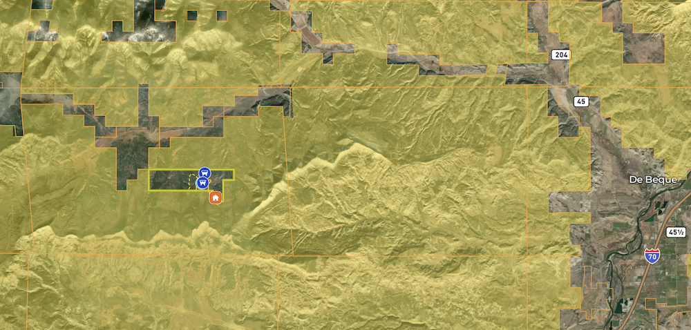 Fantastic secluded hunting opportunity in the heart of GMU #31, completely surrounded by hundreds of thousands of acres of BLM! Located 7.5 miles down BLM trails from the nearest county road, this large and diverse ranch offers unmatched privacy and recreation potential. The terrain varies dramatically, with deep canyons, ridges, grassy meadows, wooded thickets, and brush flats that provide excellent habitat for elk, mule deer, turkey, and more. On the property, improvements have been added to enhance both wildlife and hunter use. Several water catches and man-made water holes attract and hold game throughout the year. Multiple blinds are already set up, providing ready-made hunting locations. An older trapper’s cabin could be restored for primitive use, while a cleared site on the southeast corner is ideal for camping or building your own off-grid cabin. Adding to the turn-key appeal, a four-season camper is included in the sale, offering immediate comfort and use during hunts or recreation. Seasonal seeps and springs can be found across the land, with a historic spring once developed for use. Early-season archery elk hunts here can be exceptional thanks to thick cover of pinon, juniper, sage, and oak brush—ideal conditions for calling rutting bulls into bow range. The property also acts as a barrier to much of the surrounding BLM, creating added seclusion and hunting opportunity. Just minutes from De Beque and I-70, the trail in is in good condition, but 4WD/ATV/UTV is recommended. Off-grid living means no utilities are available, but the rugged seclusion is exactly what makes this property a true Colorado hunting getaway.