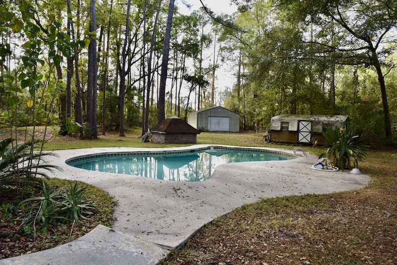 This sizeable acreage property in Duval County offers a unique combination of a home, land, and natural features near Jacksonville. The main residence is a 3-bedroom, 2-bathroom brick home built in 1987, with approximately 3,200 square feet under roof and about 2,600 square feet of heated and cooled space. The living space is open with high ceilings, and a wood-burning fireplace provides a cozy focal point. A 200-square-foot Florida room overlooks the backyard and pool, offering a pleasant view of the grounds. The property extends beyond the house. It sits on one of the larger privately owned parcels in the area, giving significant acreage for family use, recreation, or — depending on planning and zoning approvals - potential for additional homesites or development. A continuously flowing creek runs the entire length of the tract, offering a natural feature that enhances privacy and ambiance. Mature large oak trees and longleaf pines form a buffer between this property and surrounding developments, contributing to a secluded feel despite the property's proximity to urban infrastructure. Access to the property is very convenient. It lies less than a mile from I-295 and approximately one mile from I-10, offering quick access to downtown Jacksonville and major regional destinations. The driveway is a winding asphalt millings driveway that leads through the property and connects to the main road, providing a private drive to the home and outbuildings. On-site, there is also a 24-by-30-foot metal building that can serve as a storage, workshop, or utility building, depending on the owner's needs. Outdoor amenities include a private pool and the natural creek frontage, along with ample open land shaded by mature trees. The house’s layout and amenities make it suitable as a comfortable residence, while the generous acreage offers opportunities for outdoor recreation, gardening, estate-style living, or subdivision - if allowed by future planning and zoning. Its location places the property within the Duval County school system, with schools close by. Meanwhile, shopping, restaurants, and urban conveniences are just around the corner, and downtown Jacksonville is only minutes away. This listing combines a substantial residence with wide open acreage and a mix of natural and developed amenities. The creek, wooded buffer, and open land provide a sense of privacy and potential, while the house, pool, driveway, and storage building supply ready-to-use infrastructure. For buyers seeking acreage near Jacksonville with living space, land, natural features, and flexibility for future use, this property offers a noteworthy opportunity.