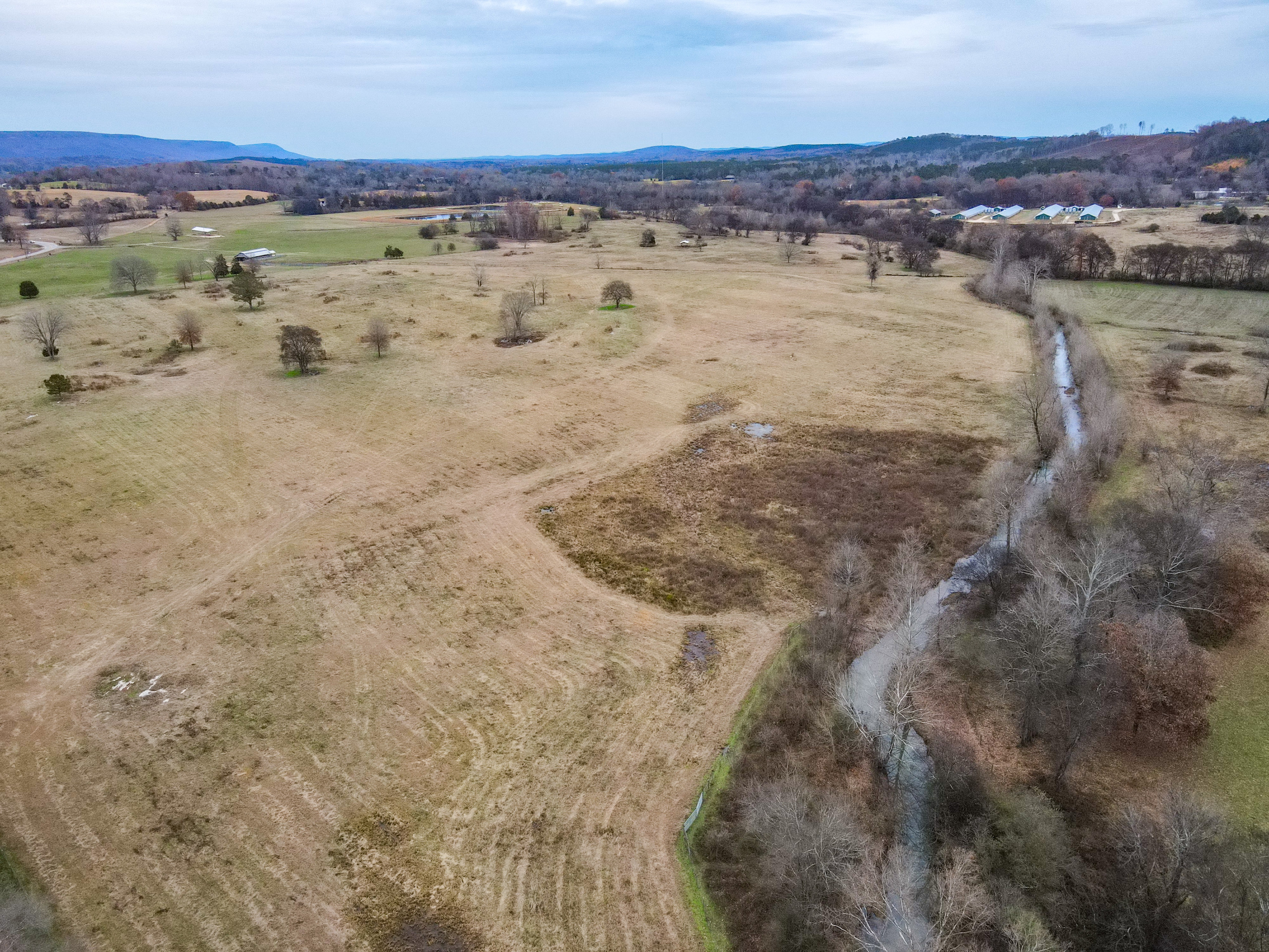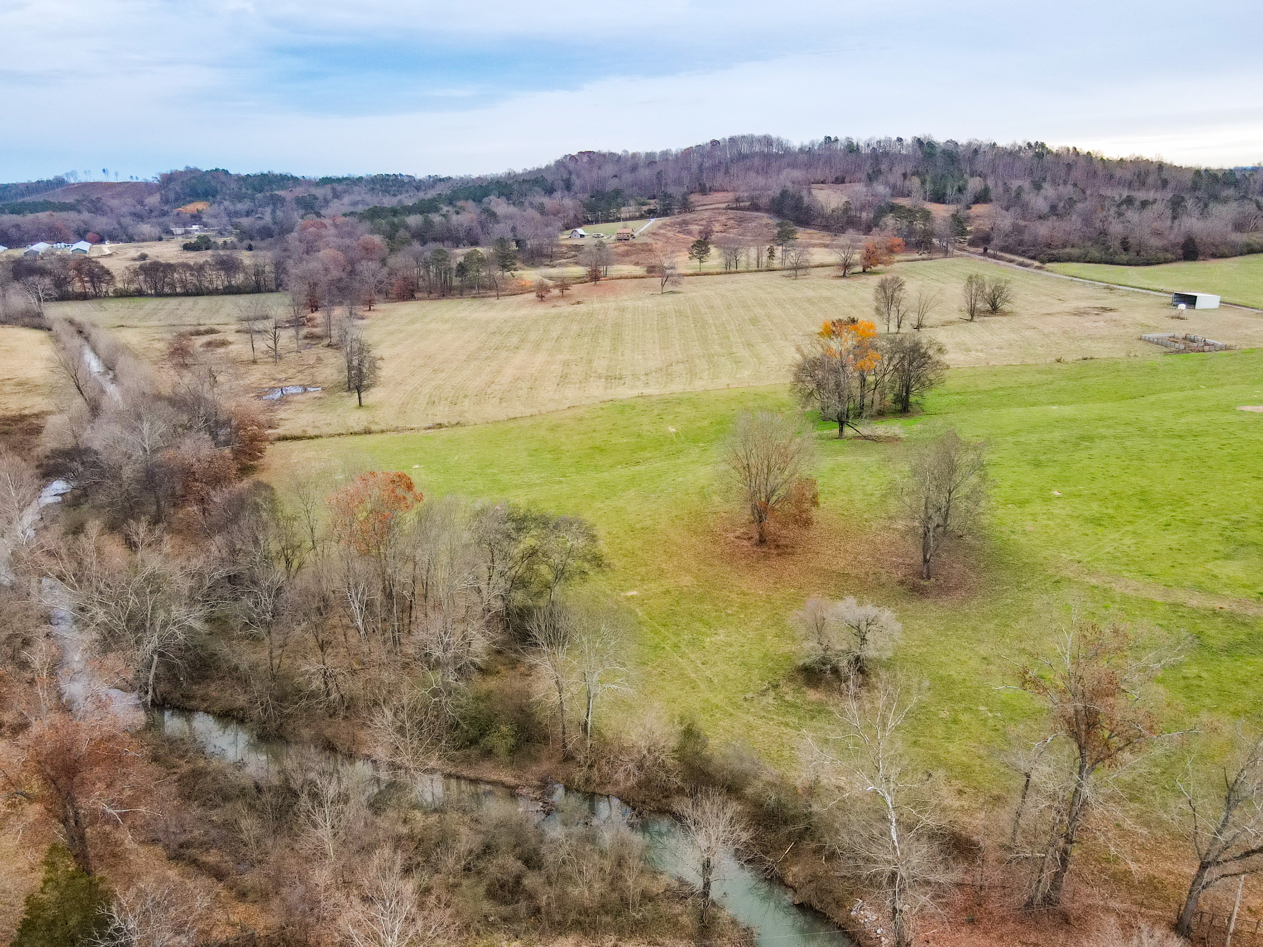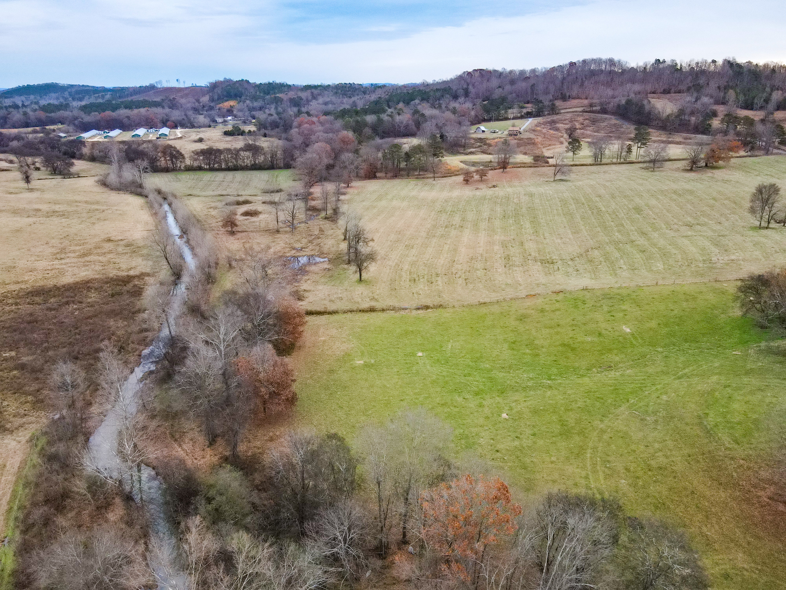 If you have been looking in North Georgia for a cattle rancher's dream farm, you have now found one for consideration! The pastures have excellent fencing in place and are cross-fenced for rotational grazing. Alpine creek flows through the property, and this wide fertile creek bottom grows tons of grazing grass for the cattle. A 36’x 100’ pole barn, up on the north end, would serve as hay storage and there is also a working pen and squeeze chute up at the barn. Over a mile of paved road frontage around the farm provides excellent access, which is very good to get in and out of pastures and day-to-day checking cattle. There are two wells on the property, and automatic watering tanks are in place. Numerous home sites are around the farm, which has views overlooking the creek bottom and long-range views toward Lookout Mountain to the northwest. This place is ready for cattle and someone to build your own farmhouse. Please note that we also have listed a gorgeous country home across the road on 74 +/- additional acres; see that listing link for details. We also have additional smaller tracts nearby. Don't hesitate to contact us, Jason McGee and Ben Richardson, the listing agents, for more details and to schedule a tour of this immaculate cattle farm.