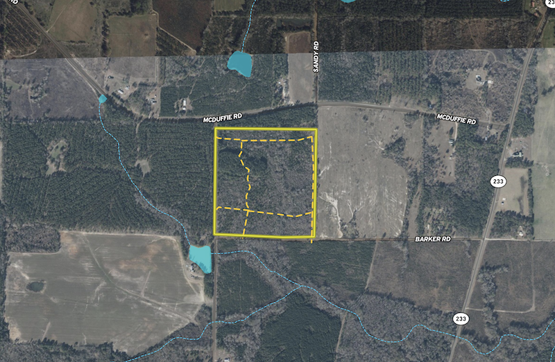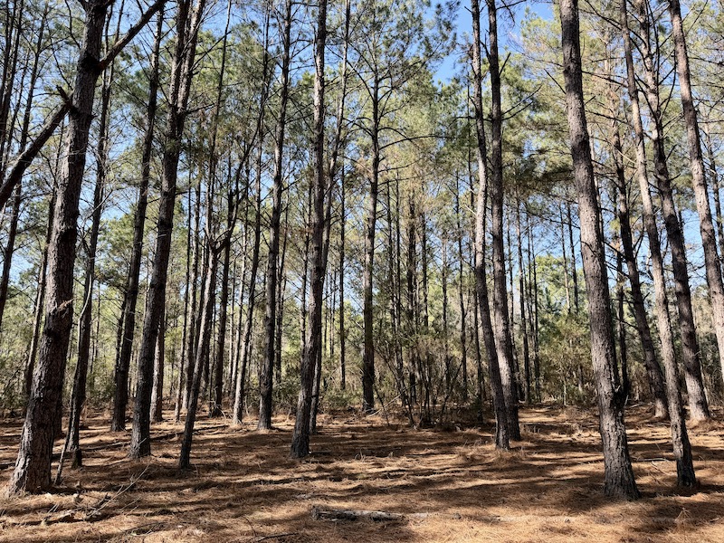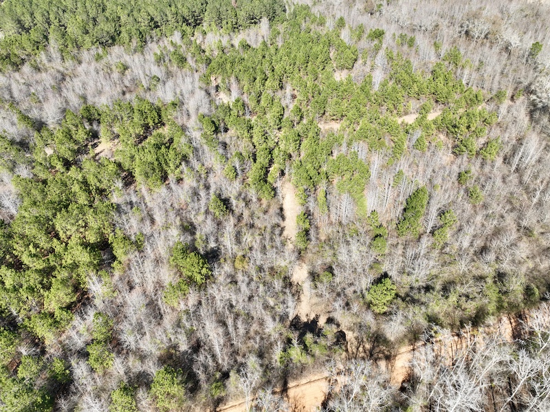 A hilltop along Shady Grove Road presents an outstanding opportunity for a potential homesite, offering privacy and an elevated view of the surrounding landscape. Along the paved road frontage, a 4± acre pocket of more mature pines adds immediate character and visual appeal. A small seasonal branch winds through the property from north to south, enhancing the natural feel and supporting wildlife movement.