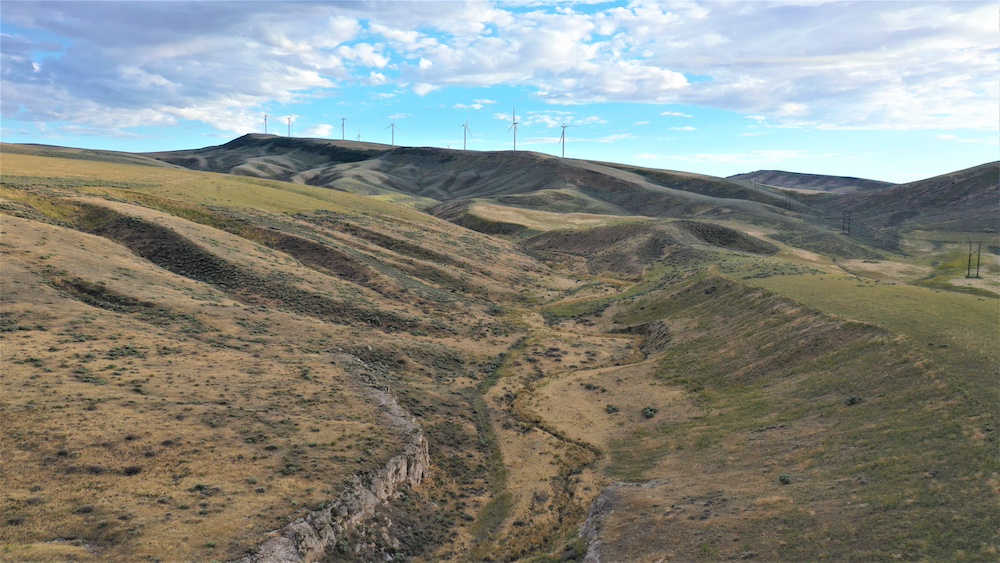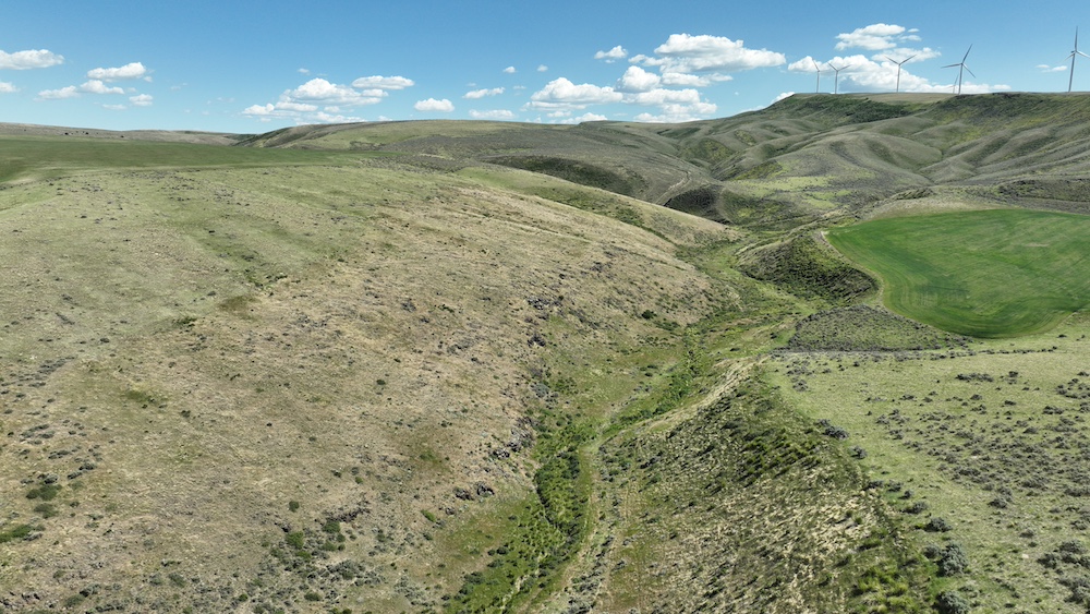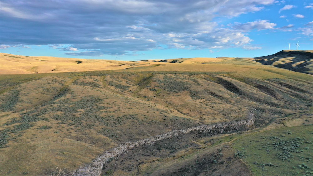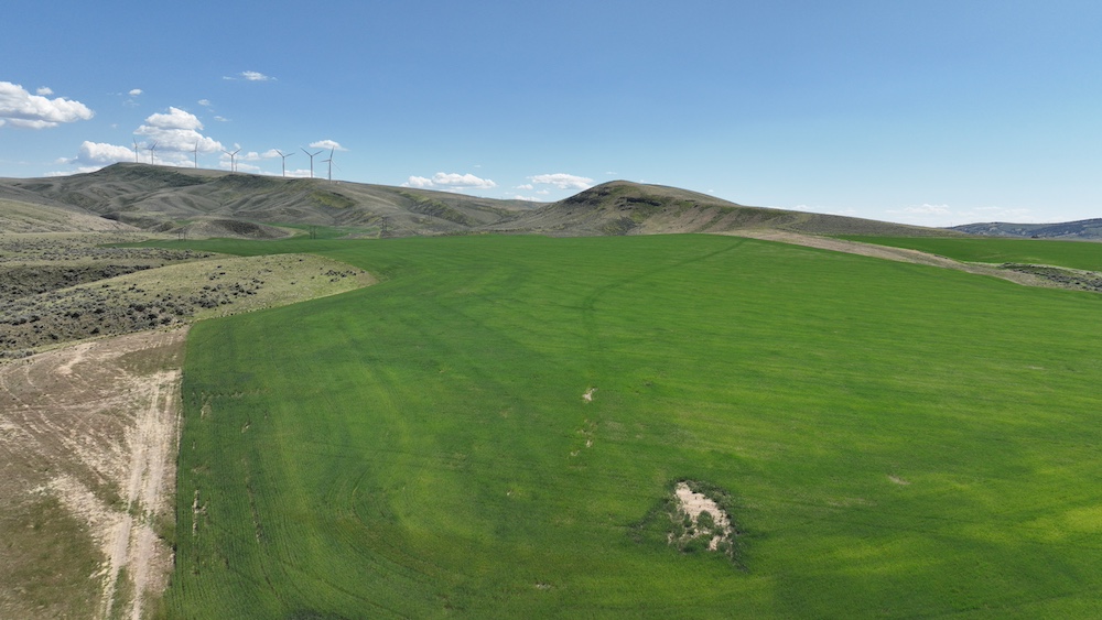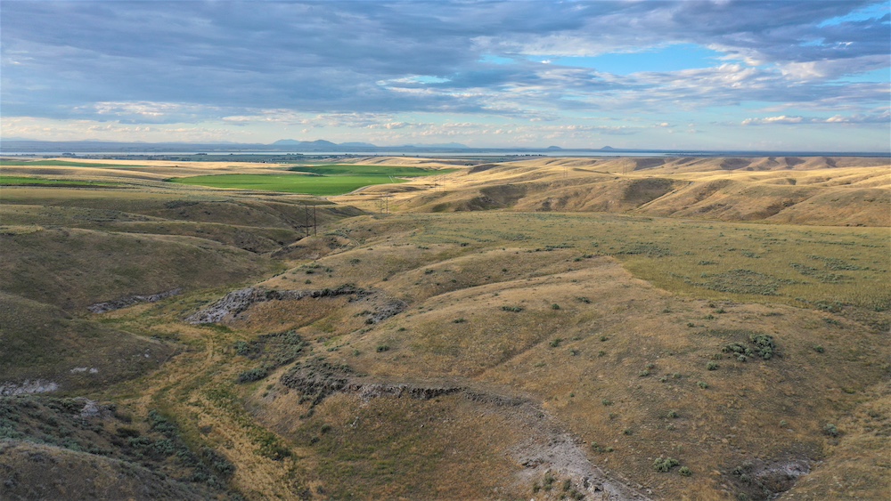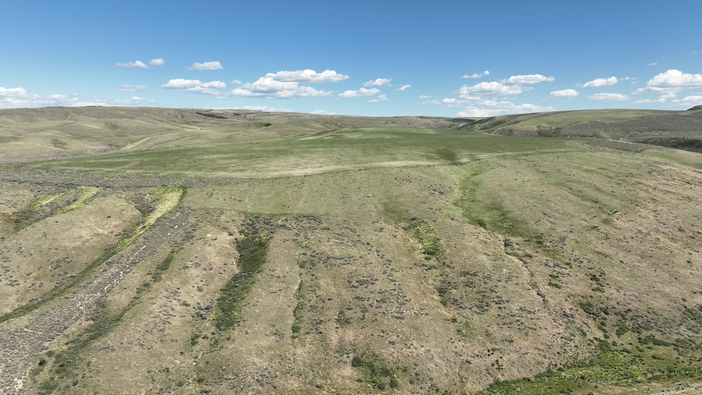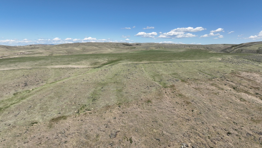 Formerly dry farmland and grazing ground, this property is subdivided into six contiguous parcels with seasonal county road access off Blind Springs Road and has multi-use potential. The terrain ranges from level to moderate slope with draws and a two-track providing access to much of the acreage. Five hundred sixty acres had been in CRP. These five hundred sixty acres of farm ground have a history of dry farming wheat, safflower, and cattle grazing. The ground had been farmed approximately fifteen years ago, and grass was replanted on a portion of the acreage approximately three years ago.