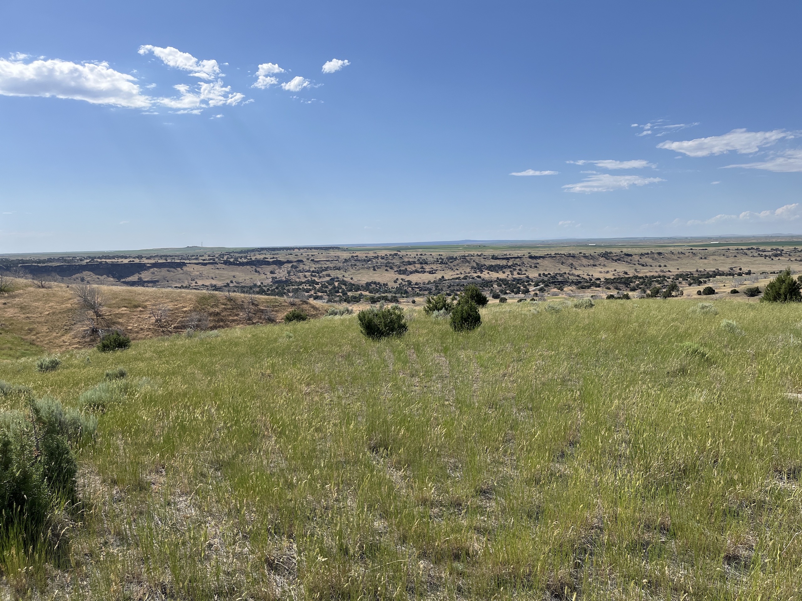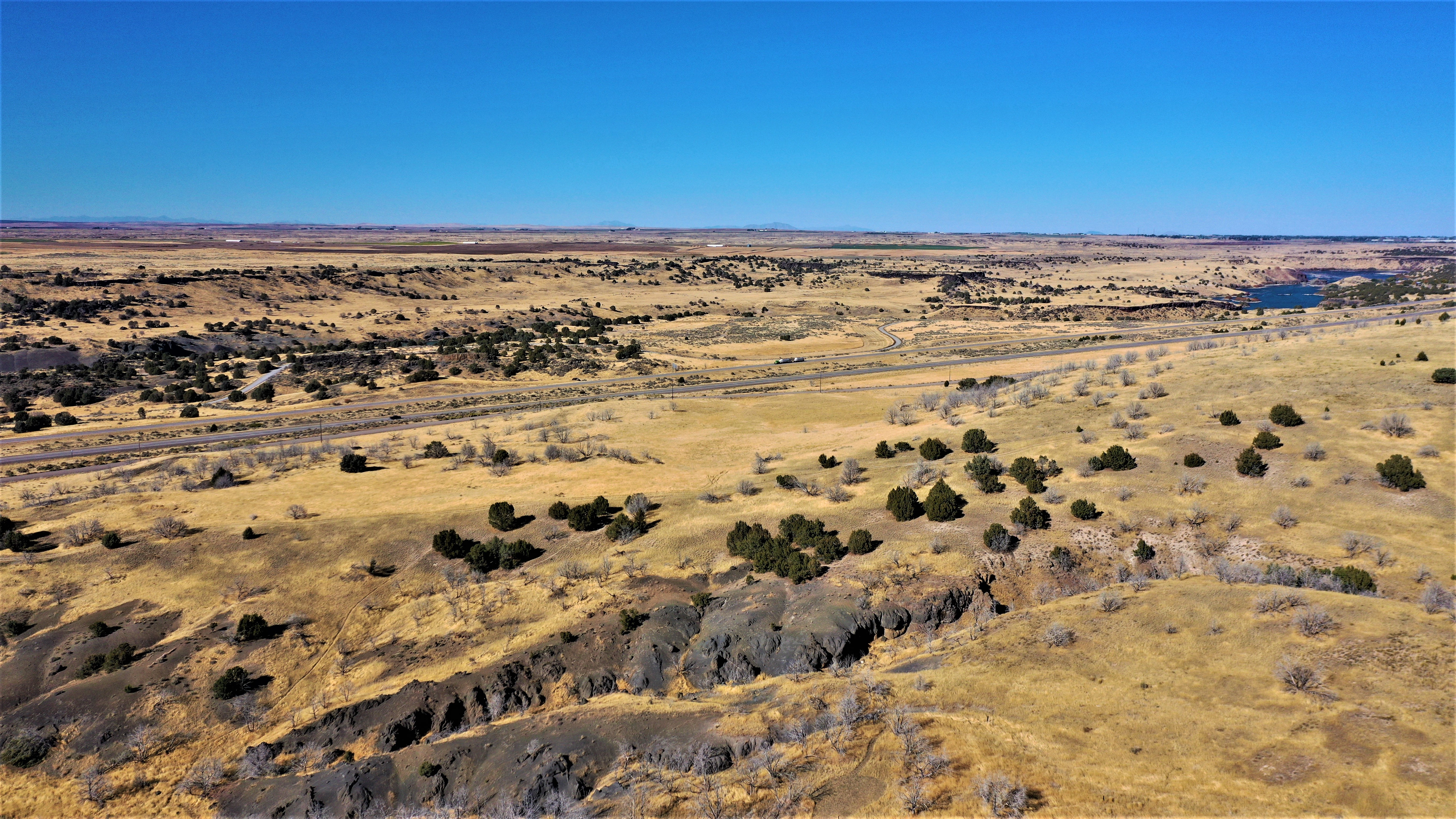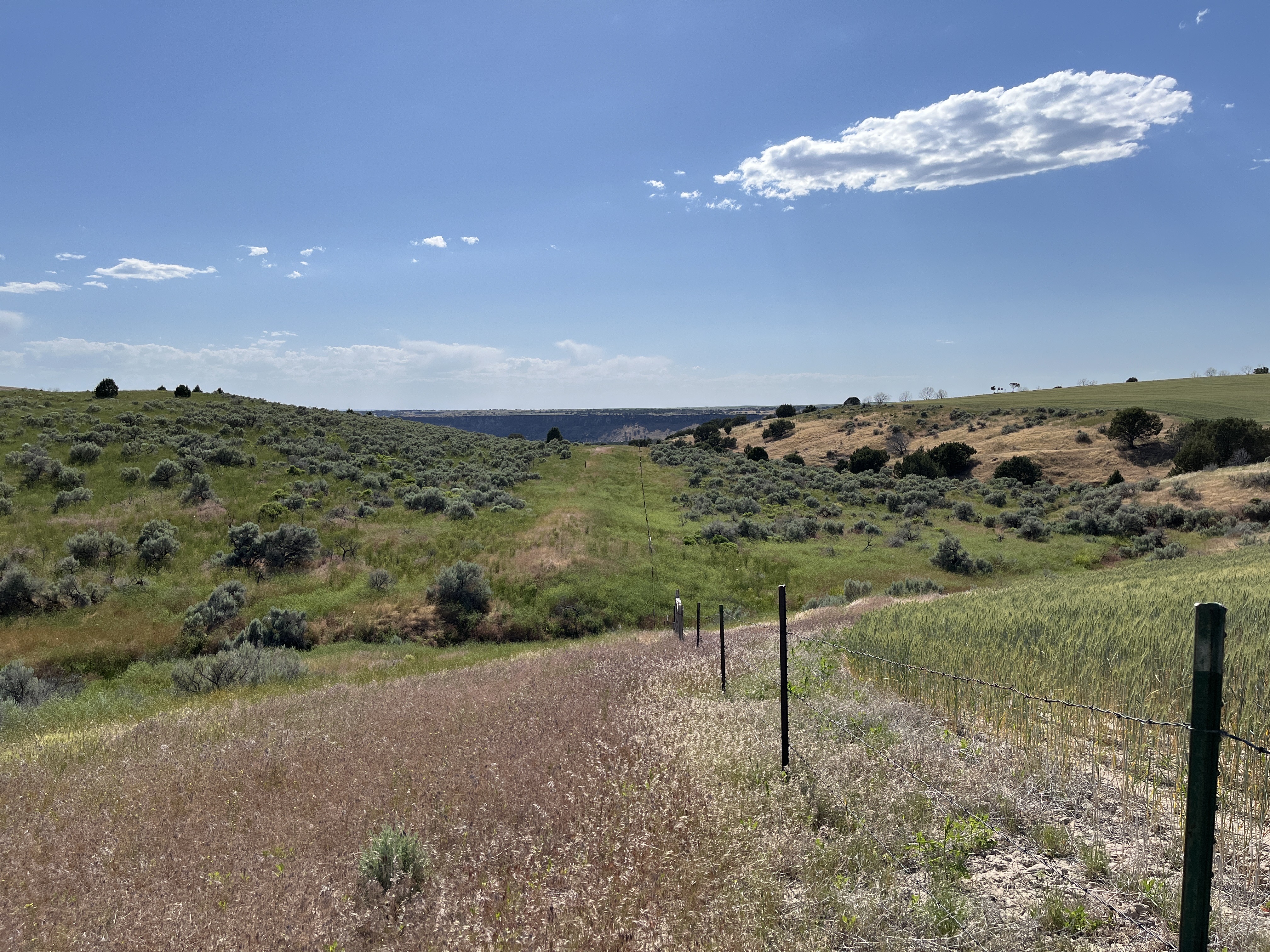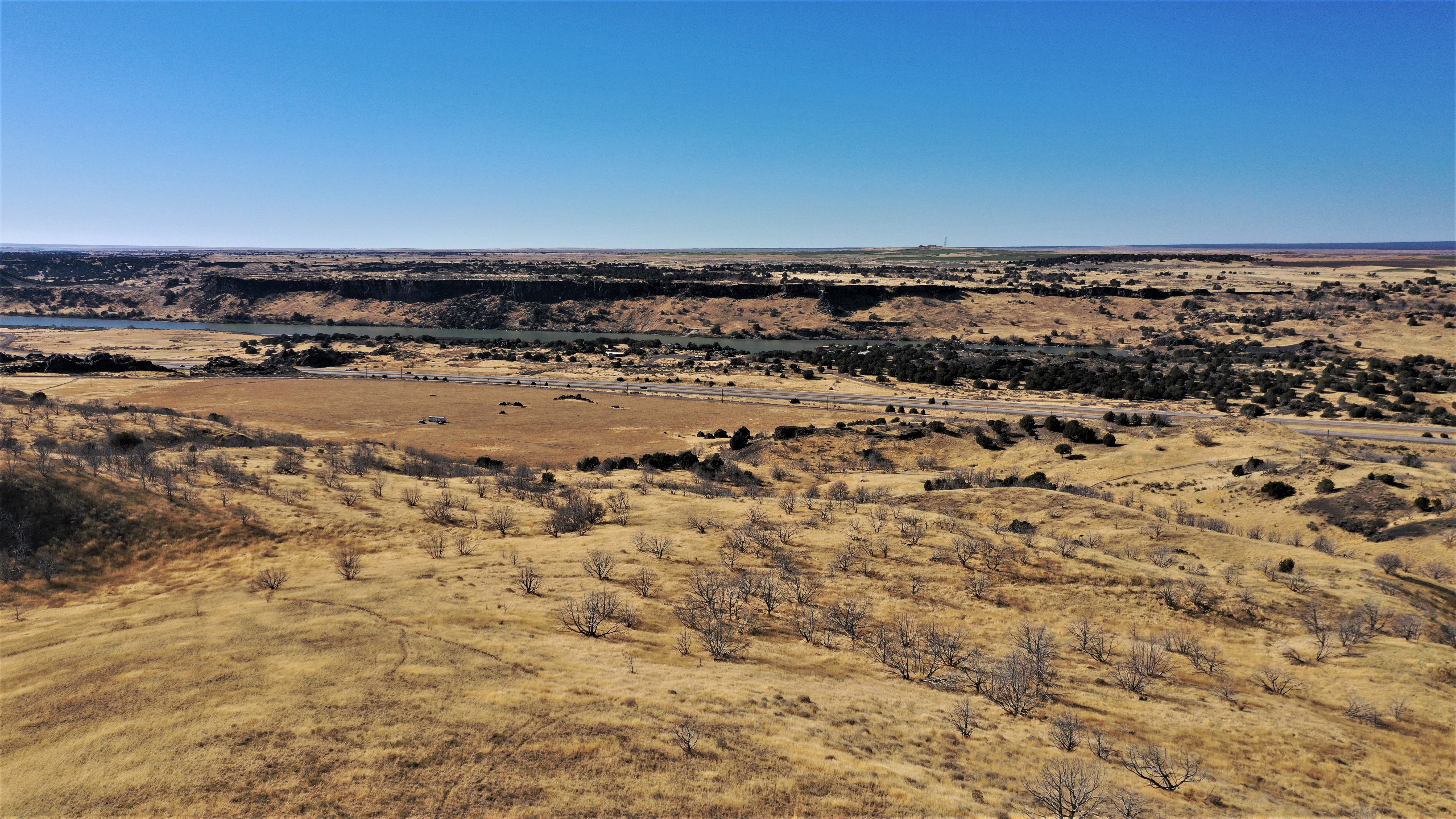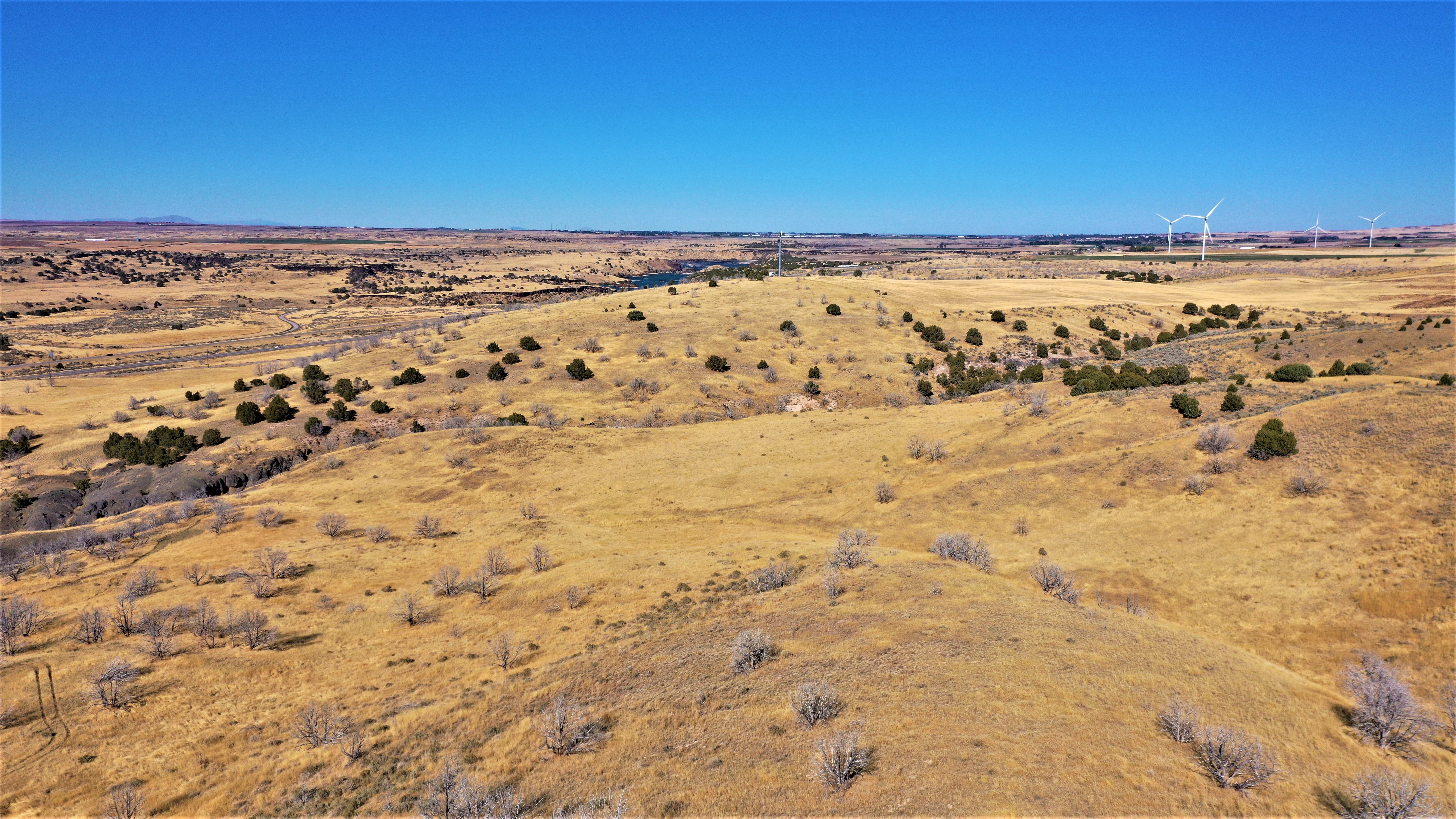 Conveniently located off Interstate 86 with one and a half miles of frontage on Stock Trail Road, this property is ripe for rural development. Formerly a dry farm, the terrain is level to a gradual slope with some draws, allowing panoramic views of the nearby Snake River and a habitat for wildlife viewing. The property is subdivided into three contiguous parcels with a two-track dirt road system providing access throughout. One hundred twelve acres had been in CRP for 30 years and just came out of the program this past fall. Private agricultural land borders the property on three sides, limiting hunting pressure and creating a habitat for mature mule deer and elk.