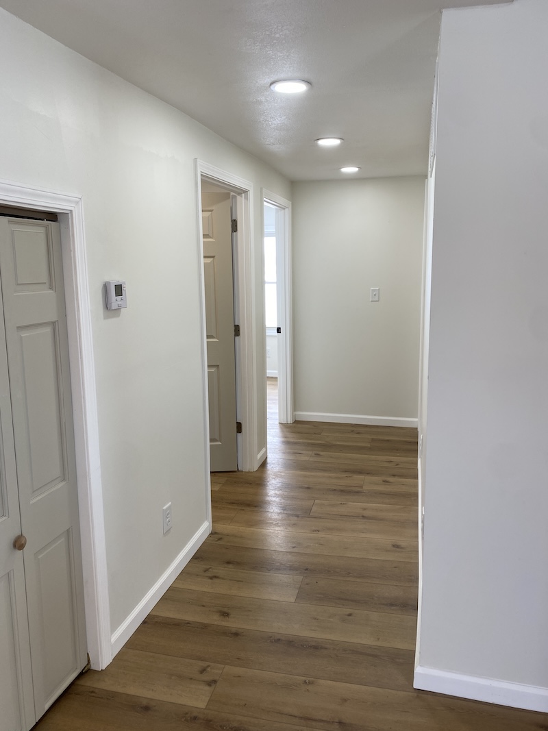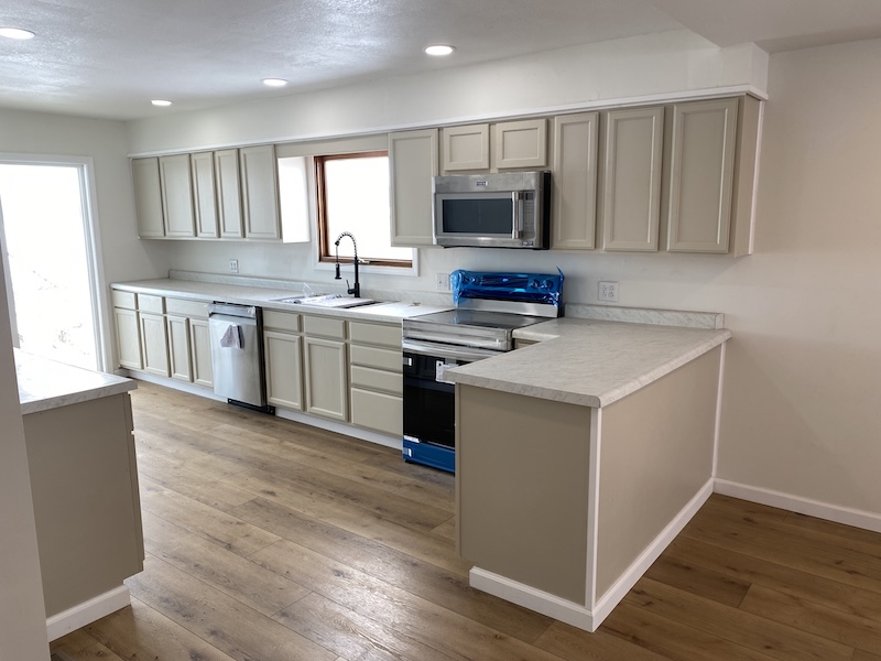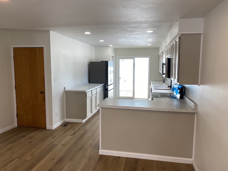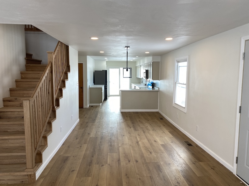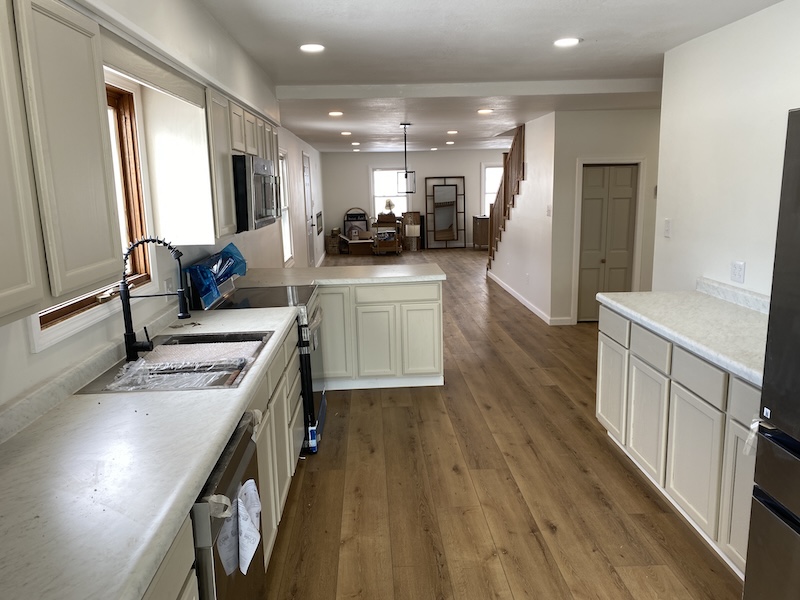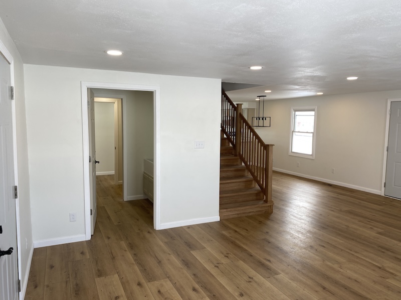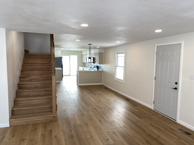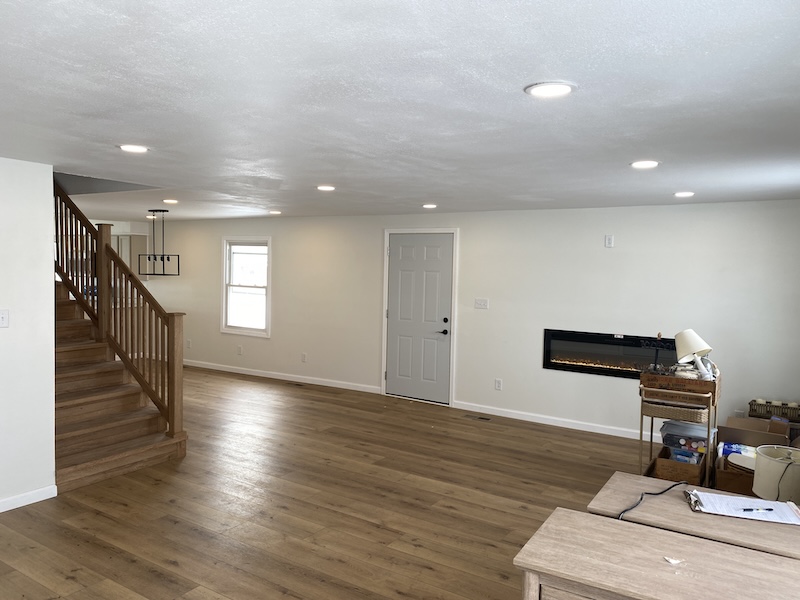 The main level offers approximately 1,456 sq ft of beautifully finished living space (not including the back porch). Step into a spacious living room featuring a sleek built-in electric fireplace—ideal for cozy evenings at home. The adjoining dining area seamlessly connects to a fully updated kitchen, complete with brand-new appliances, fixtures, and countertops. Just off the kitchen, an 18' x 10' covered porch provides the perfect spot to unwind, enjoy a drink, and take in the sunset.