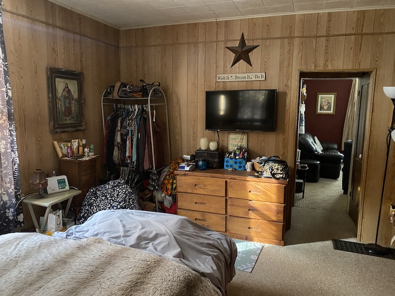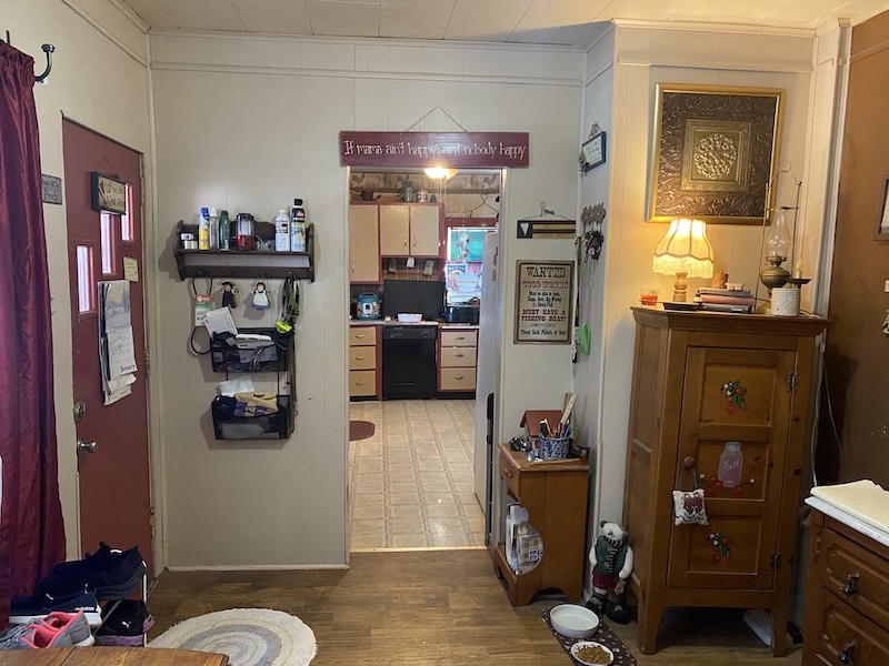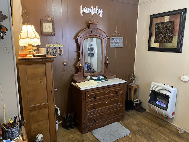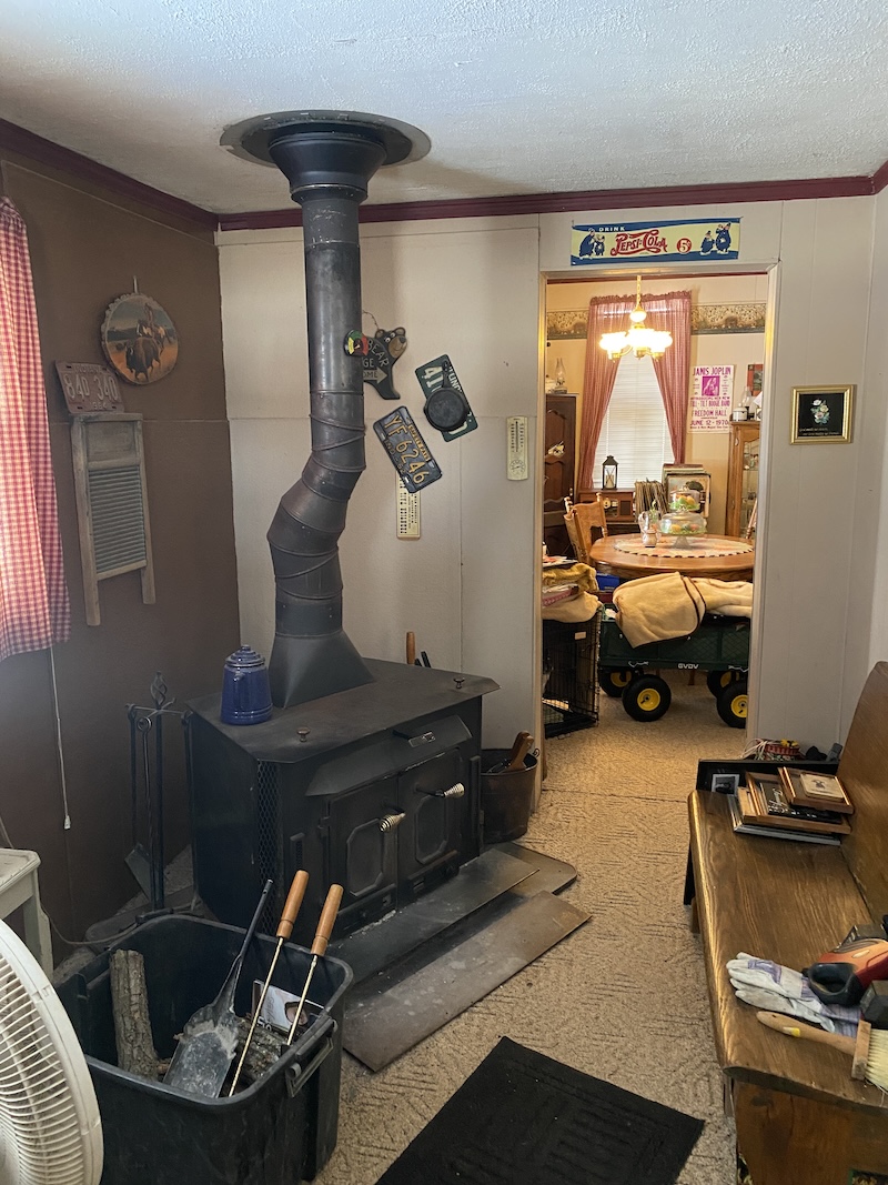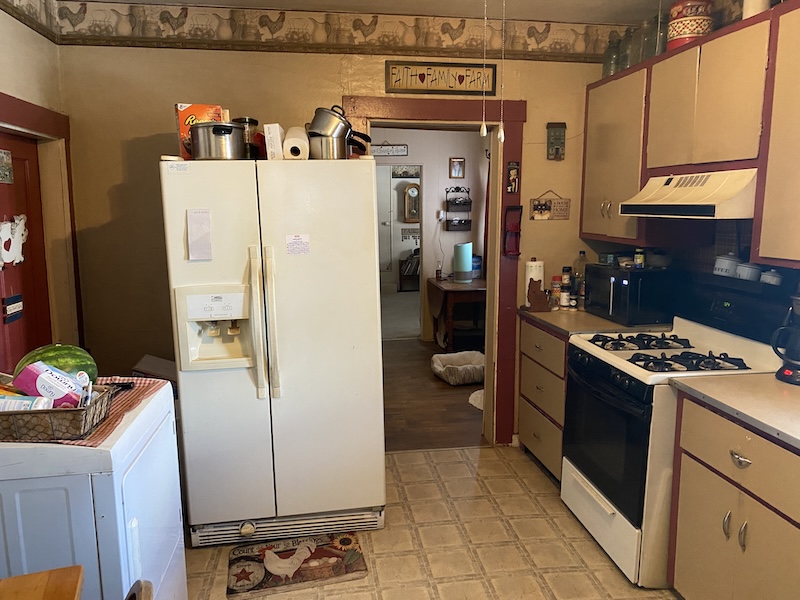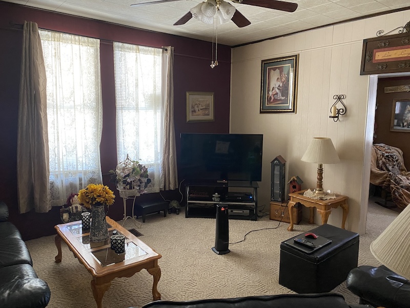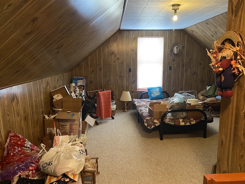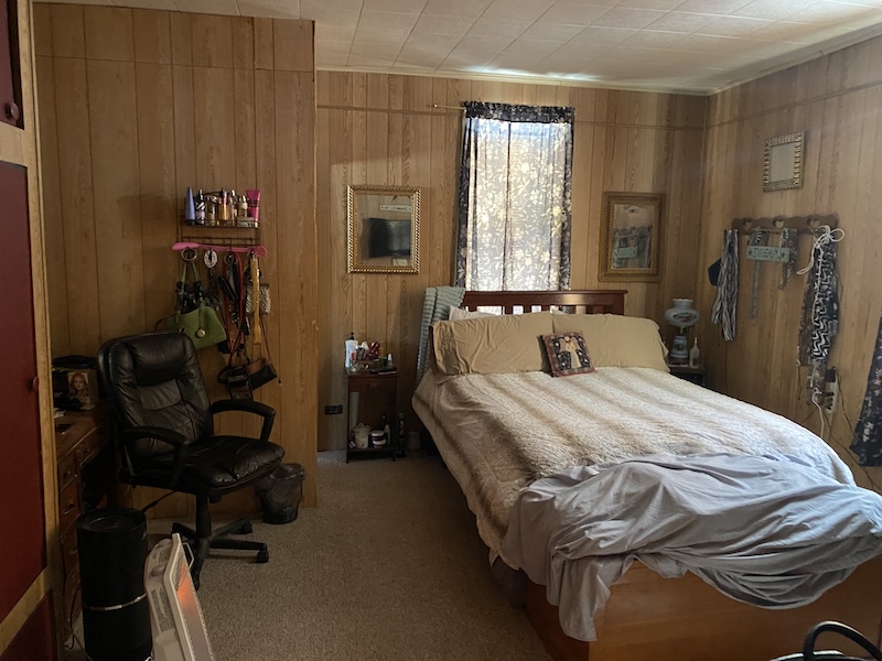 Upon entering the home, you’ll find a spacious kitchen to the left and a large dining room to the right. The main level also includes two additional large rooms, one serving as the primary bedroom and the other as a bathroom. Upstairs, the space offers three additional bedrooms, providing ample room for family or guests. The primary heat source is a gas furnace with a wood stove and an outdoor wood furnace for backup.