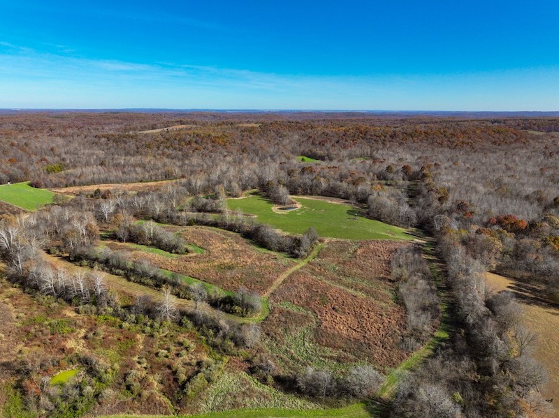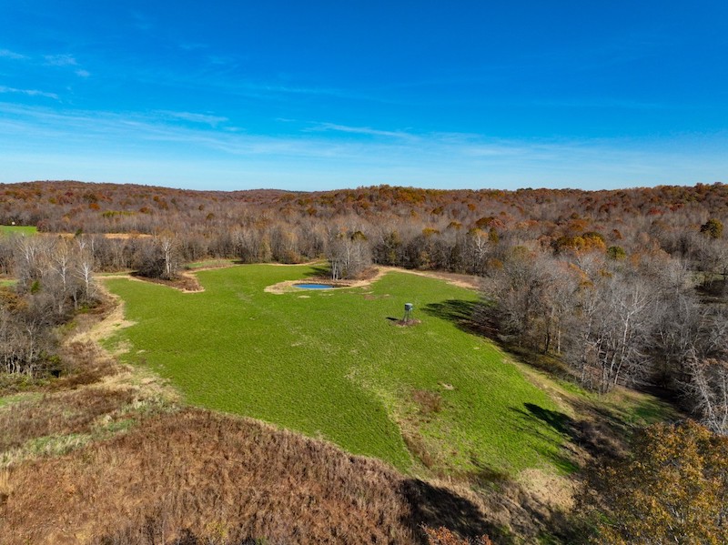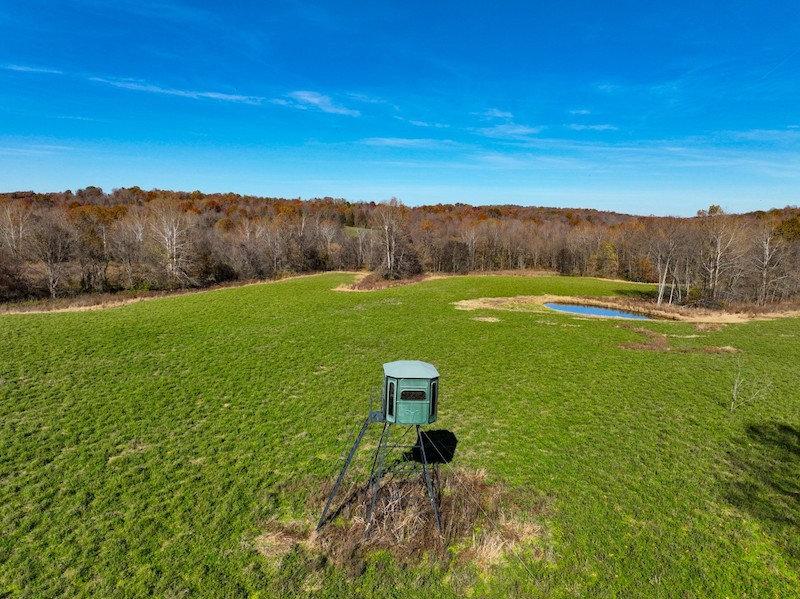 This 268+/- acre Hardin County hunting tract is a rare opportunity to step into a fully developed whitetail property with a proven history of big, mature bucks. Its diverse blend of habitat types, income-producing acres, and purpose-built improvements form a turnkey foundation for any serious deer or turkey hunter. The landscape unfolds across rolling terrain with timbered ridges, wooded draws, and secluded pockets of thick security cover that give mature whitetails everything they need year-round. Softwoods and mast-producing hardwoods blanket the hillsides, while numerous natural funnels and pinch points create ideal stand and blind setups across the entire farm. A large, established alfalfa plot anchors the center of the property and acts as a major food source from spring through fall. A wildlife pond sits along its edge, adding reliable water in a key location and further enhancing the property's holding power. The elevated box blind overlooking the field provides a strategic vantage point during the early season, peak rut, and late-season recovery hunts. Beyond the alfalfa, several additional open areas are perfectly positioned for expanded food plot acreage, giving a future owner the ability to tailor the farm’s nutrition plan to their goals. The farm also includes 33+/- acres enrolled in CRP, generating $6,546 annually while adding excellent bedding and nesting habitat. These acres integrate seamlessly into the surrounding timber and food sources, increasing deer movement consistency and overall wildlife diversity. Trails and internal roads are well established, allowing easy access throughout the property by truck, tractor, or ATV—an important feature for hunting setups, habitat work, and year-round enjoyment. A large equipment barn provides ample storage for implements, UTVs, tractors, and hunting gear. For buyers looking to build, an ideal homesite sits near the road frontage, offering privacy while still benefiting from quick access to utilities. With 1,100 feet of road frontage and available utilities, the property is primed for a future lodge, cabin, or barndominium. This is a standout Hardin County farm with strong habitat, proven trophy whitetail history, dependable annual income, and all the key features that make Illinois hunting land so highly sought after. It’s a complete package ready for the next owner to enjoy from day one.