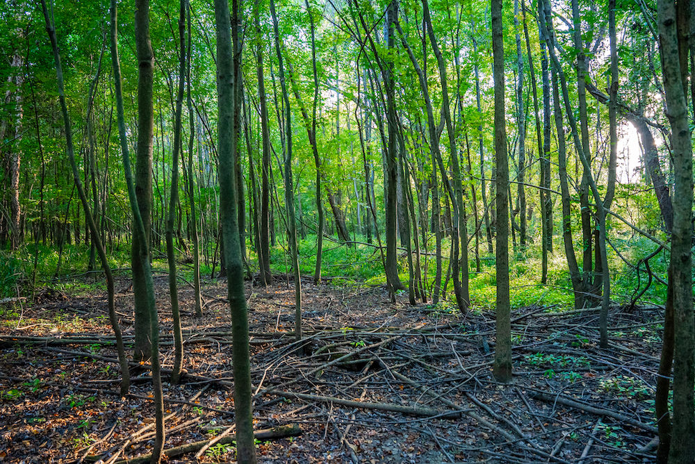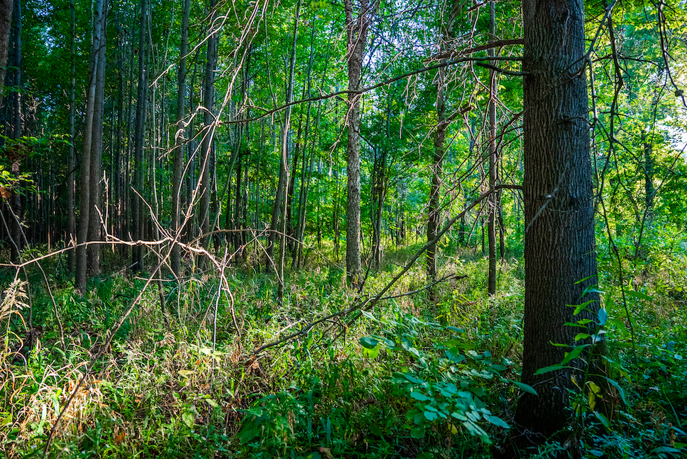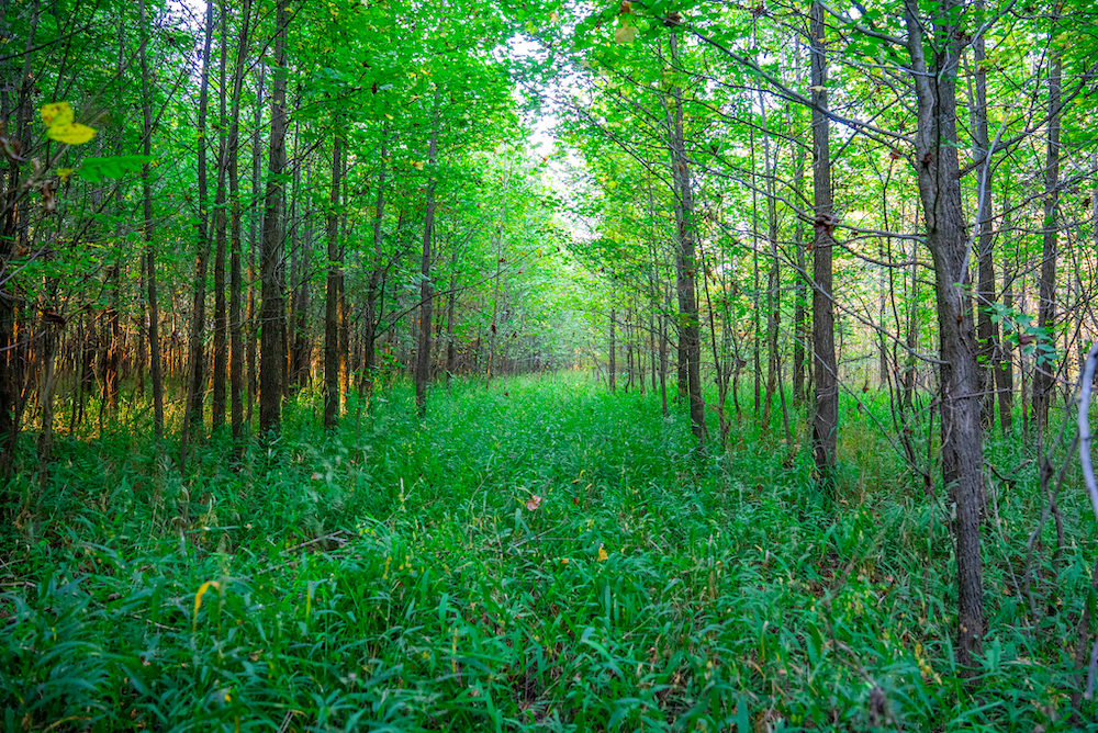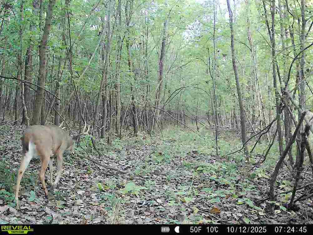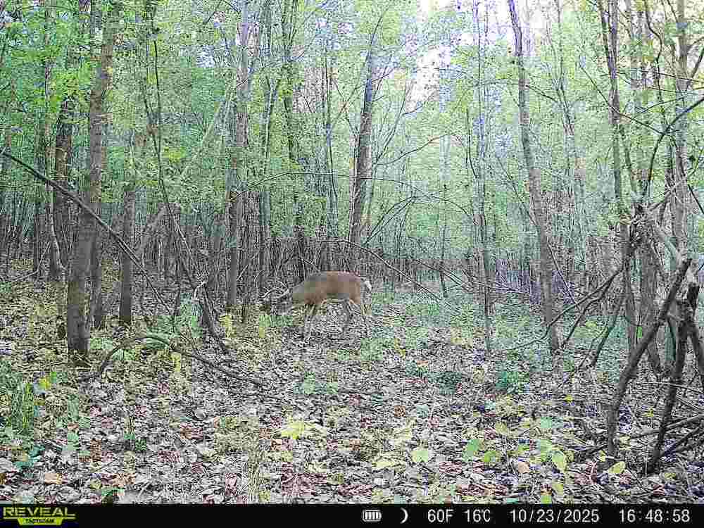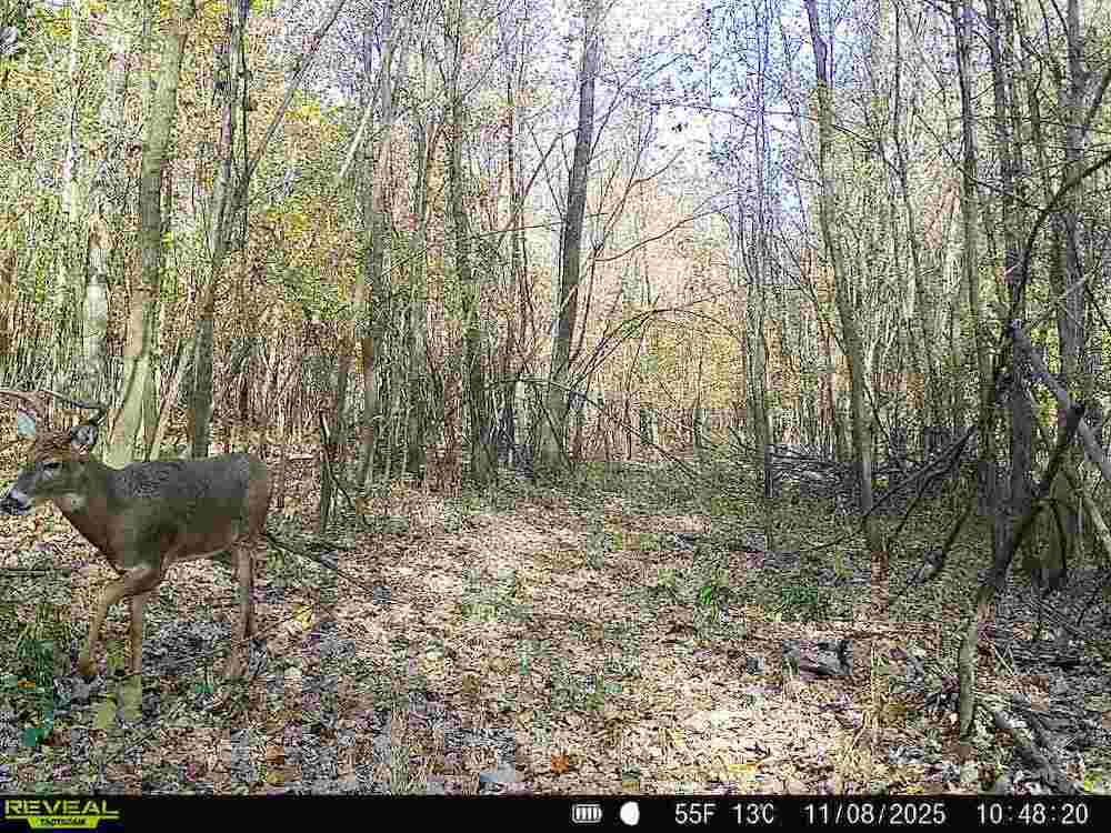 The property is fully wooded, with a mix of mature and mid-stage hardwoods creating ideal conditions for wildlife. The timber stand offers a combination of canopy cover and understory that supports game movement, bedding, and browsing. The property’s size and configuration also allow for effective hunting setups in multiple wind conditions.