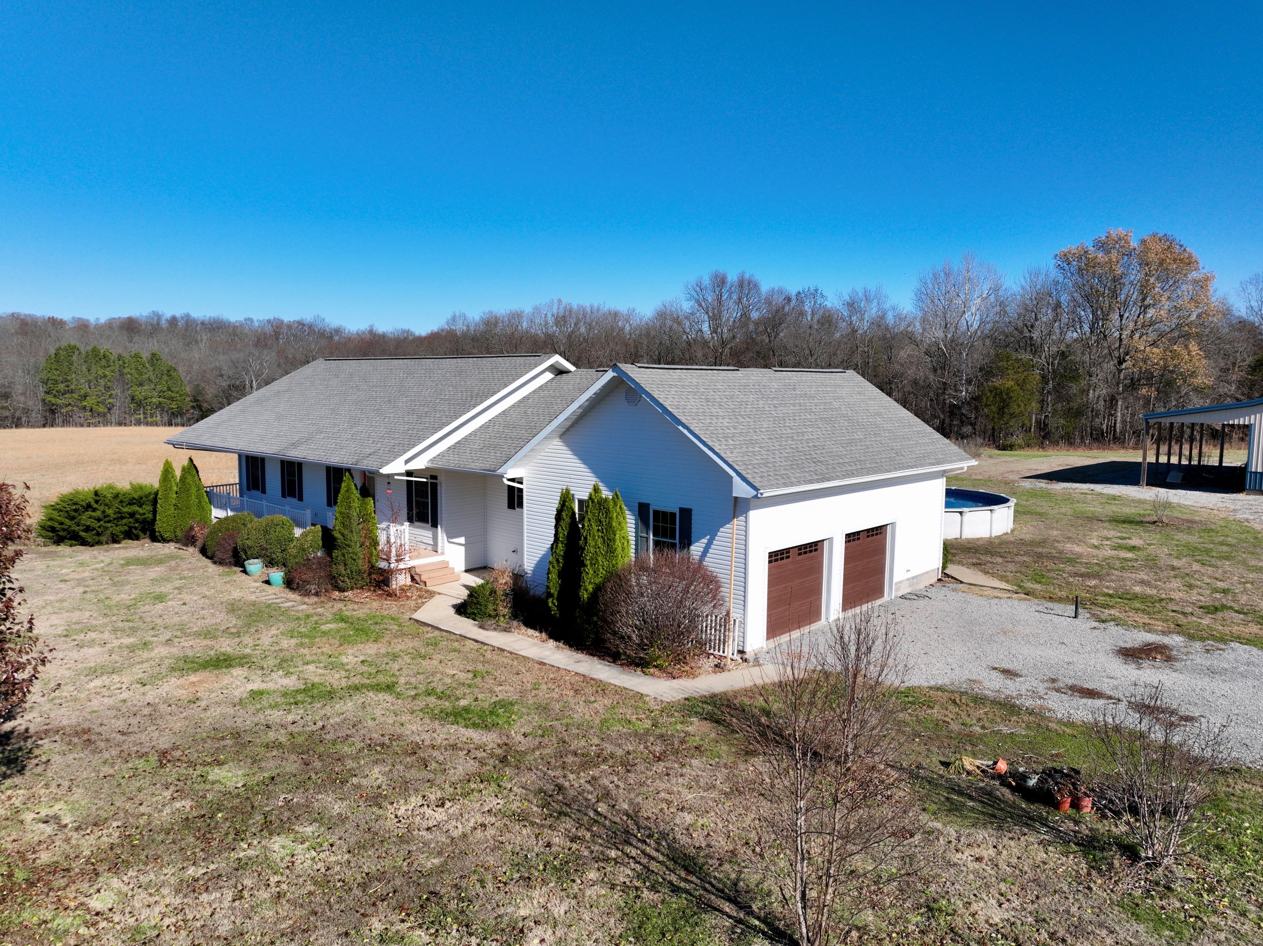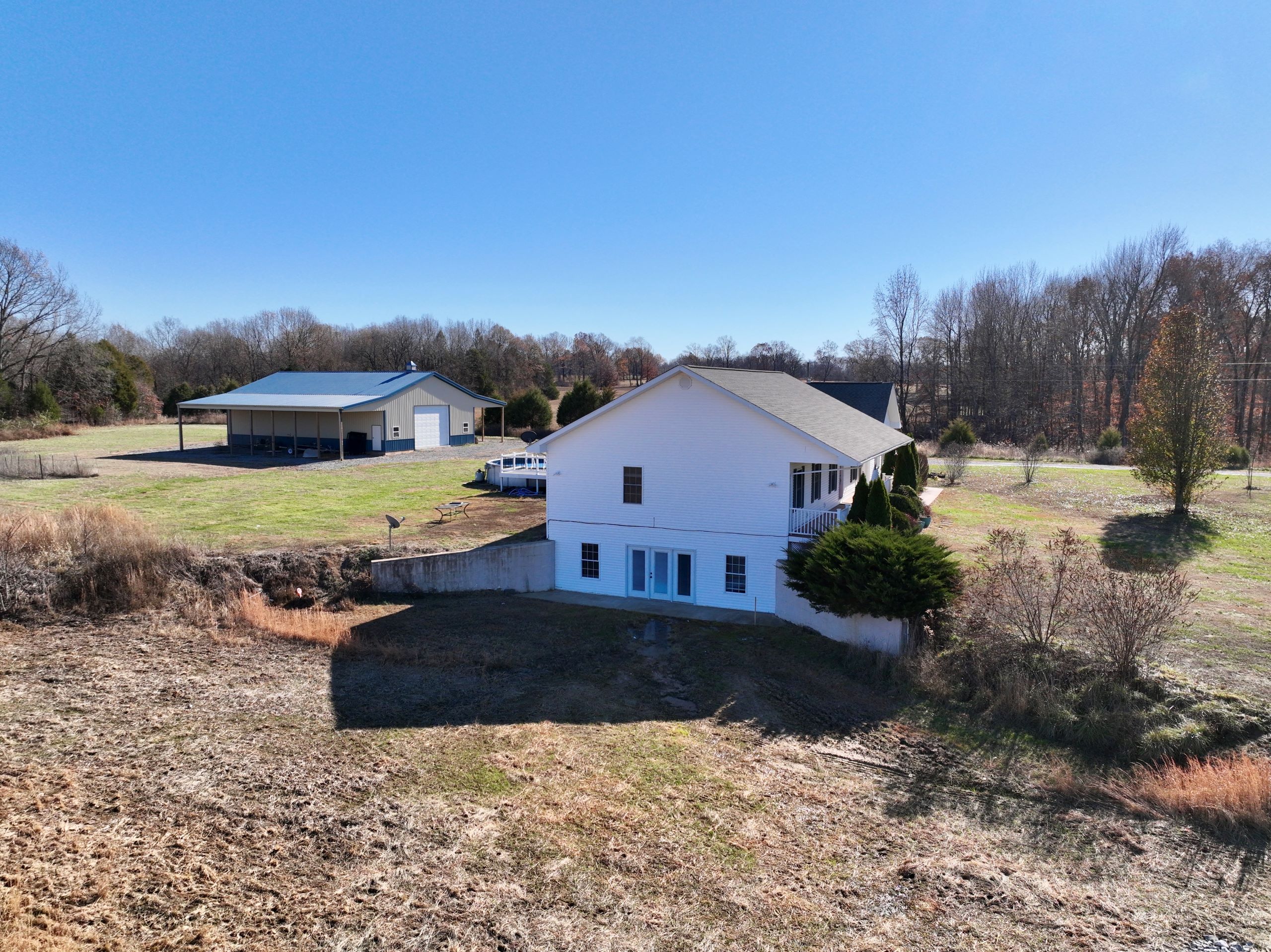 Beautiful home and outbuilding in a quiet rural area! This beautiful home has 3,270 square feet of living space with four bedrooms and three bathrooms. It has an open living area with lots of natural light, a user-friendly kitchen with plenty of cabinet space and a tabletop island, laundry and utility room, wood, tile and carpet flooring throughout, and three bedrooms and two bathrooms on the main level. Downstairs there is a walk-out basement with a large bedroom, bathroom and spacious living area. It has an attached two-car garage, a spacious back deck with an above ground pool, a covered front porch and a large yard with landscaping and a long gravel drive. Next to the home is a 40’ x 60’ pole barn with a half concrete/half gravel floor, large garage doors at each end and covered lean-to bays along each side. The yard has several established garden beds, a small timbered area at the eastern end, and has approximately 200 feet of road frontage along the western end. If you’re looking for a beautiful home with a large pole barn in a quiet rural area, give Land Specialists Chad Wilkinson and Justin Mason a call today and schedule your private tour!