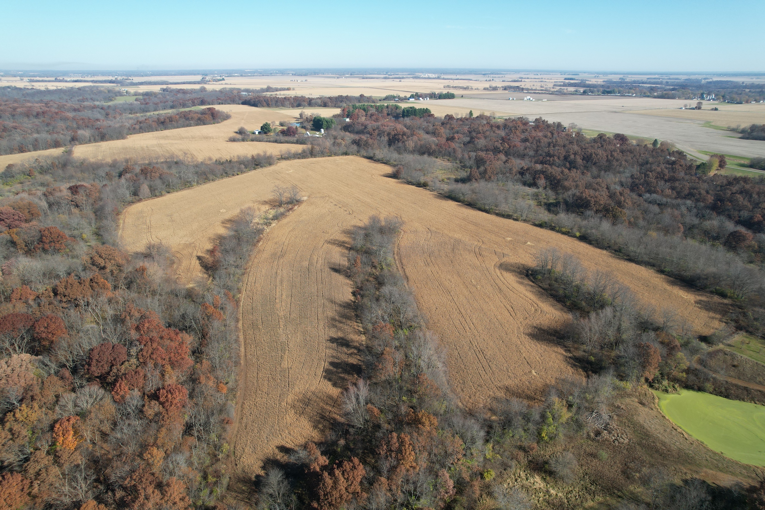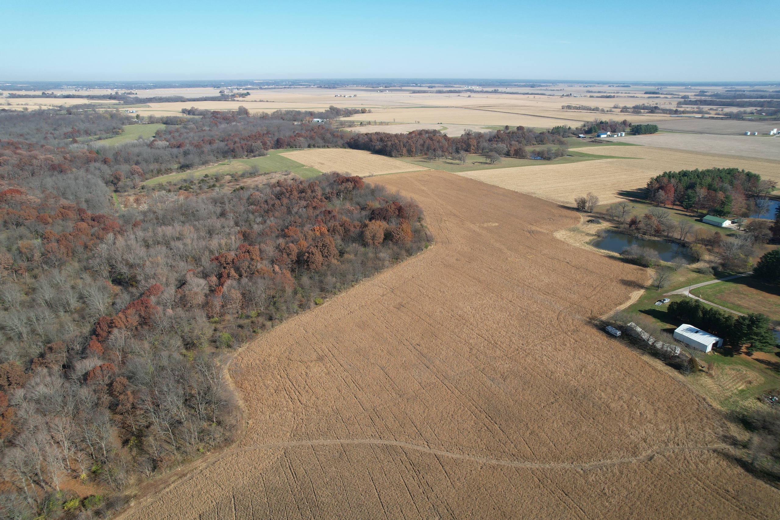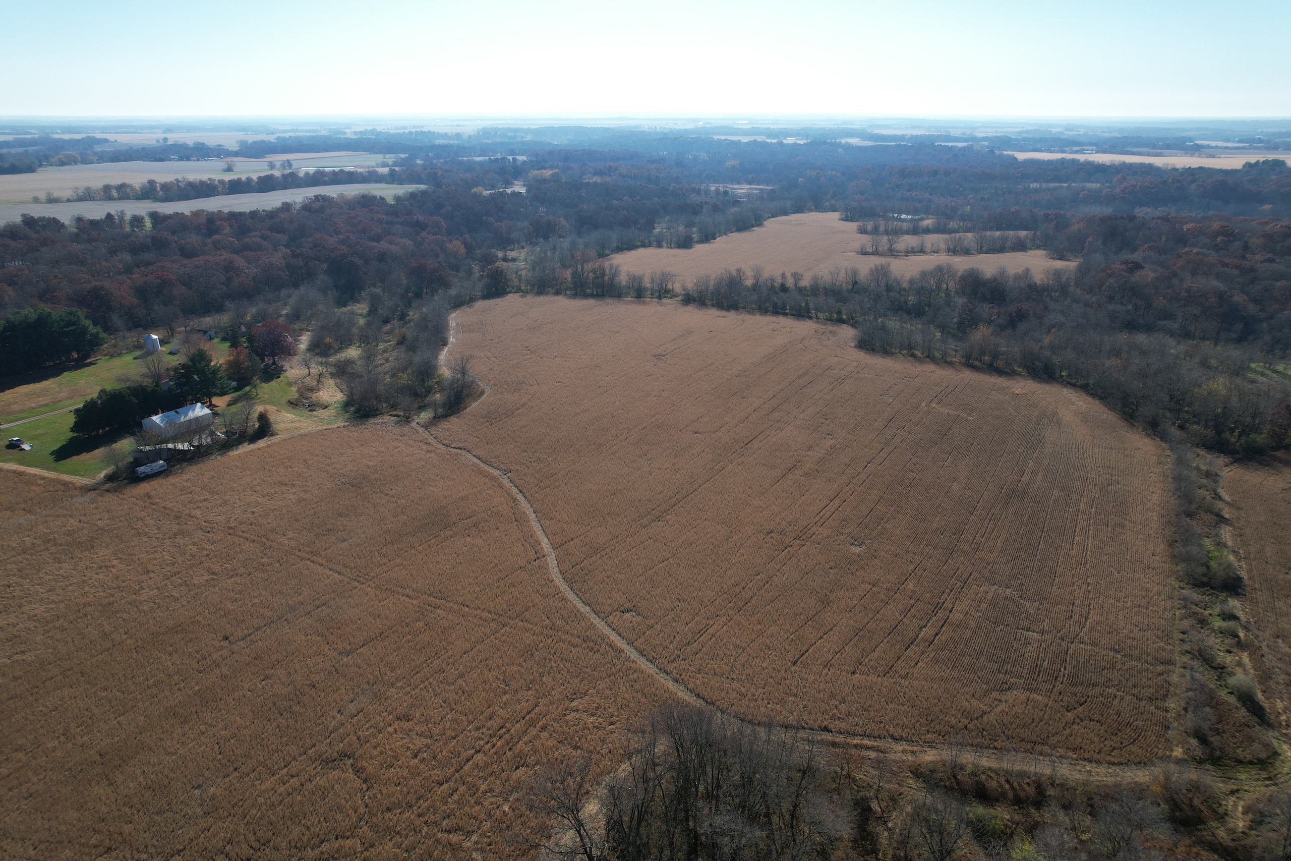 Tract 5 is 40.03 +/- acres and hosts many possibilities from tillable production acres, exceptional hunting opportunities, and a prime building location. There are approximately 16.4 acres tillable with an average PI of 126.4! A pond is located at the entrance to the farm and access is along the entire south end of the property. This tract has a nice roll and there is an established ATV trail that gets you to the creek that runs along the west side of the property. This parcel would make an ideal building site where you could enjoy the views and watch the wildlife out of your windows!
