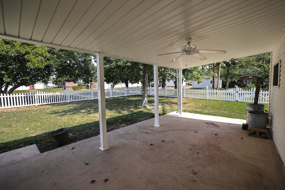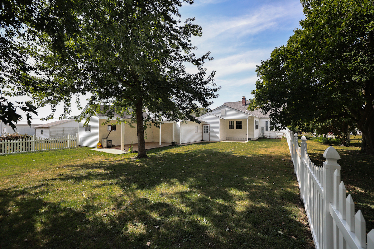 The exterior includes several appealing features that add both function and comfort. The backyard is fully fenced with a white picket fence. Concrete patio areas offer durable and low-maintenance outdoor spaces that can be used for grilling, entertaining, or simply relaxing. The detached garage provides generous storage capacity, including room for tools, equipment, or recreational items.