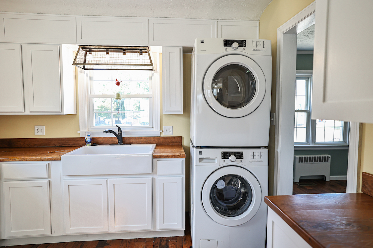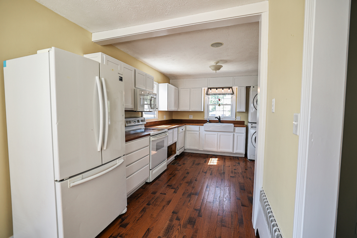 Throughout the home, updated wood flooring creates a cohesive and warm feel. The kitchen features natural wood countertops and a large farmhouse sink, complemented by natural light that gives the space an inviting atmosphere. There is an abundant amount of closet storage throughout the house, ensuring practicality for everyday living.