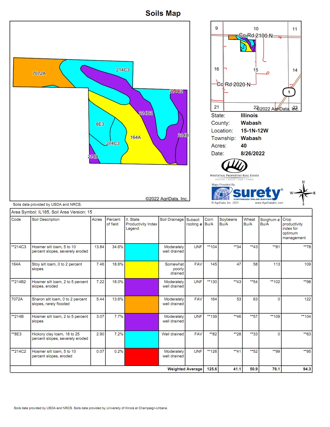 This mostly tillable tract is located southwest of Allendale, at the intersection of CR 2100N and CR 1350th E. The average PI is 94.3 with the majority of the soil being Hosmer silt loam and Stoy silt loam. The farm is under a farming contract for the 2023 farming season.