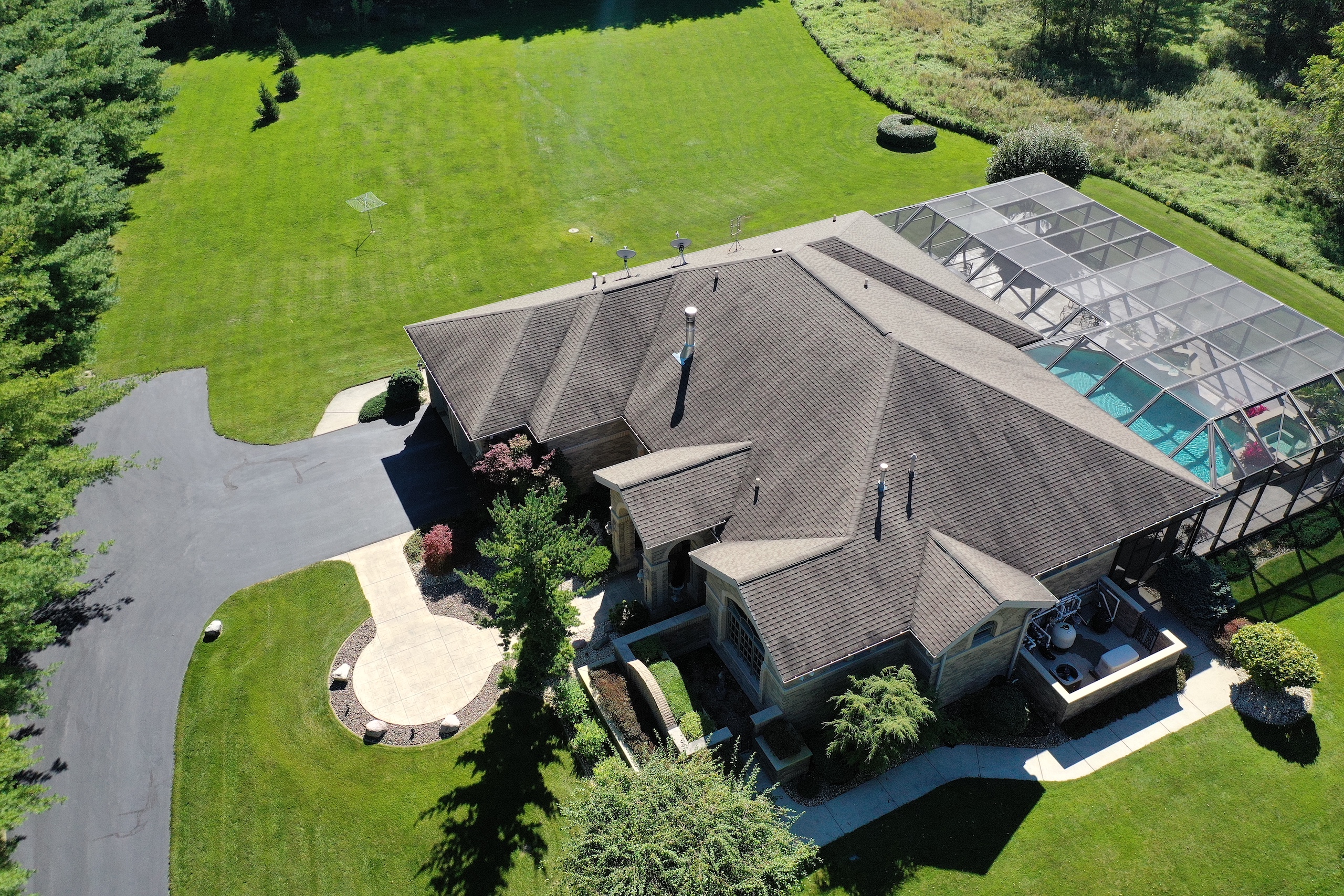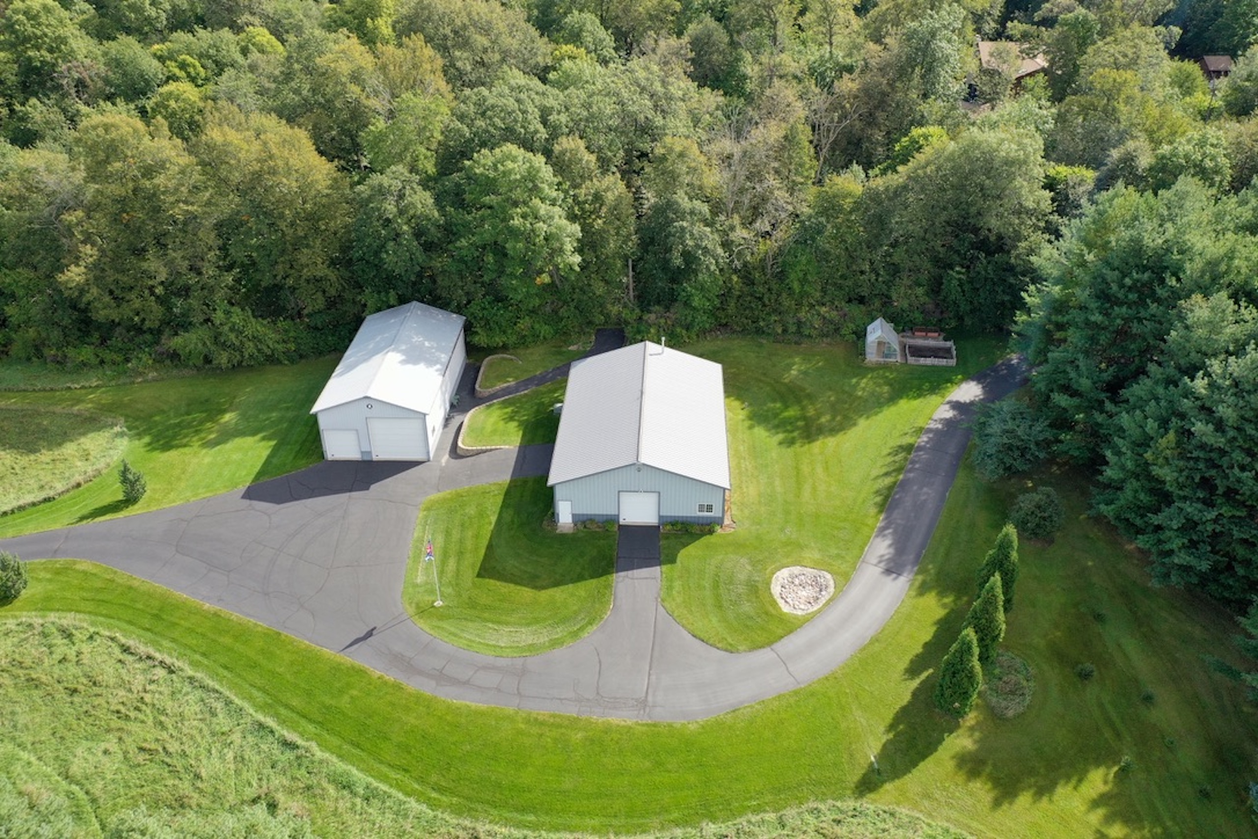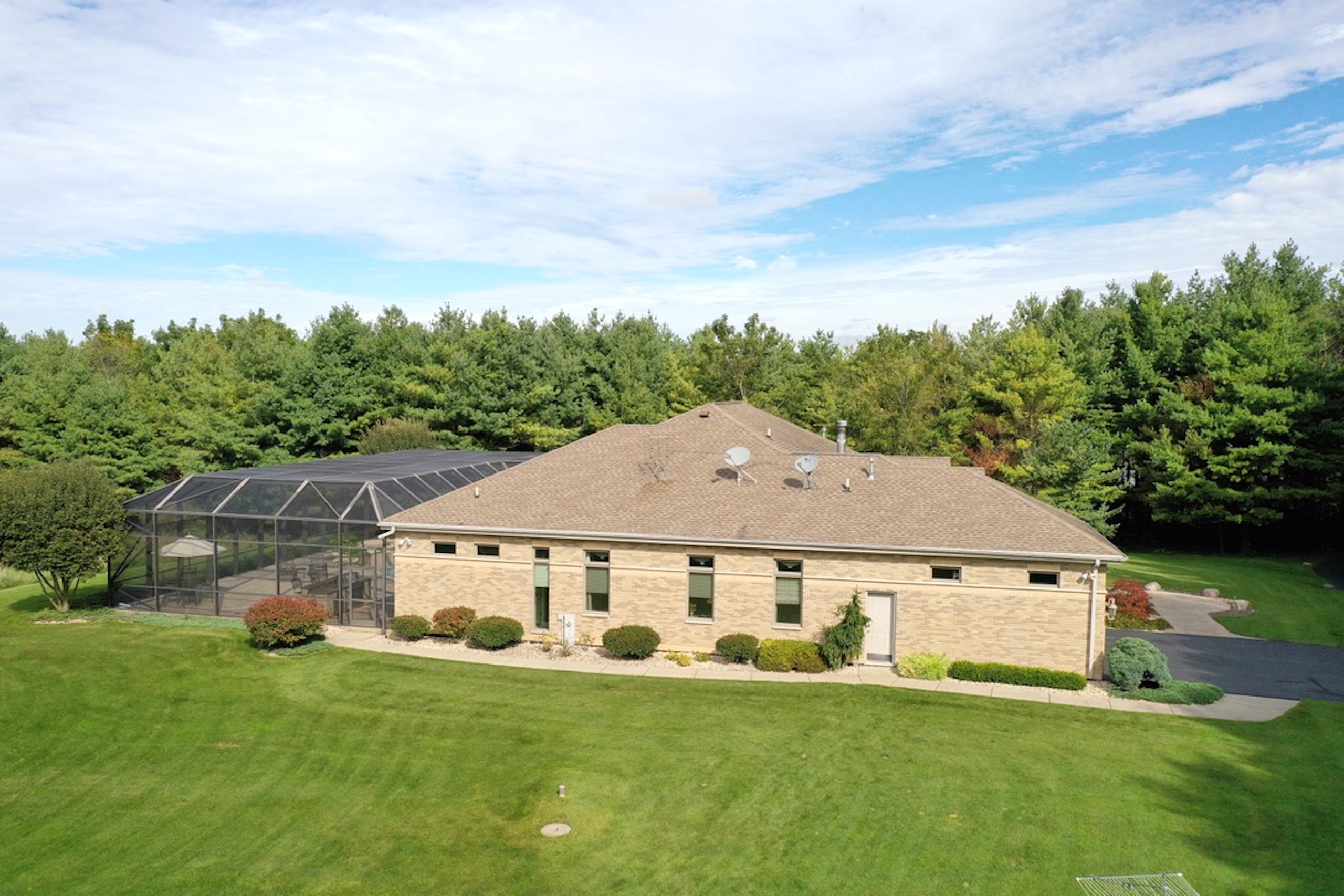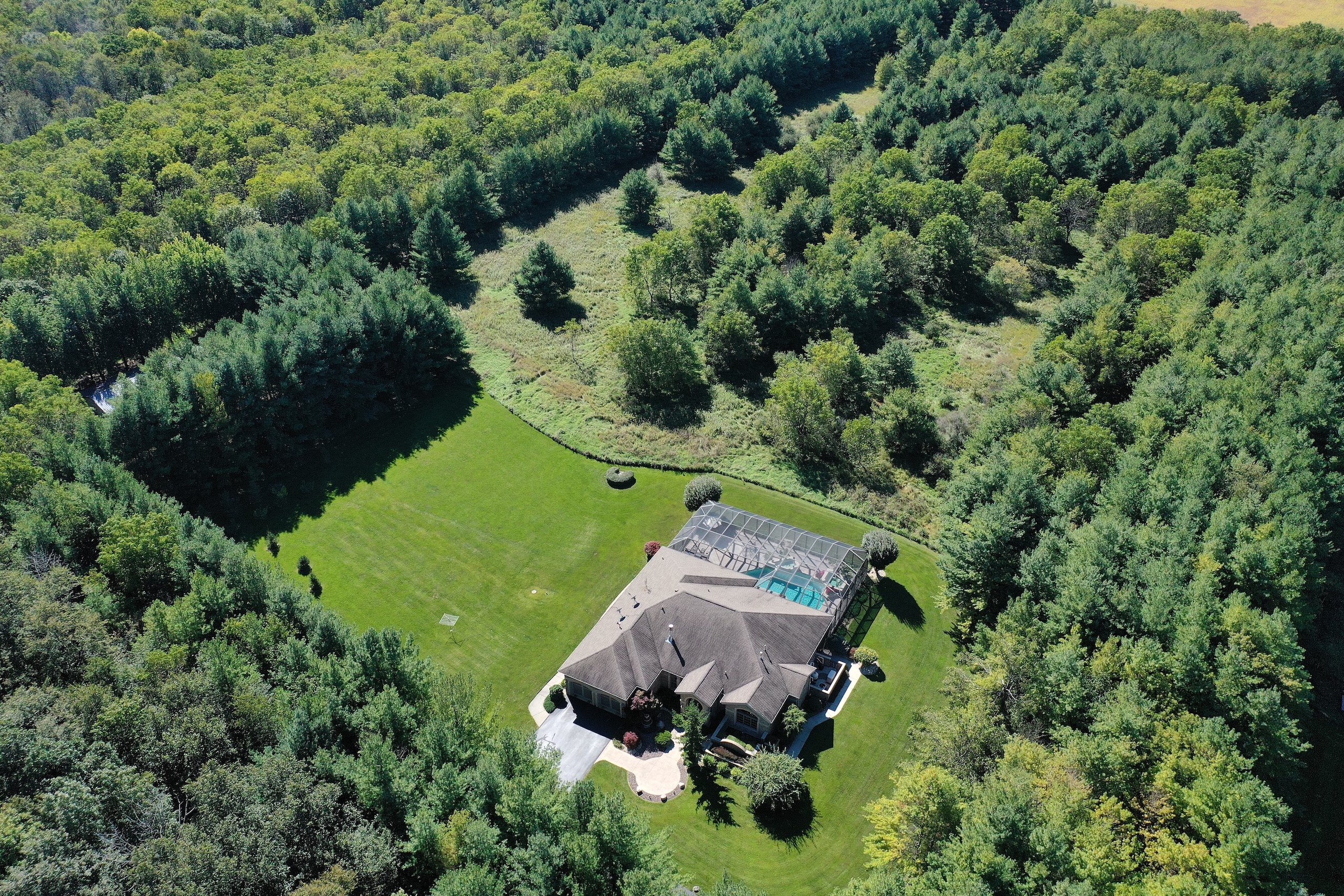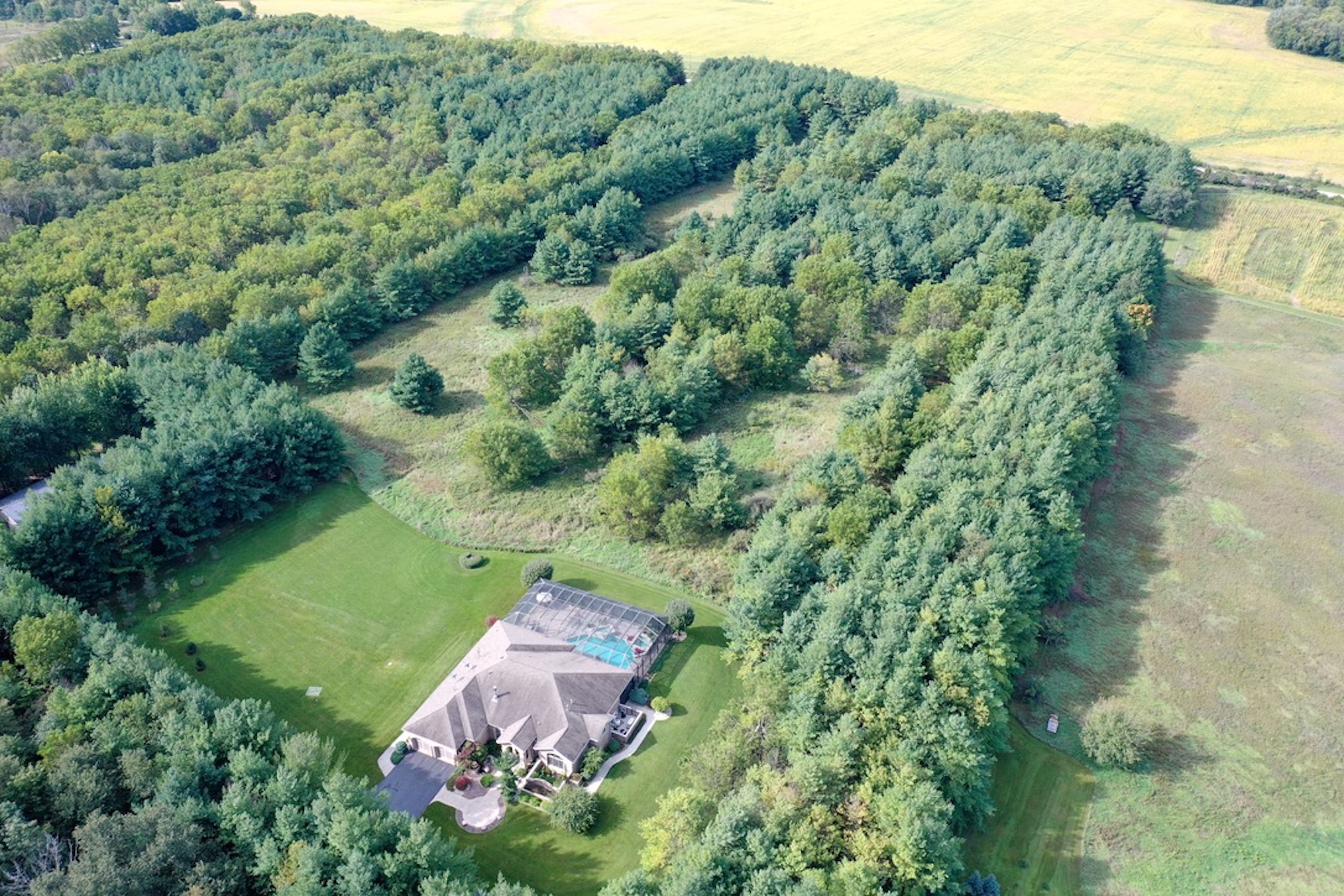 PRICE REDUCED! Located in the rolling hills of northwest Illinois, you have a one-of-a-kind property. Situated on 20+ fenced acres, this property gives you a little bit of everything. As you come off Laube road, you hit the electrically operated gated entrance and a long winding blacktop driveway. As you come up the drive, you have native grasses and flowers for wildlife. Continuing up the drive, you approach two pole buildings. The first pole building 30ft. X 60ft. with two overhead doors, one being 14' for RV, larger trucks, and equipment. The second building (Morton) is 42 ft. X 60 ft. with two overhead doors with electric operators, features a separate well and a 22x22 heated shop area with a wood stove. 10ft X 12ft Greenhouse with adjacent fenced garden. Past the tall pines tucked back in complete privacy, you are revealed the show-stopper house. Beautifully landscaped, the curb appeal is second to none. Architecturally designed, professionally decorated luxury ranch home featuring the highest quality construction with all brick exterior. Marvin windows and doors. All windows and doors are aluminum clad, and all sills are of 2 1/4 thick limestone for long-term, zero maintenance construction. As you enter the home, you are greeted by an oversized foyer with an amazing sitting room featuring built-in storage and wood burning fireplace. The open floor plan from the sitting room into the family room transitions nicely into the eat-in kitchen. Wolf, Sub-Zero equipped kitchen with double ovens and five burner cooktop. Broan hood and exhaust system. Side-by-side SubZero refrigerator/freezer and under-counter Sub Zero ice maker. Also, Fisher Paykel dishwasher and garbage disposal. Customized Maple cabinets with designer trim. Granite and marble countertops throughout the home. Spacious pantry just next to the kitchen.The interior features "Ancient" limestone and large floor tiles in the main sections of the house. 12ft. ceilings and "Old-world" wall finishes by skilled artisans. On one wing of the home, you have a large Master suite with two huge walk-in closets. The bath features two sinks, a walk-in shower and a soaking tub with marble floors and countertops. Matching marble interior window sills. The other wing of the home, you have two additional bedrooms. The 2nd oversized bedroom has its own full bathroom. The 3rd bedroom, currently used as a den, has access to a full bathroom that it shares with the outdoor entertaining space. First-floor laundry off the kitchen area with Asco washer and dryer plus ample counter and cabinet space. Off the rear of the kitchen and family room area is a custom pool with waterfalls, a fountain and hot tub by Neuman Pools of Beaver Dam, Wisconsin, a famous provider of most large water parks worldwide. Exclusively serviced and maintained by Neuman Polls technicians. 3400 square foot screen structure Designed by Florida architects and built to withstand hurricane force winds. Provides wonderful additional outdoor living space in the warmer months. An outdoor kitchen too! No worries about tracking water through the house, as there is access to a full bathroom. Lots of new mechanicals. Forced-air heating and A/C zoned for easily controlled comfort. Furnace and A/C unit 2 years old. 75 Gallon water heater, water softener and a pool heater are all new within the last two years. Also, a Reverse Osmosis water purification system. Whole-house Generac Generator with a separate dedicated 1,000-gallon propane tank for peace of mind in extended power outages. All roof water is diverted away from the foundation via an underground PVC drain system. Additional features include electrically operated shades in main rooms, an ADT security system, an epoxy floor in the garage, a sprinkler system and much more.