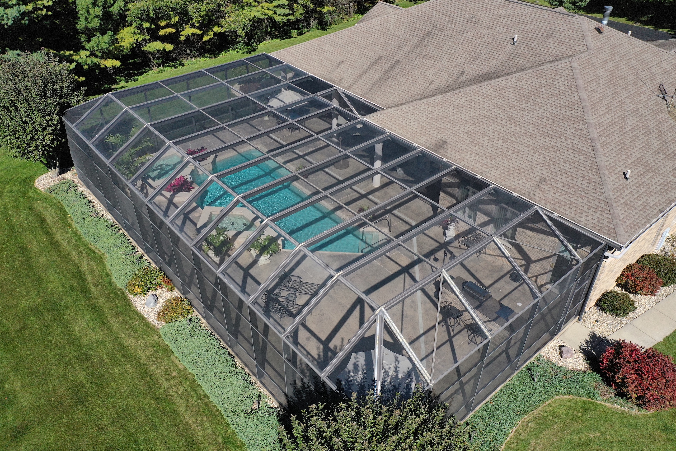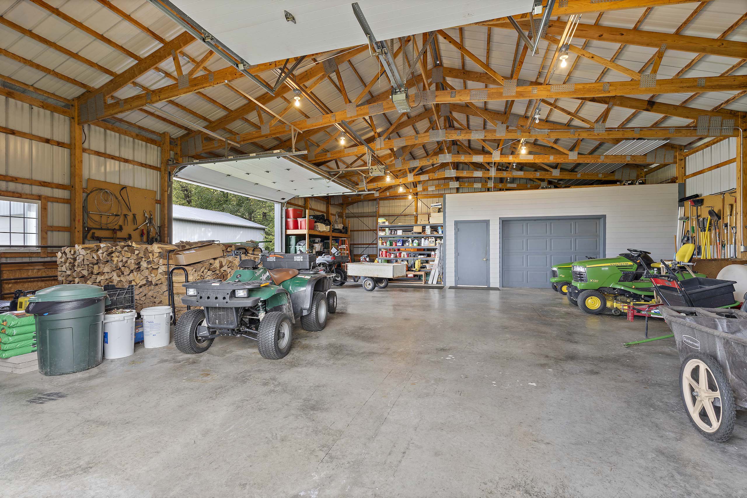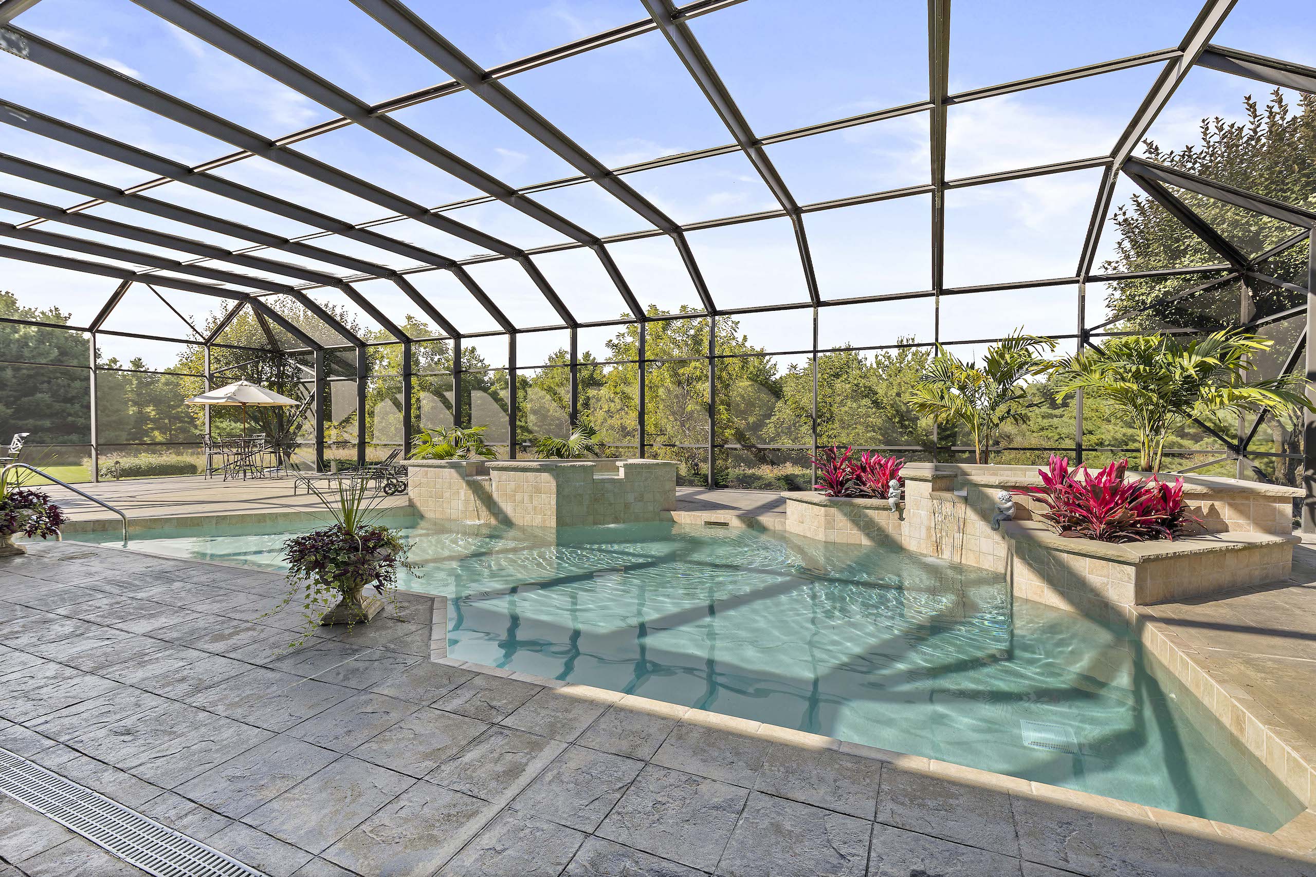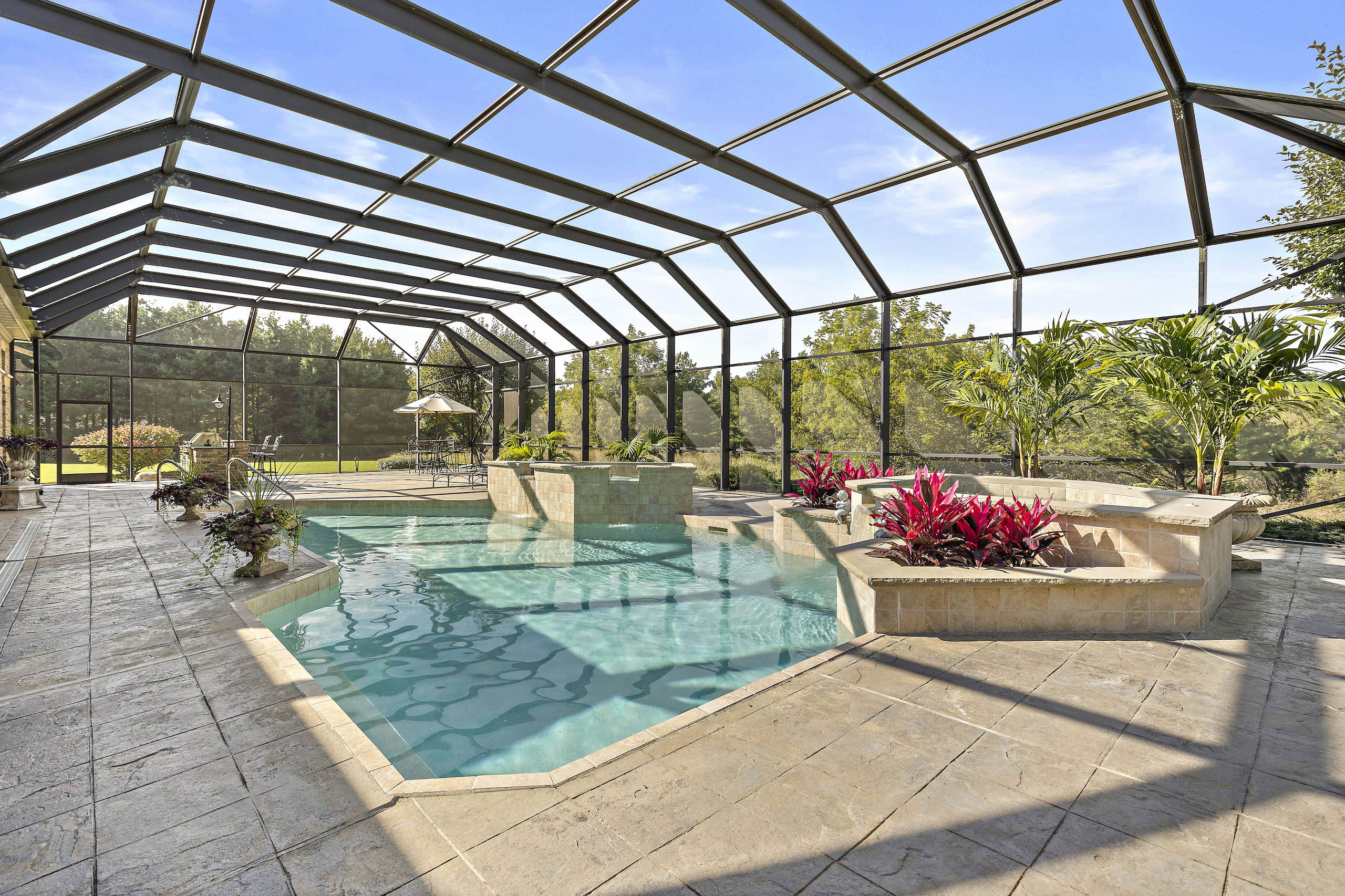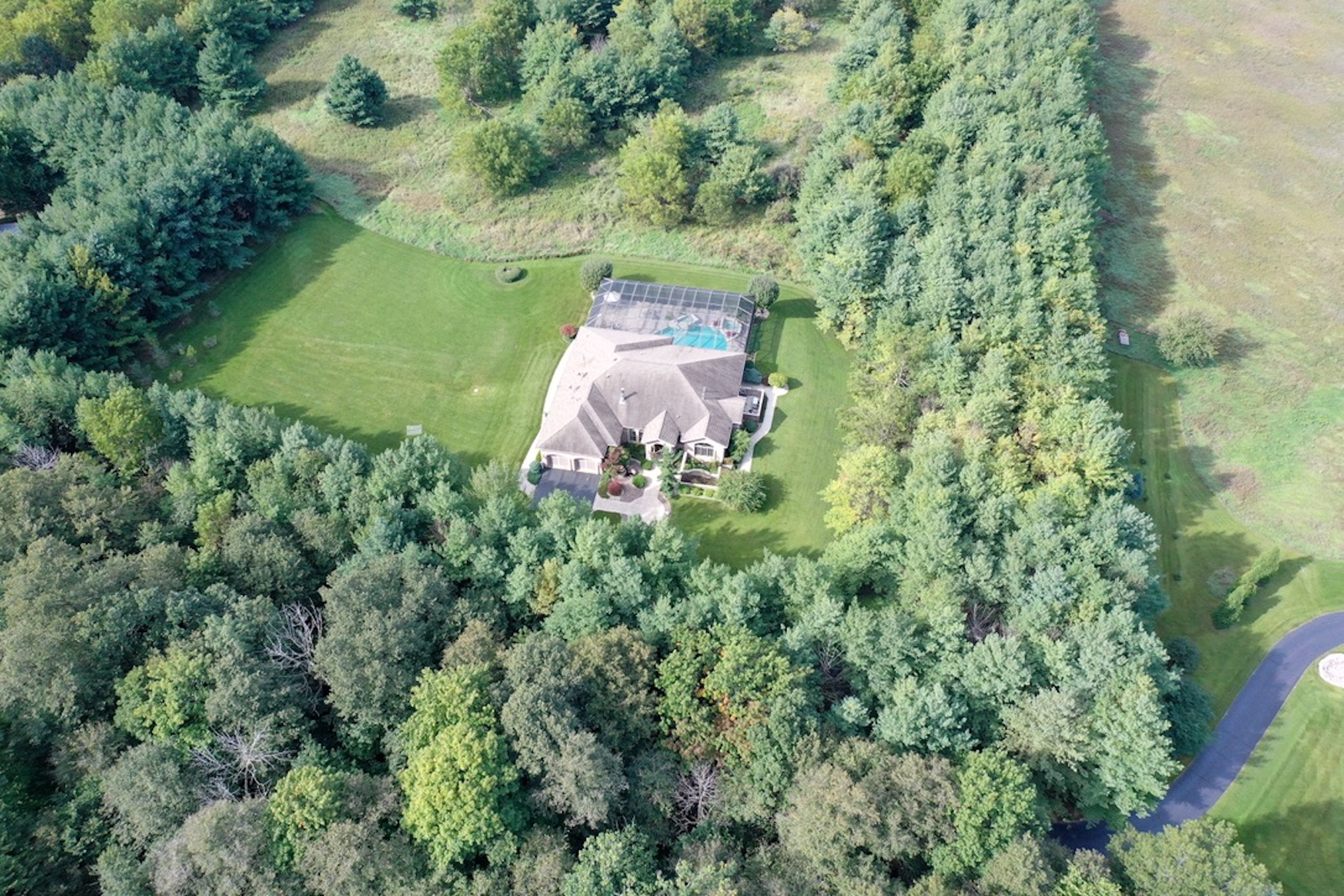 PRICE REDUCED! Located in the rolling hills of northwest Illinois, you have a one-of-a-kind property. Situated on 20+ fenced acres, this property gives you a little bit of everything. As you come off Laube road, you hit the electrically operated gated entrance and a long winding blacktop driveway. As you come up the drive, you have native grasses and flowers for wildlife. Continuing up the drive, you approach two pole buildings. The first pole building 30ft. X 60ft. with two overhead doors, one being 14' for RV, larger trucks, and equipment. The second building (Morton) is 42 ft. X 60 ft. with two overhead doors with electric operators, features a separate well and a 22x22 heated shop area with a wood stove. 10ft X 12ft Greenhouse with adjacent fenced garden. Past the tall pines tucked back in complete privacy, you are revealed the show-stopper house. Beautifully landscaped, the curb appeal is second to none. Architecturally designed, professionally decorated luxury ranch home featuring the highest quality construction with all brick exterior. Marvin windows and doors. All windows and doors are aluminum clad, and all sills are of 2 1/4 thick limestone for long-term, zero maintenance construction. As you enter the home, you are greeted by an oversized foyer with an amazing sitting room featuring built-in storage and wood burning fireplace. The open floor plan from the sitting room into the family room transitions nicely into the eat-in kitchen. Wolf, Sub-Zero equipped kitchen with double ovens and five burner cooktop. Broan hood and exhaust system. Side-by-side SubZero refrigerator/freezer and under-counter Sub Zero ice maker. Also, Fisher Paykel dishwasher and garbage disposal. Customized Maple cabinets with designer trim. Granite and marble countertops throughout the home. Spacious pantry just next to the kitchen.The interior features "Ancient" limestone and large floor tiles in the main sections of the house. 12ft. ceilings and "Old-world" wall finishes by skilled artisans. On one wing of the home, you have a large Master suite with two huge walk-in closets. The bath features two sinks, a walk-in shower and a soaking tub with marble floors and countertops. Matching marble interior window sills. The other wing of the home, you have two additional bedrooms. The 2nd oversized bedroom has its own full bathroom. The 3rd bedroom, currently used as a den, has access to a full bathroom that it shares with the outdoor entertaining space. First-floor laundry off the kitchen area with Asco washer and dryer plus ample counter and cabinet space. Off the rear of the kitchen and family room area is a custom pool with waterfalls, a fountain and hot tub by Neuman Pools of Beaver Dam, Wisconsin, a famous provider of most large water parks worldwide. Exclusively serviced and maintained by Neuman Polls technicians. 3400 square foot screen structure Designed by Florida architects and built to withstand hurricane force winds. Provides wonderful additional outdoor living space in the warmer months. An outdoor kitchen too! No worries about tracking water through the house, as there is access to a full bathroom. Lots of new mechanicals. Forced-air heating and A/C zoned for easily controlled comfort. Furnace and A/C unit 2 years old. 75 Gallon water heater, water softener and a pool heater are all new within the last two years. Also, a Reverse Osmosis water purification system. Whole-house Generac Generator with a separate dedicated 1,000-gallon propane tank for peace of mind in extended power outages. All roof water is diverted away from the foundation via an underground PVC drain system. Additional features include electrically operated shades in main rooms, an ADT security system, an epoxy floor in the garage, a sprinkler system and much more.