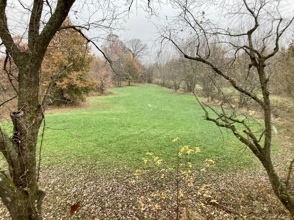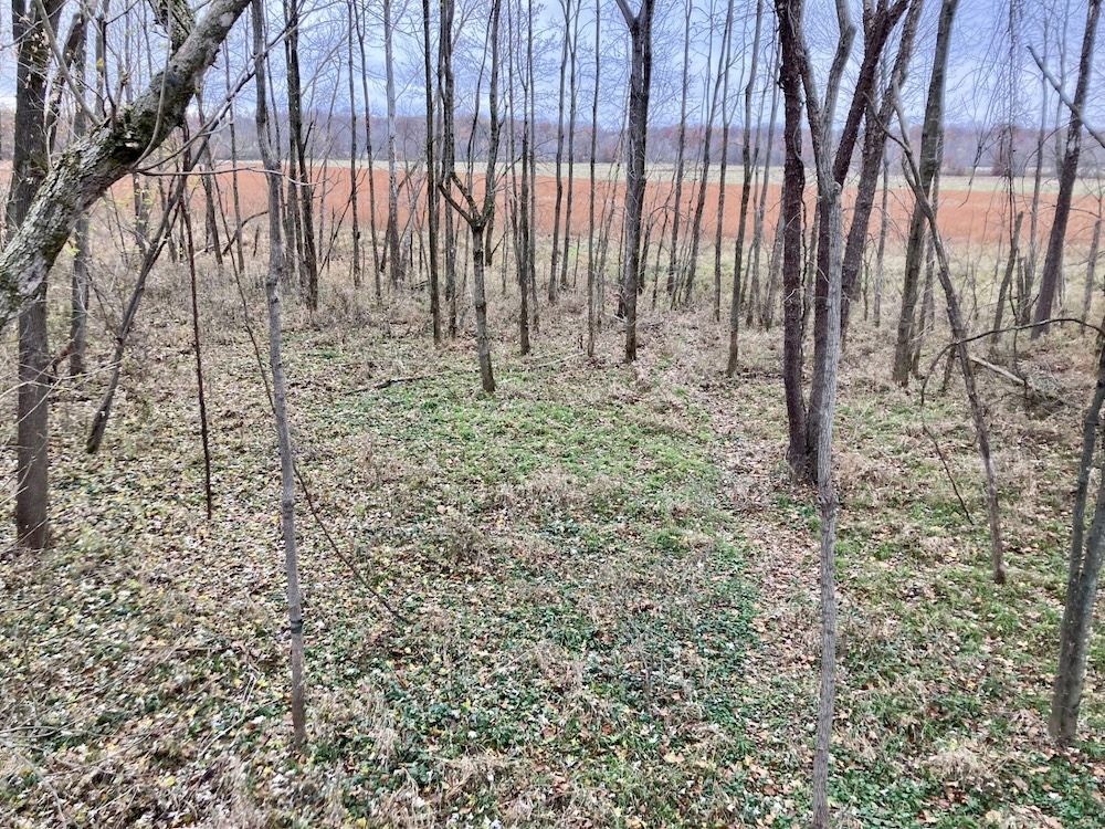 The field is over 10 acres and provides multiple options to further enhance the property for wildlife by planting row crops or leaving the grass cover and adding more interspersed food plots or orchard pockets providing additional food and cover. The field has historically provided good turkey hunting and bobwhite quail can be heard taking refuge in the standing cover! A stand is also located in a textbook funnel where the creek and field pinch together. This sets-up perfectly for an all-day sit during a fall cold front, with every buck cruising through this area passing within range of the stand and the mock scrapes under it!