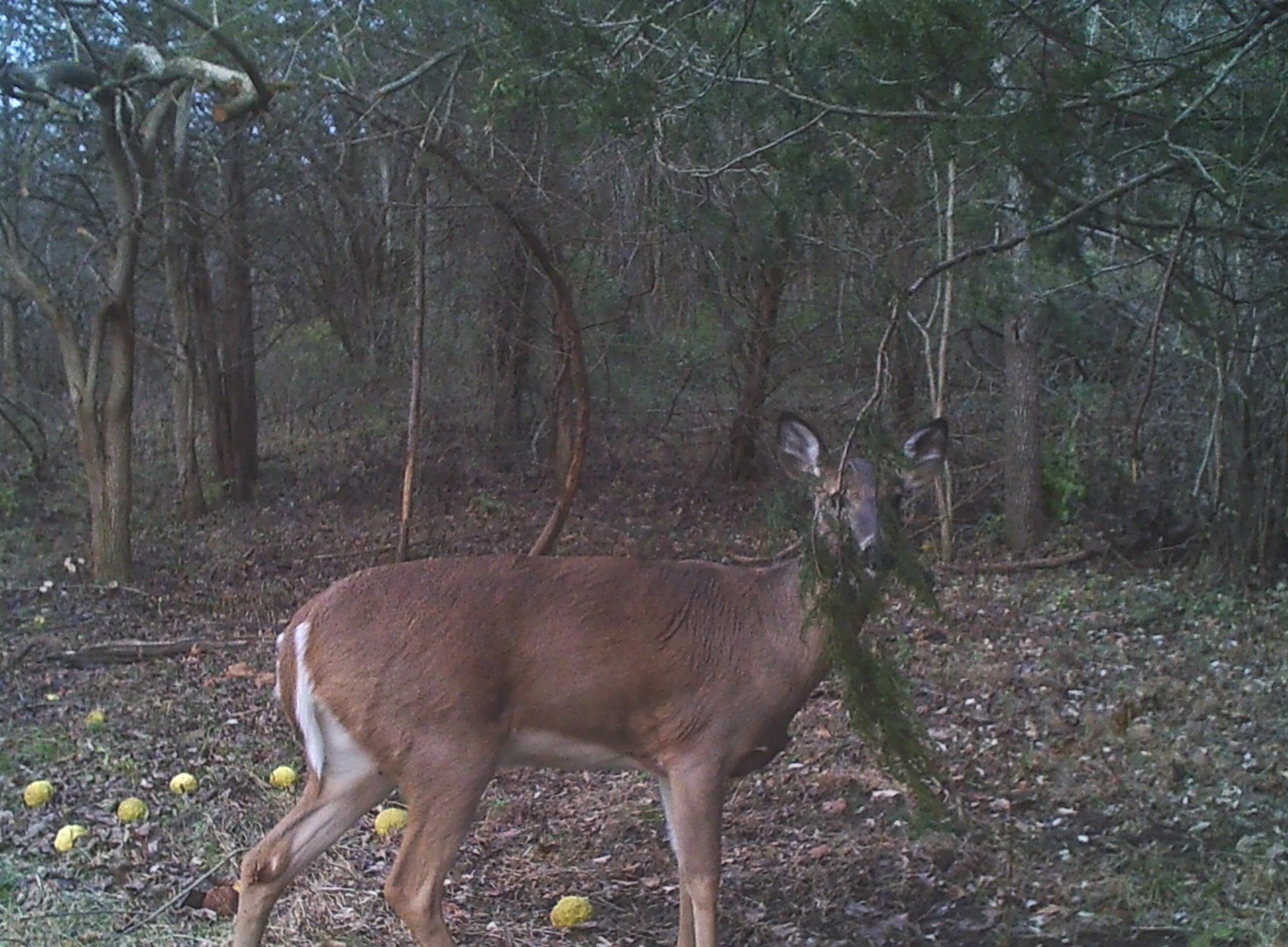 This county is big buck country and this property is no exception! This land is predominately wooded with a clearing upfront that is an ideal location for a homesite, cabin or a place to set up basecamp. Directly east of the property is destination food sources and Big Racoon Creek. The pattern of deer movement is easy to see with heavy trails going to and from the fields to the east. A couple miles to the west are the Wabash River bottoms with additional food. This property is an ideal funnel for deer movement between two major waterways in a neighborhood surrounded by agricultural fields. A quick view of the aerial shows this area is a corridor for natural deer movement. The property offers a diversity of habitat with conifers in the NE, hardwoods on the ridgetops and ravines with interspersed pockets of early successional growth providing bedding and food for wildlife. The diversity of cover and the well-established trail system provides a good amount of transition and edge cover where the deer like to travel. The topography is varying and further aids in funneling deer movement and the ridgetops provide a place for turkey to strut in the spring. These woods are heavily used during the rut as evidenced by the many scrapes and rubs scattered throughout and the trail camera photos, all from the 2021 season, confirm this property is the stomping grounds for numerous bucks. The property is set up with three well-placed tree stands and five trail cameras being transferred to the new owner. This county is one of the top counties in Indiana for producing Boone and Crockett caliber deer and is well known for its beautiful fall foliage and covered bridges.