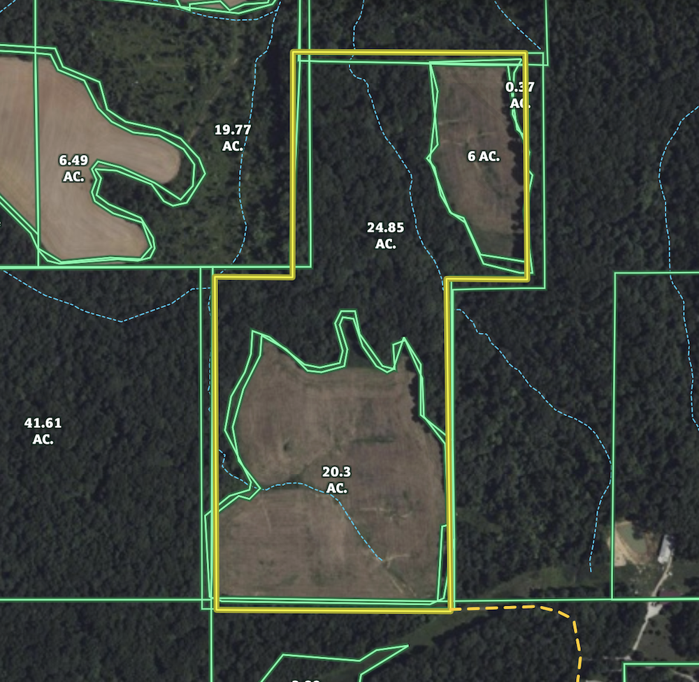 Located in western Pike County, Indiana, just south of Union and north of Wheeling near the Pike/Gibson County line, this 50± acre tract offers a balanced combination of productive farmland and mature hardwood timber. The property lies off County Road 825 West and consists of approximately 26.3± FSA tillable acres and 24± acres of wooded ground.
